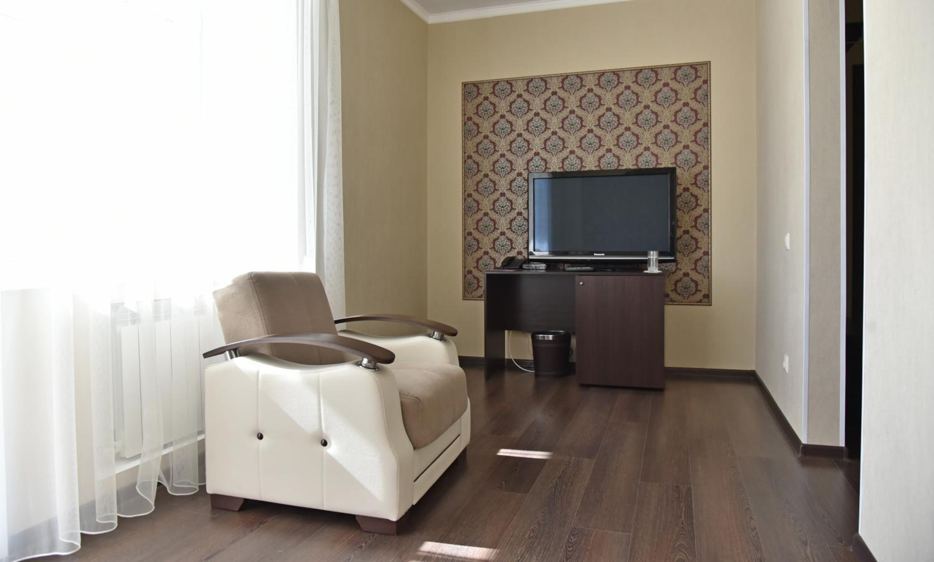 Очень приветливый и отзывчивый персонал! Расположение отличное - все в шаговой доступности. Номер Люкс – состоит из отдельной спальни, гостиной, ванной комнаты и есть большой балкон. В номере чисто, кровати удобные, постельное белье и полотенца хорошие. Есть ТВ, мини-холодильник с напитками, халаты, тапочки, наборы для душа, чайник, вода бутилированная, чай, кофе. Завтрак не плохой, но нет выбора, что приготовил повар сегодня, то и подают всем. Есть парковка на территории отеля, но желательно сообщить в отель заранее о необходимости места для авто. Выражаю огромное спасибо за гостеприимность персоналу на стойке "reception"!