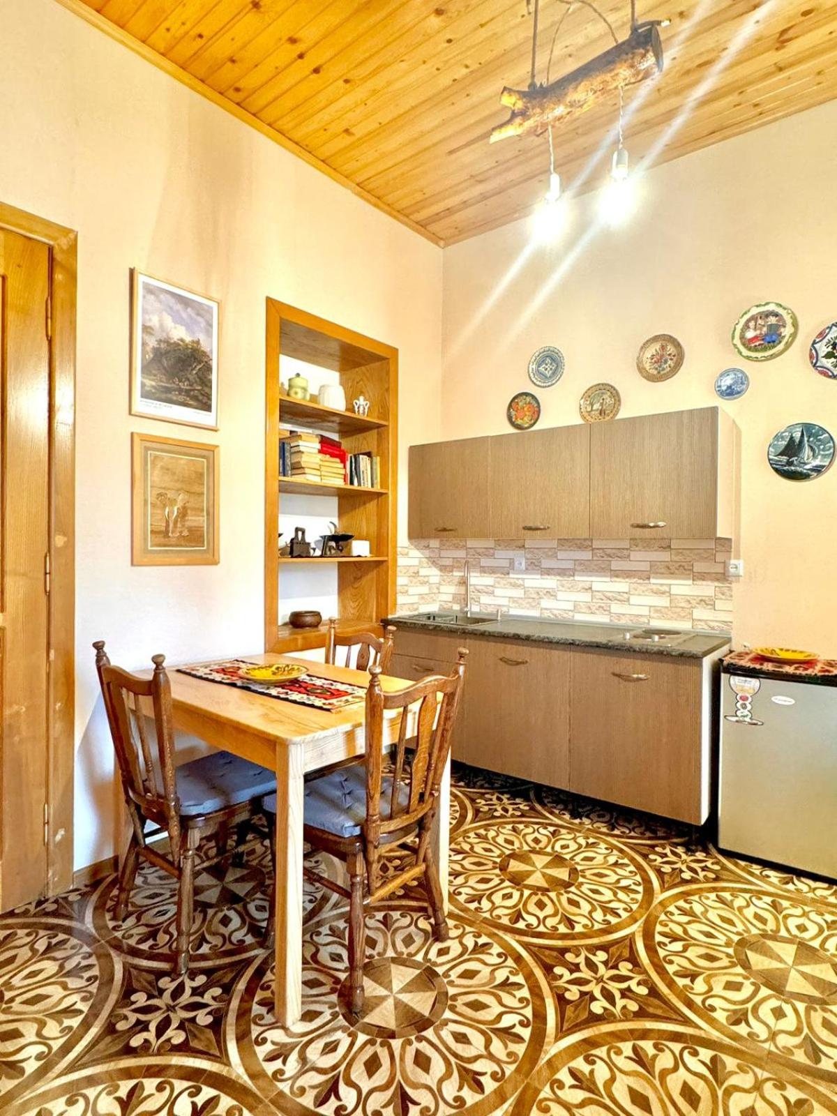 Невероятное жилье! Очень красиво, чисто, просторное. В комнатах высокие потолки. Есть холодильник, чайник, чай, кофе, все туалетные принадлежности. Есть внутренняя парковка. Очень красивая веранда со столиками. Из окна видно Джвари. Прямо напротив - Светицховели. Ночью тишина и покой, днем - самый центр Мцхеты.