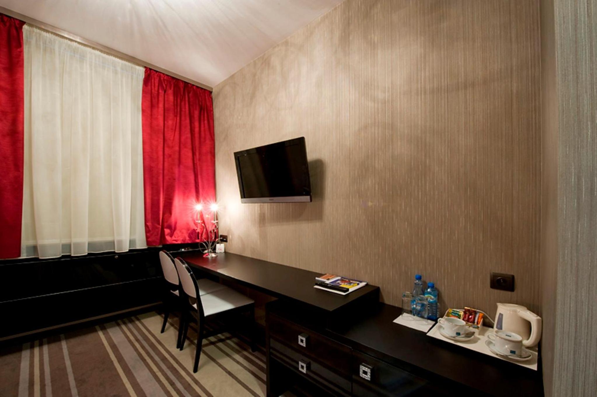 Pokój wygodny łóżko duże i dobrze się wyspałem. Telewizor umieszczony w odpowiednim miejscu. Ilość gniazdek odpowiednia i umieszczone tak by można spokojnie podłączyć laptopa lub telefon. Dostałem kartę by móc mieć możliwość włączonego prądu nawet jak wychodziłem z pokoju. W restauracji podawano bardzo dobre jedzenie w rozsądnych cenach. Obsługa super miła i sympatyczna.