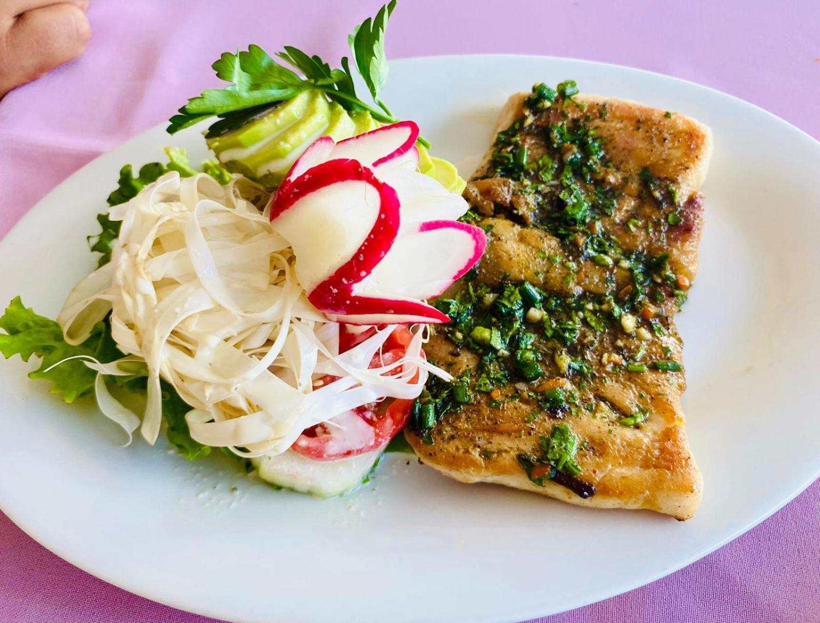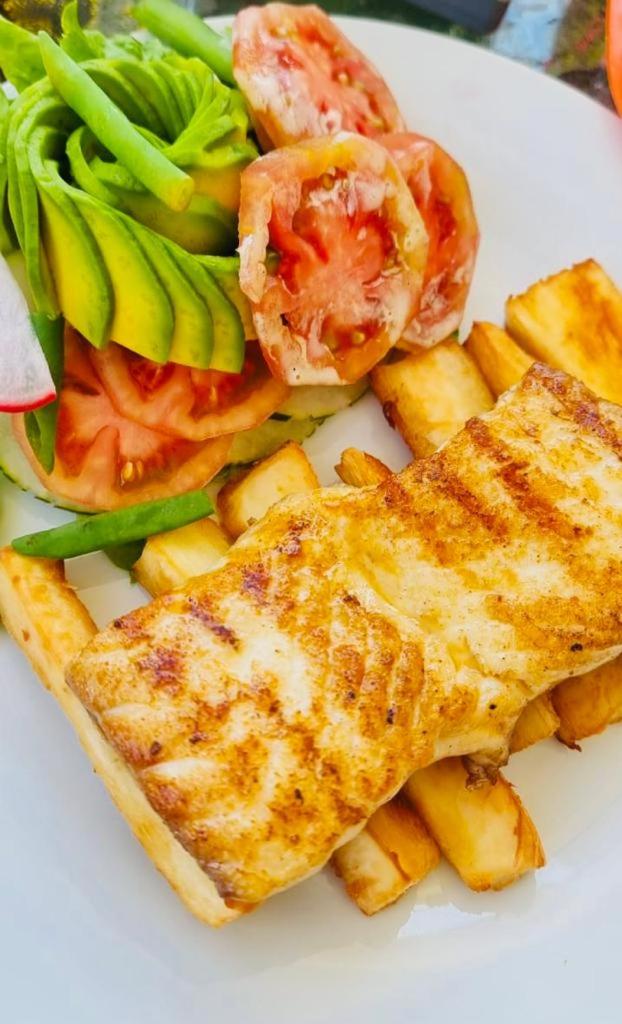 Su piscina, es bien grande. Y su desayuno rico,