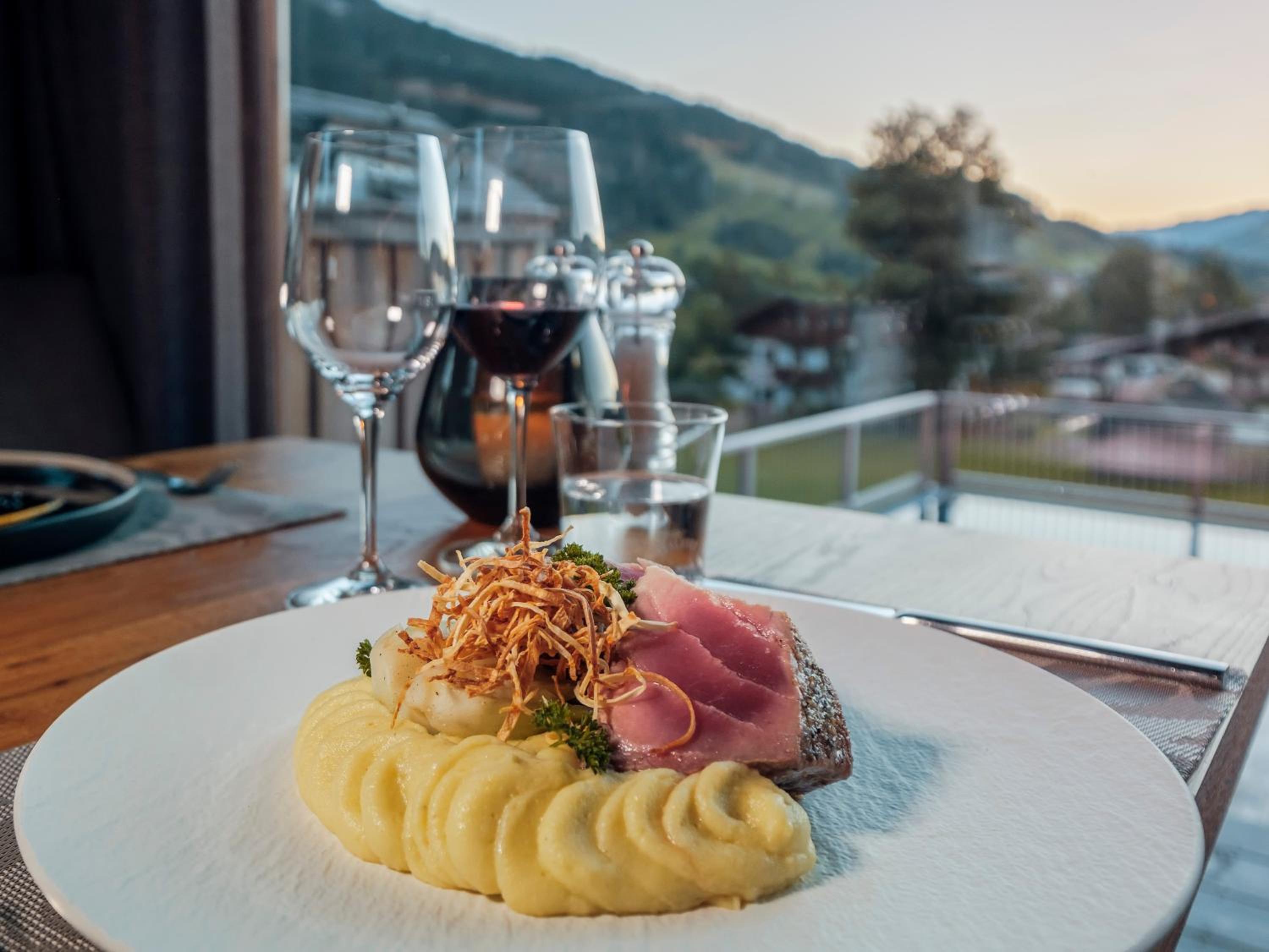 Indulge in Austrian cuisine at the on-site restaurant, with options for vegetarian, dairy-free, and vegan guests. Relax and rejuvenate at the spa and wellness center after a day of skiing or hiking.