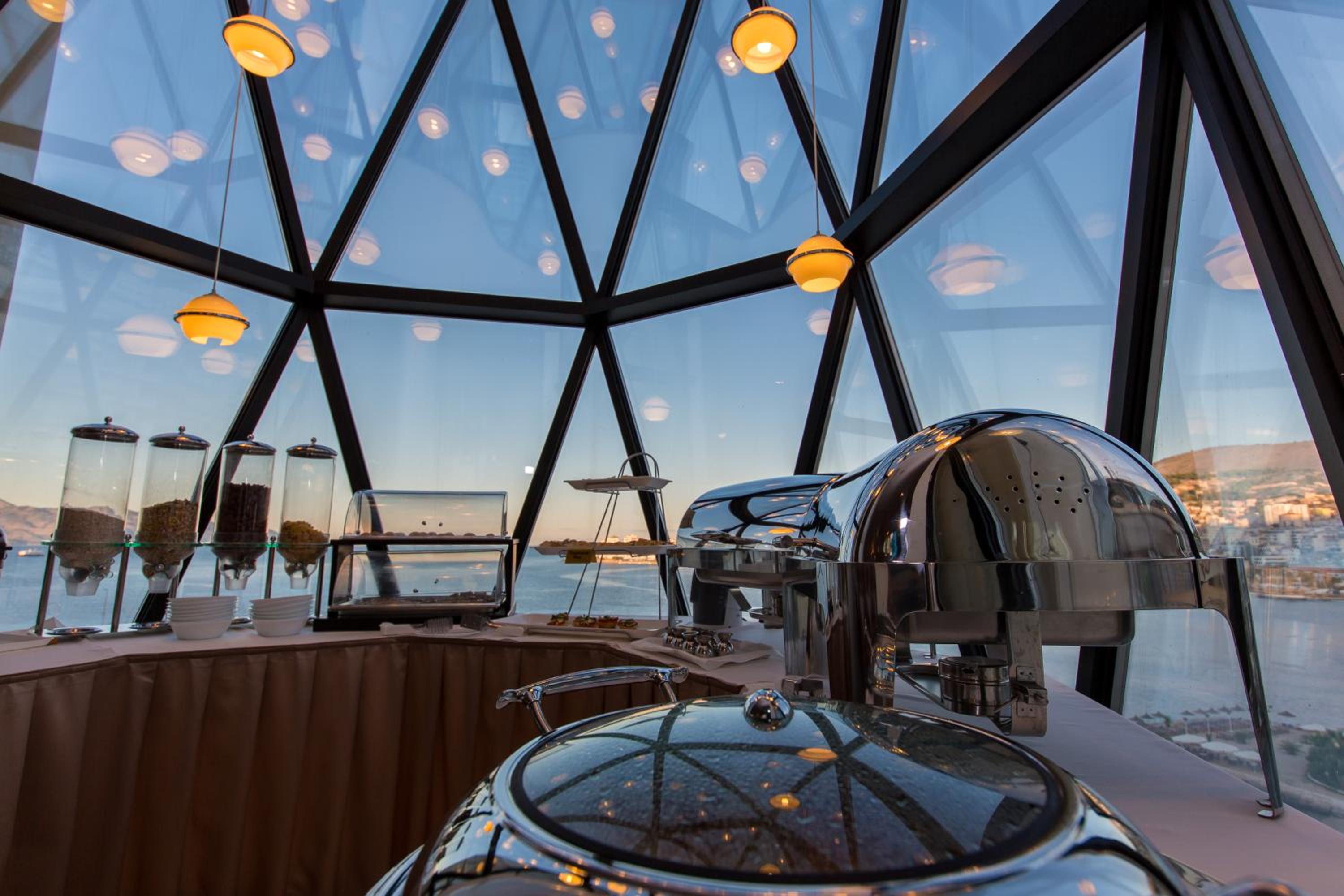 La vista della sala da pranzo, l’ascensore panoramico