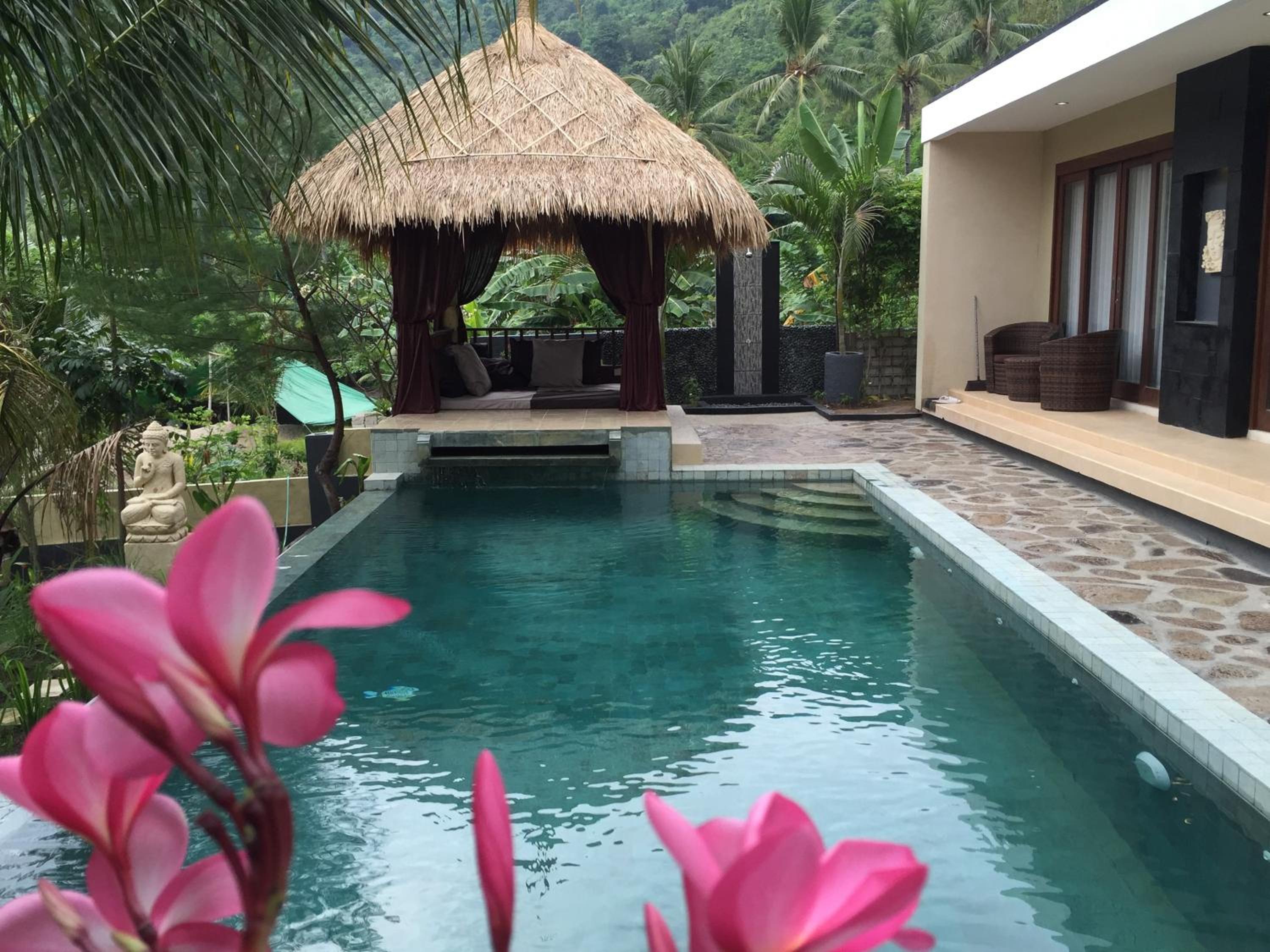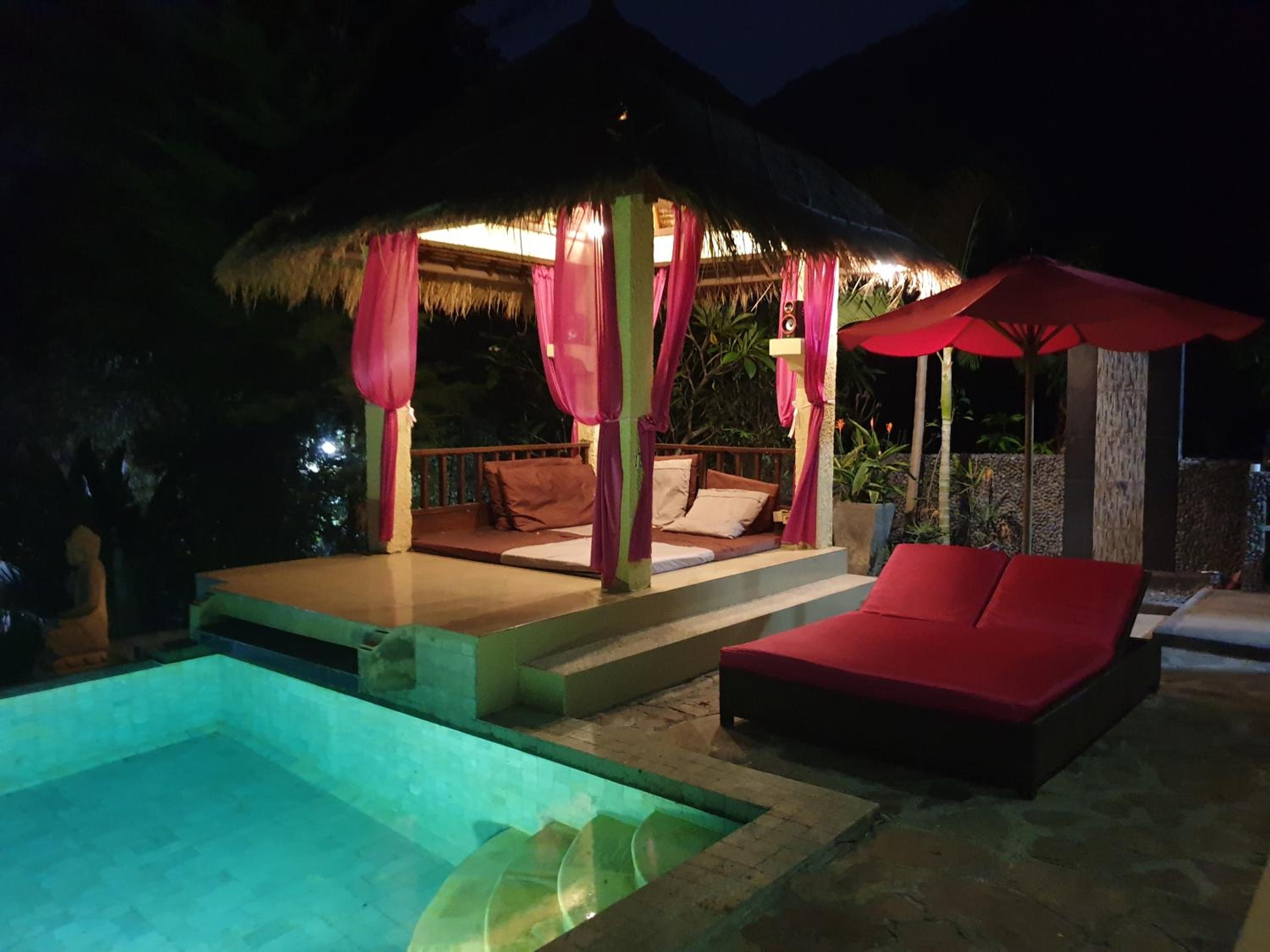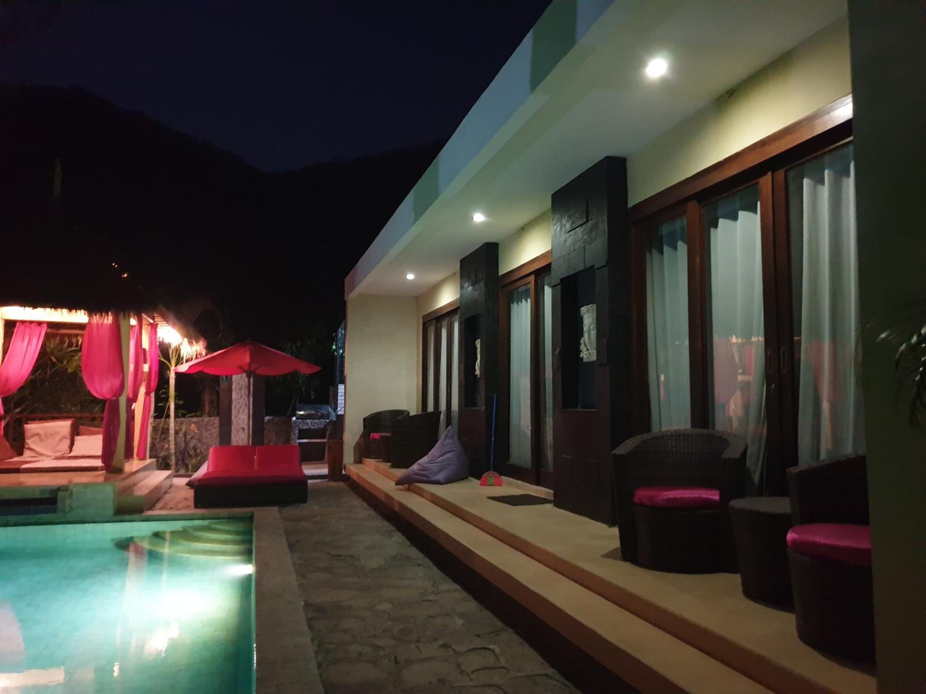 There were rarely people around when I was there. Luckily I was with a friend otherwise it was very boring. The bathroom facilities were not so good, it was leaking everywhere and no hot water. The staff didn't speak English and it was also very far to Senggigi. The scooters were sold out. No restaurants around only very very local warungs.