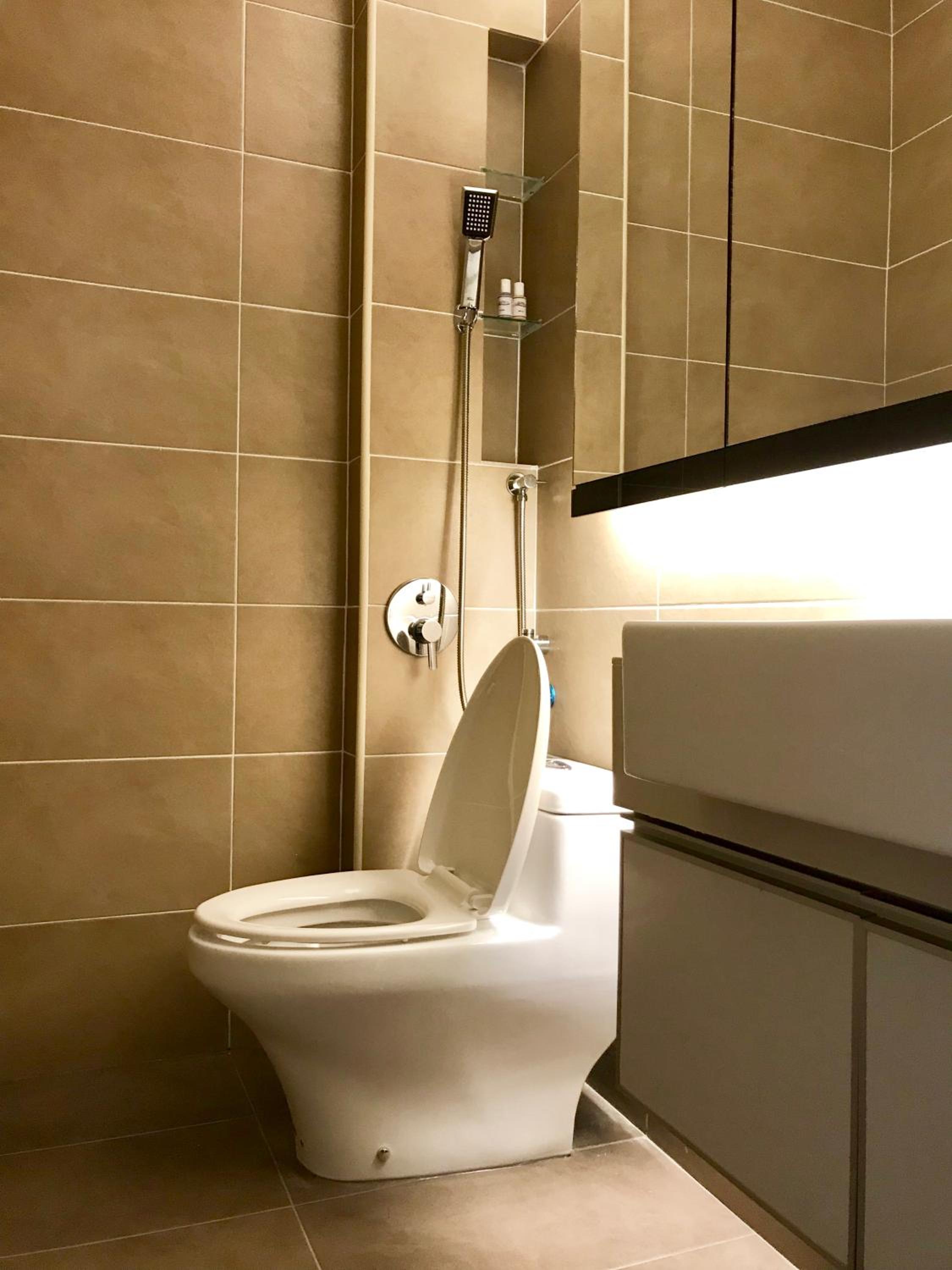 Tiada penyangkut pakaian di luar bilik air.
