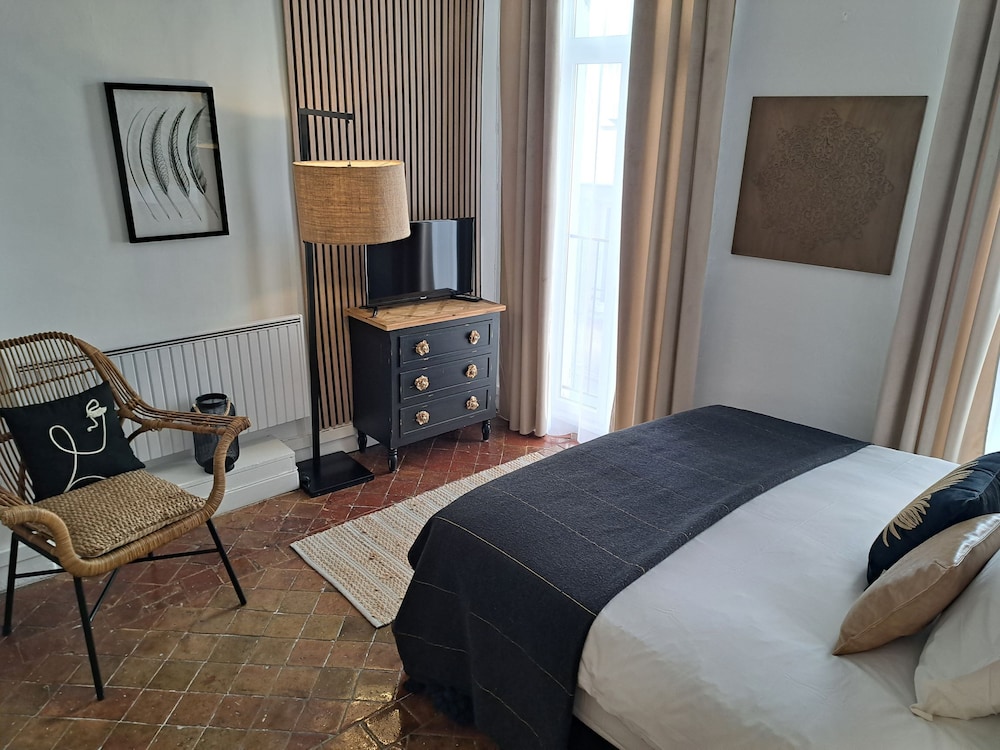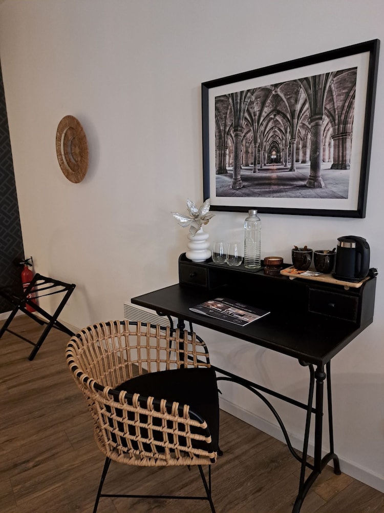 Chambre spacieuse. Très calme pour se reposer. Literie très correcte et petit déjeuner de bonne qualité. Trop de deco et de biblos, peu d’aspects pratiques (où poser les sacs par exemple). Pièce assez sombre et interrupteurs mal placés. Pas de place de parking.