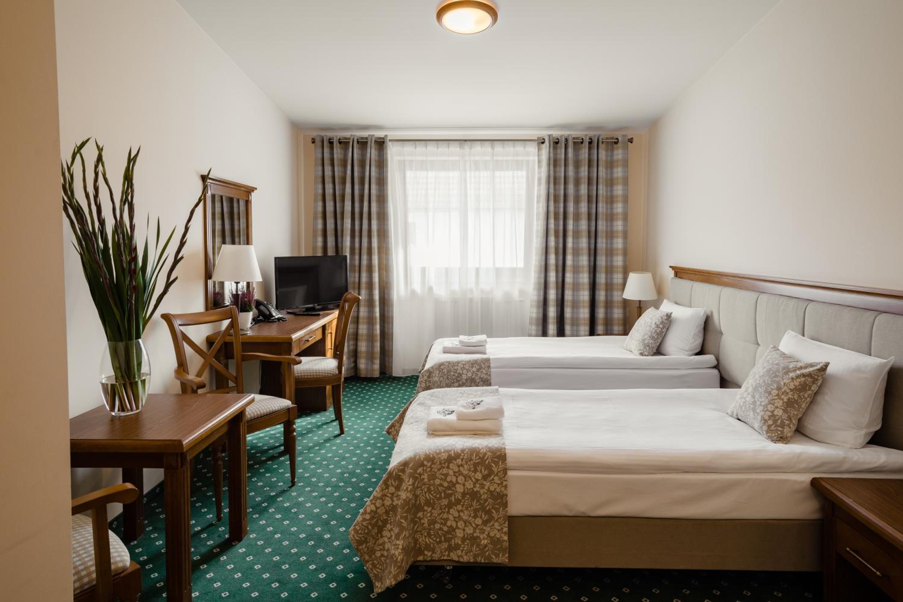 Modern Amenities: Indulge in comfortable rooms equipped with free WiFi, flat-screen TVs, and 24-hour room service.