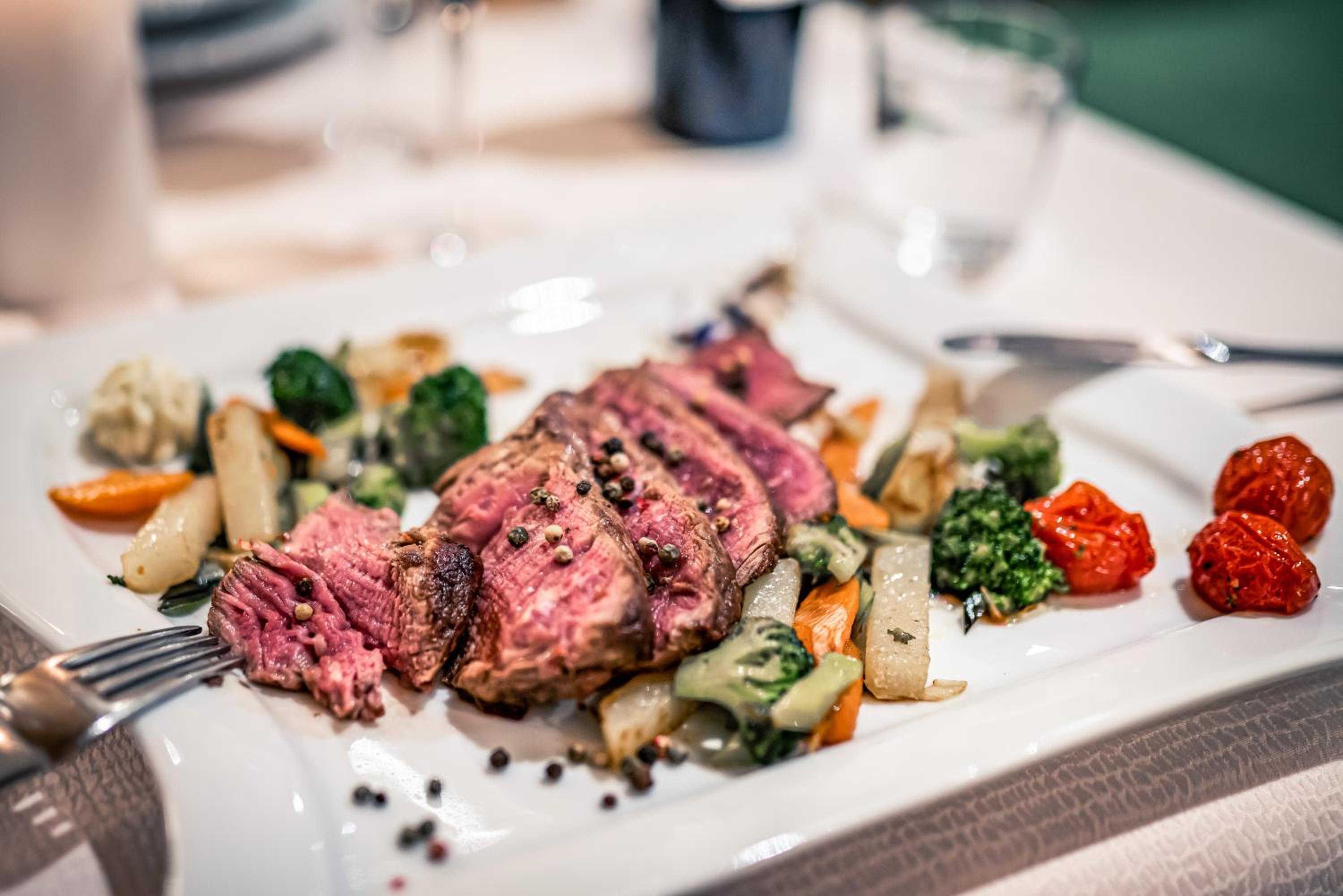Reichhaltiges abwechslungsreiches Frühstück, sehr gutes fünf Gänge Menü.