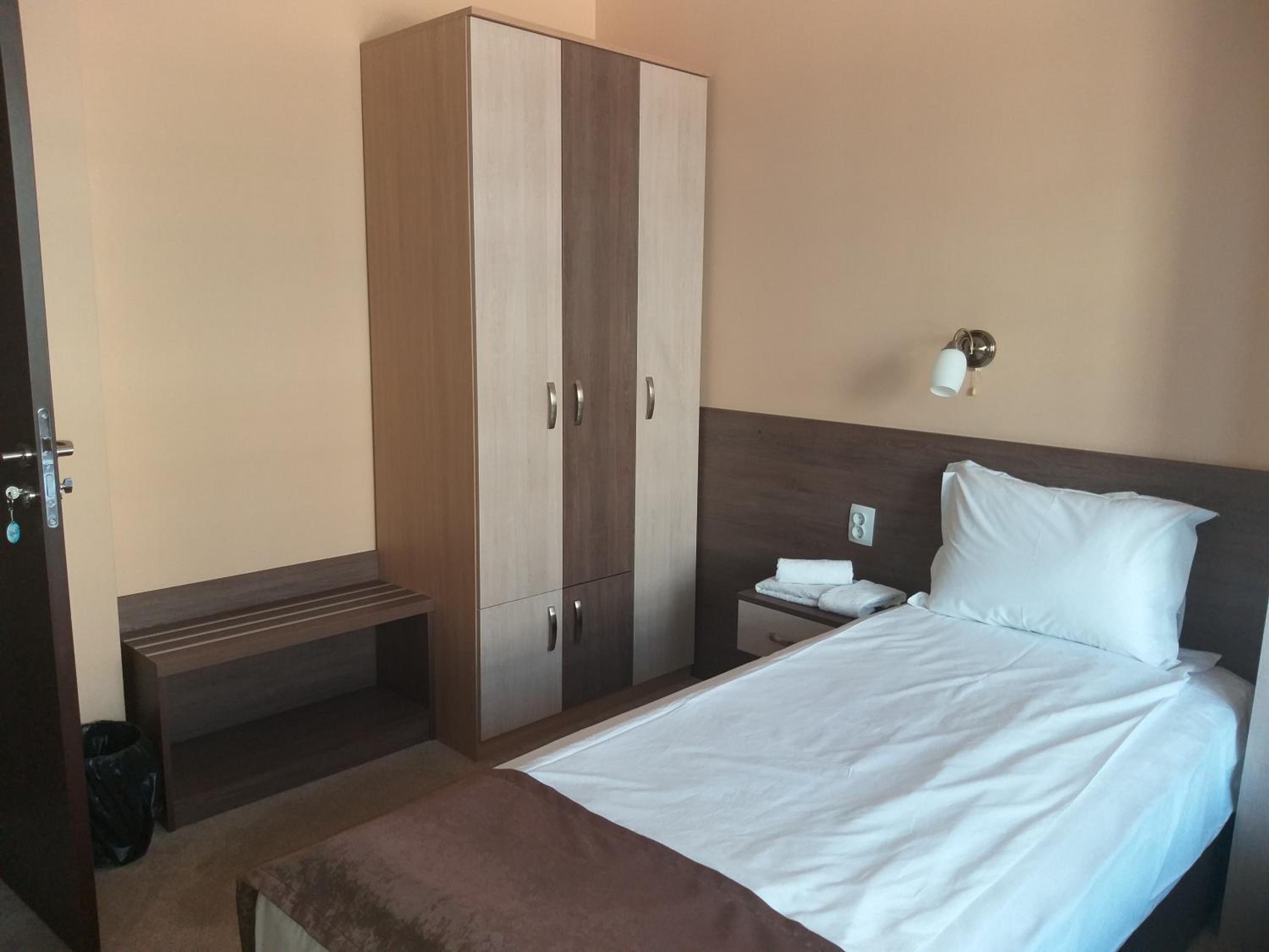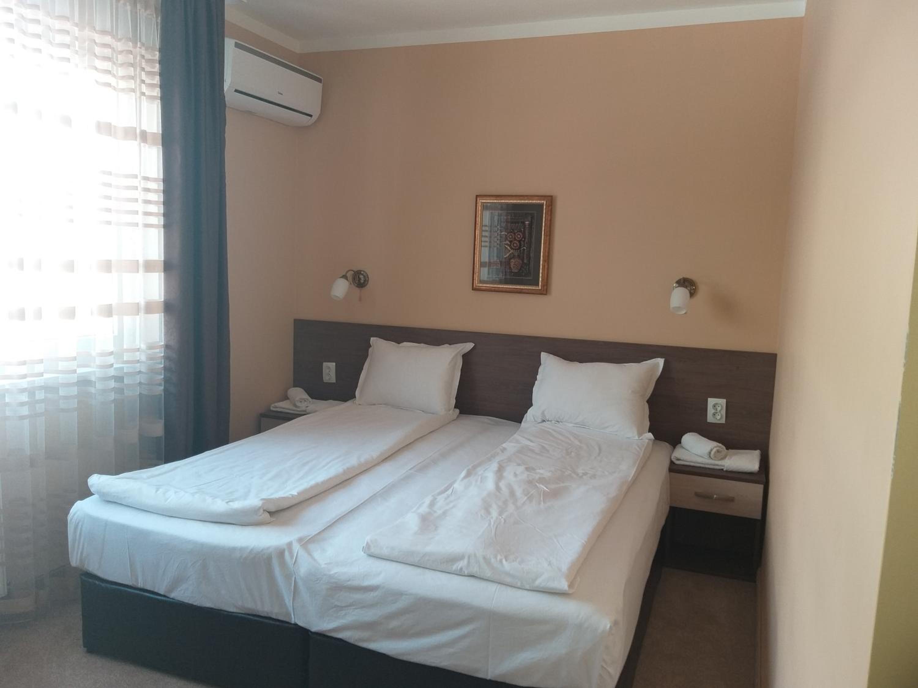 Закуска няма към резервацията, но знаех предварително. Храната е вкусна в ресторанта, но еднообразна.В стаята ми липсваше повече осветление. Климатикът не работеше добре,въпреки уверенията на рецепция,( е, не тръгна първия път, защото не бях затворила добре вратата на терасата, но през целия престой си беше на " собствен ход") но не предявих ппретенции, защото не беше горещо.Любезен персонал! Ако не беше басейнът, не бих посетила хотелът втори път.