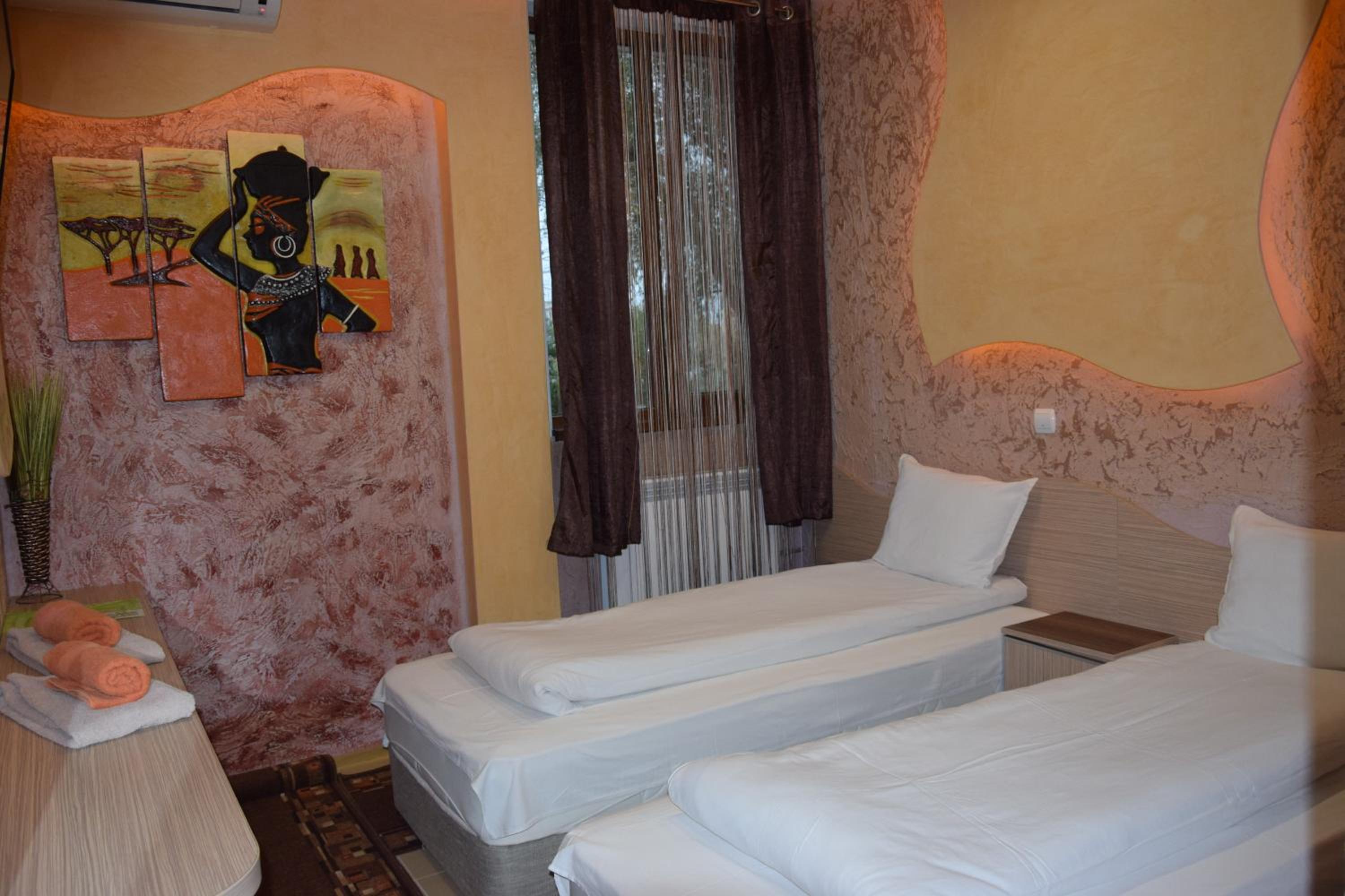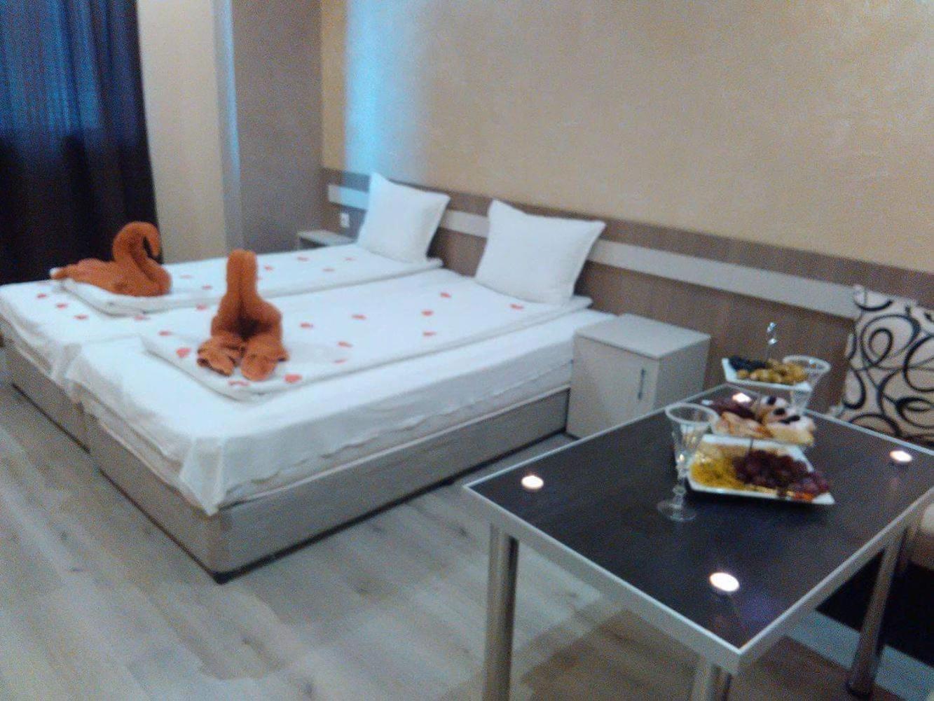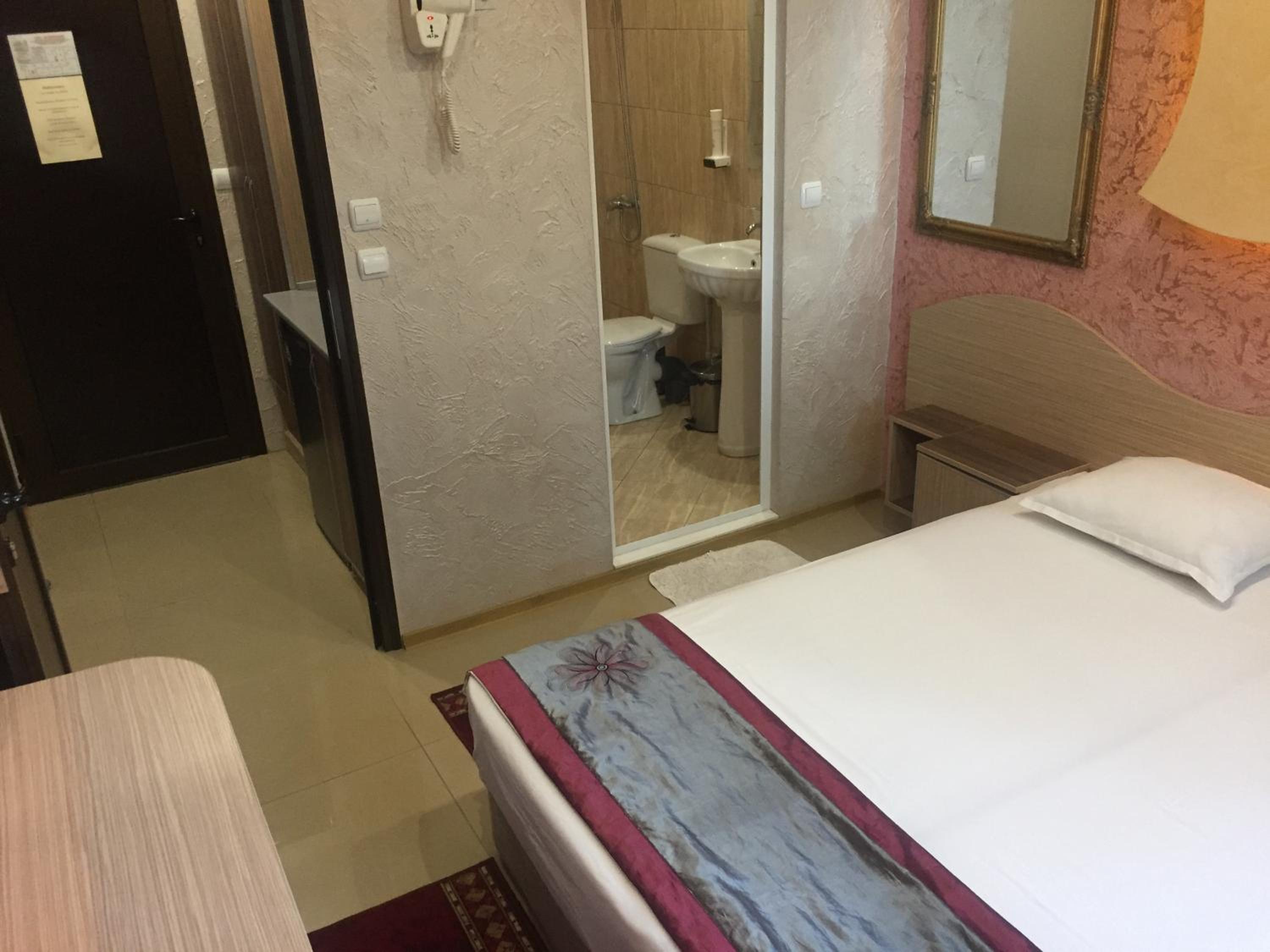 Това не може да бъде хотел....рецепция в мазето в сумрак....стаи с витринаж непосредствено до път за междублоково пространство....паркинг....на поляната....легло с размери на ковчег и половина....от снимковия материал не се придобива реална представа, че де факто т.нар.хотел е част от жилищен блок....
