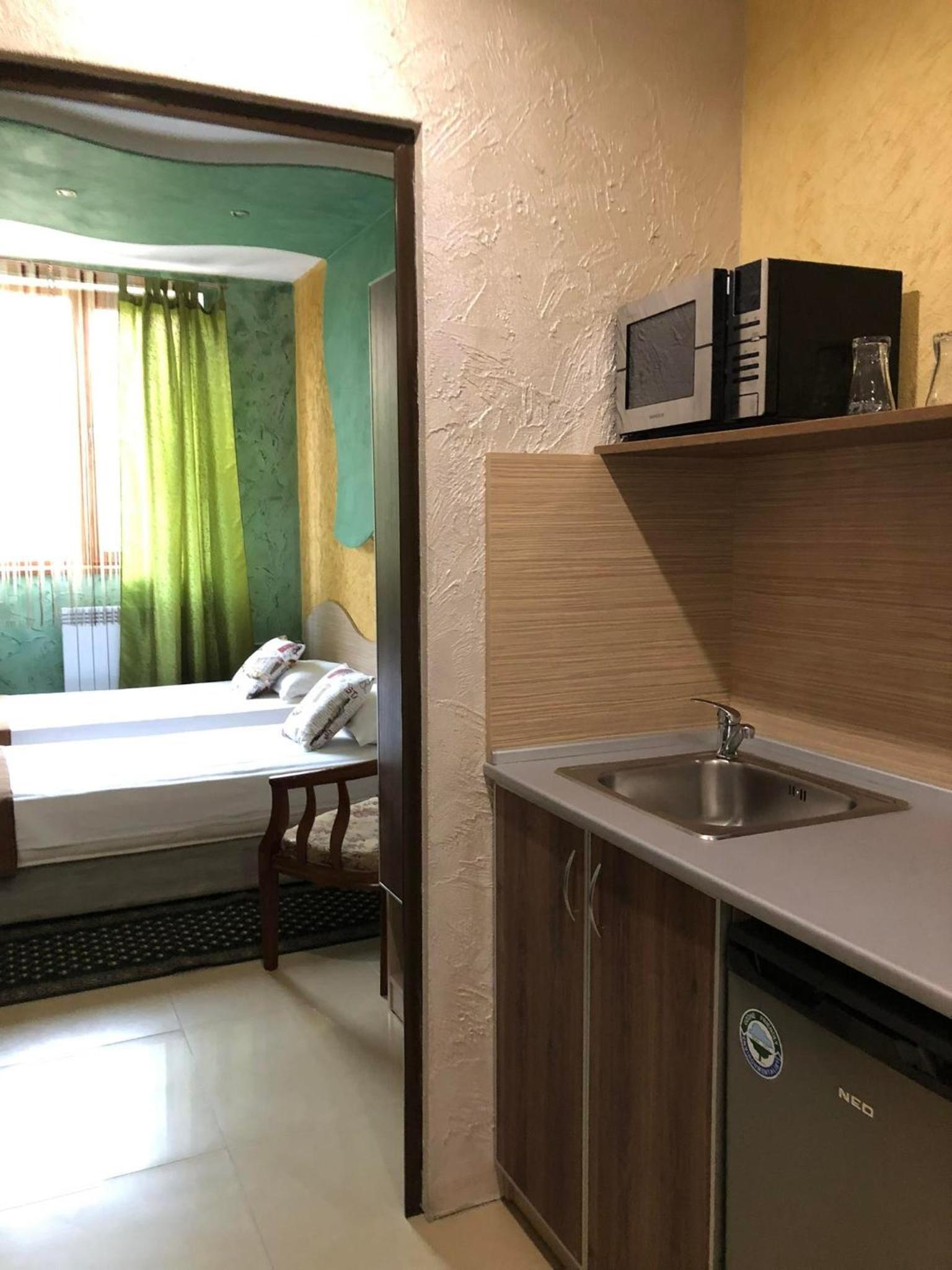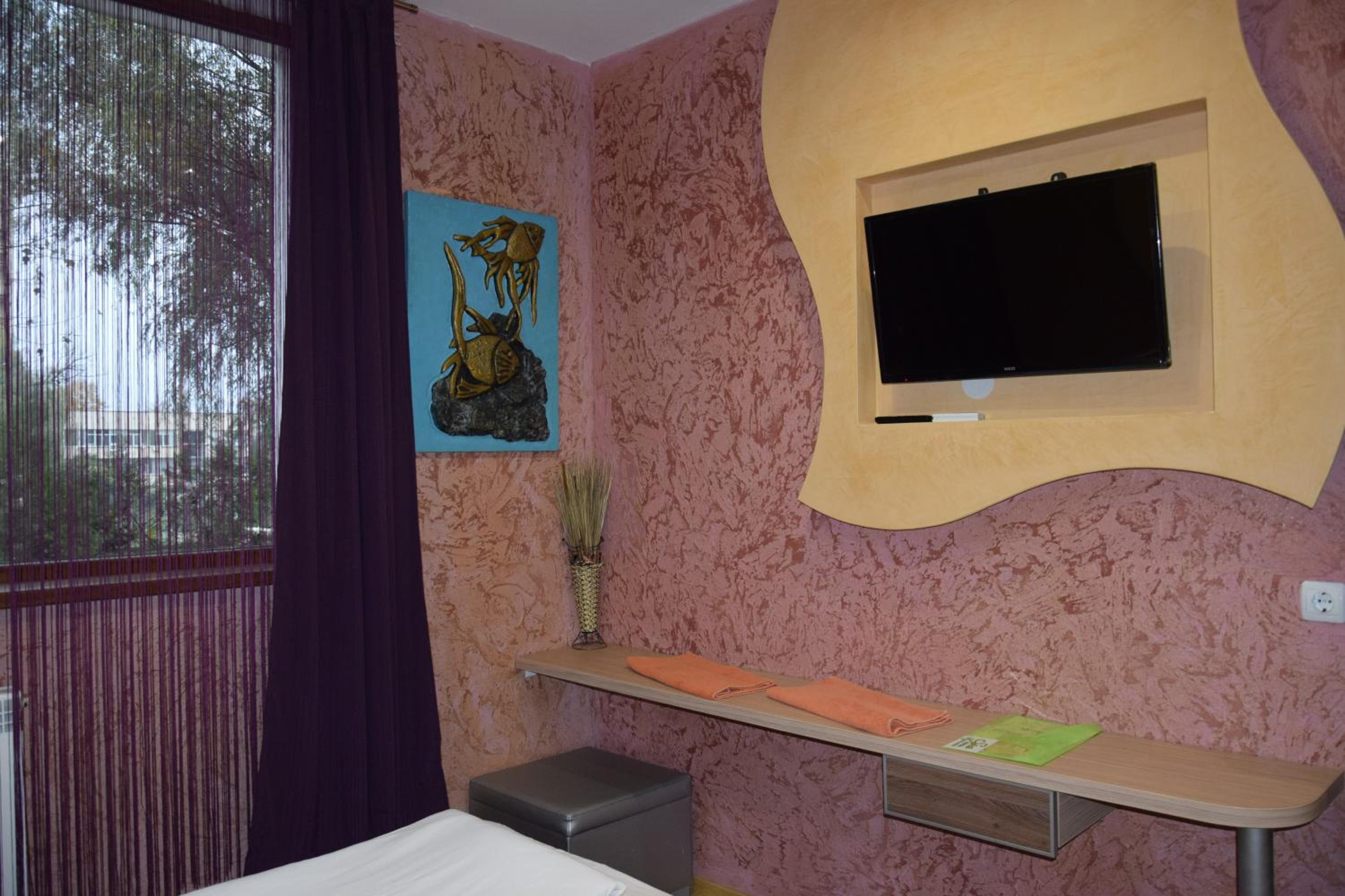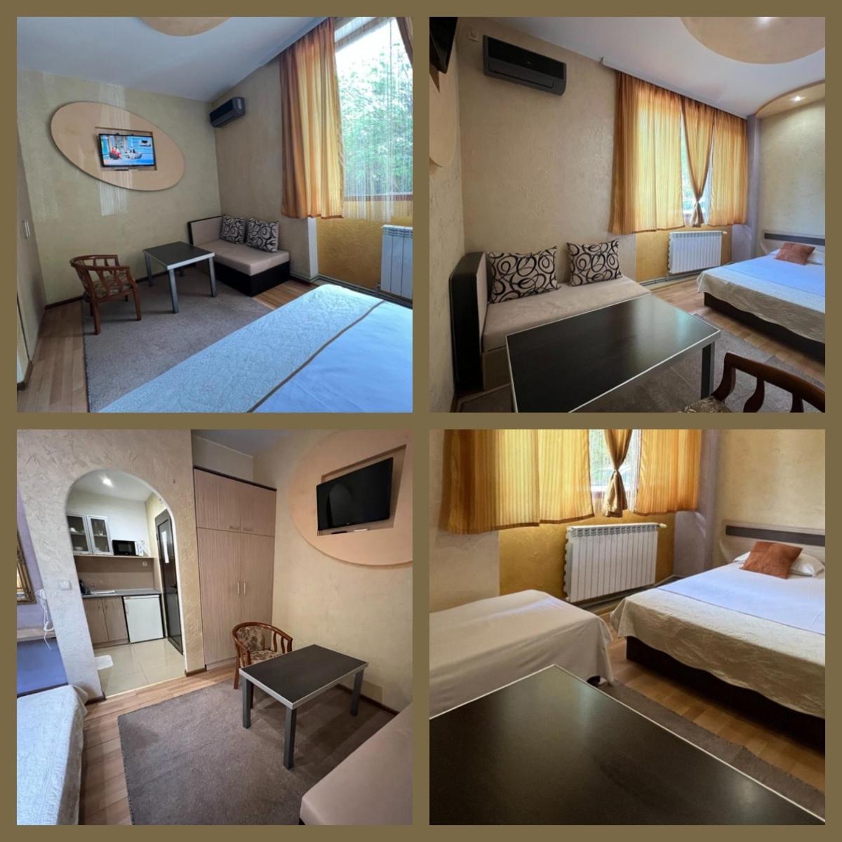 Семеен Хотел Русалка in Svishtov offers air-conditioned rooms with free WiFi and flat-screen TVs. Each room features a kitchenette with a microwave and a refrigerator, ensuring a comfortable stay.
