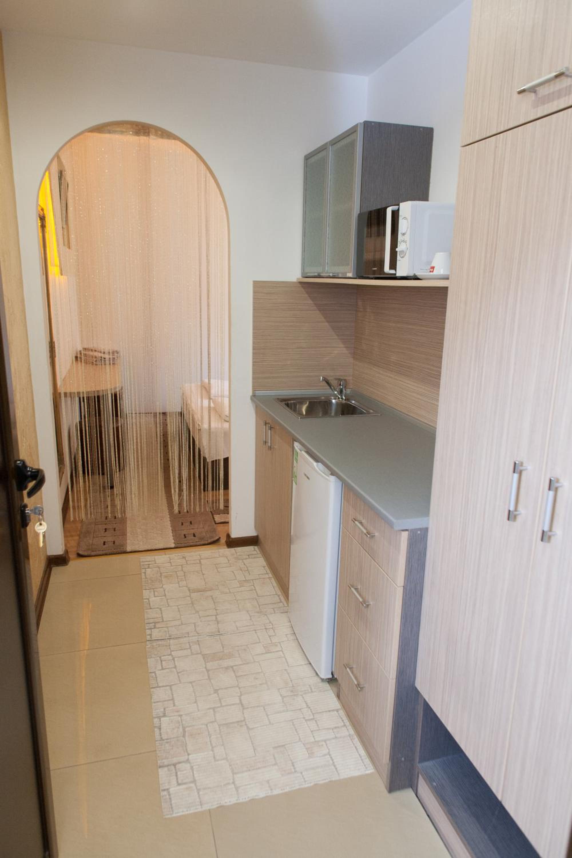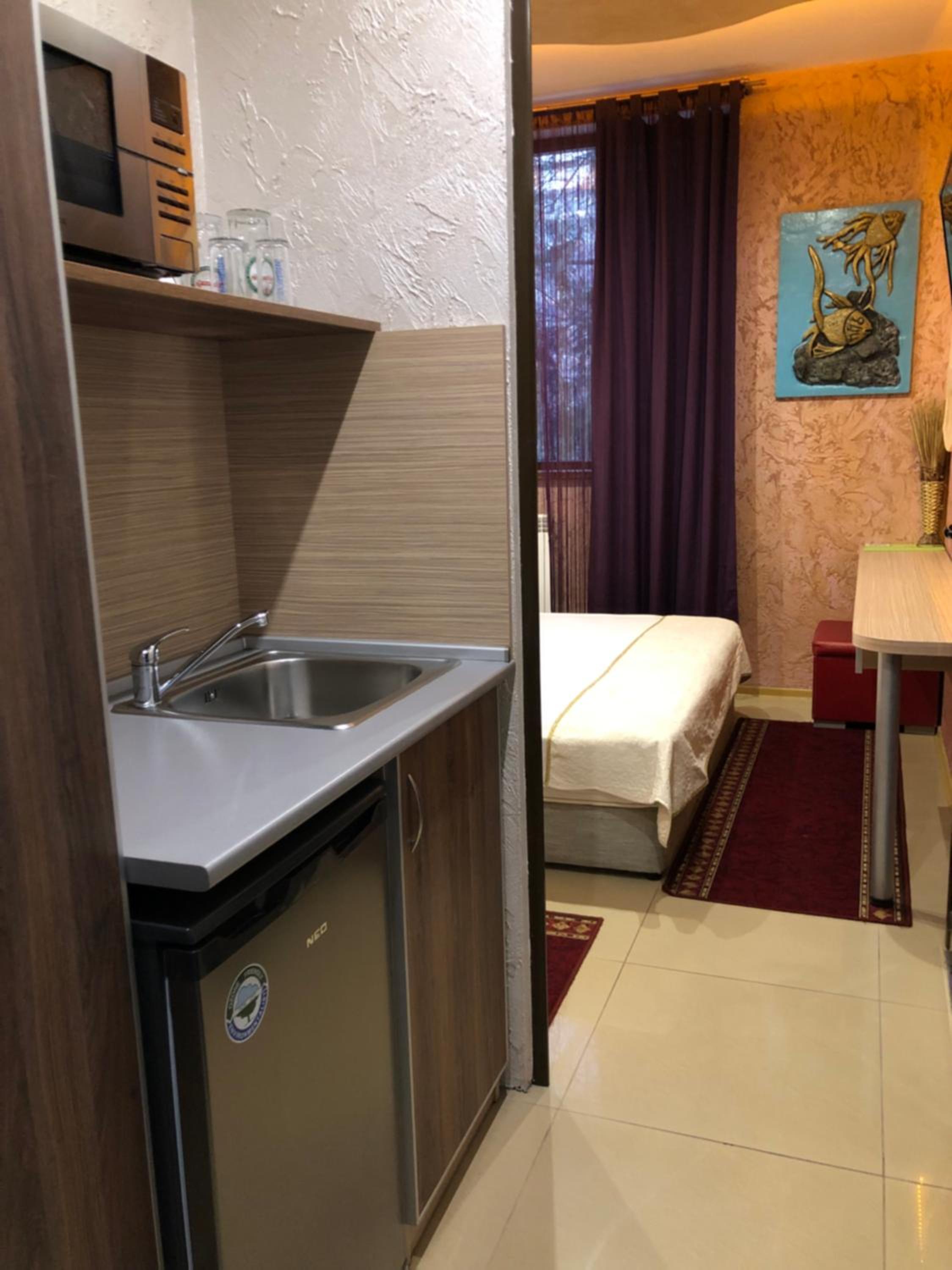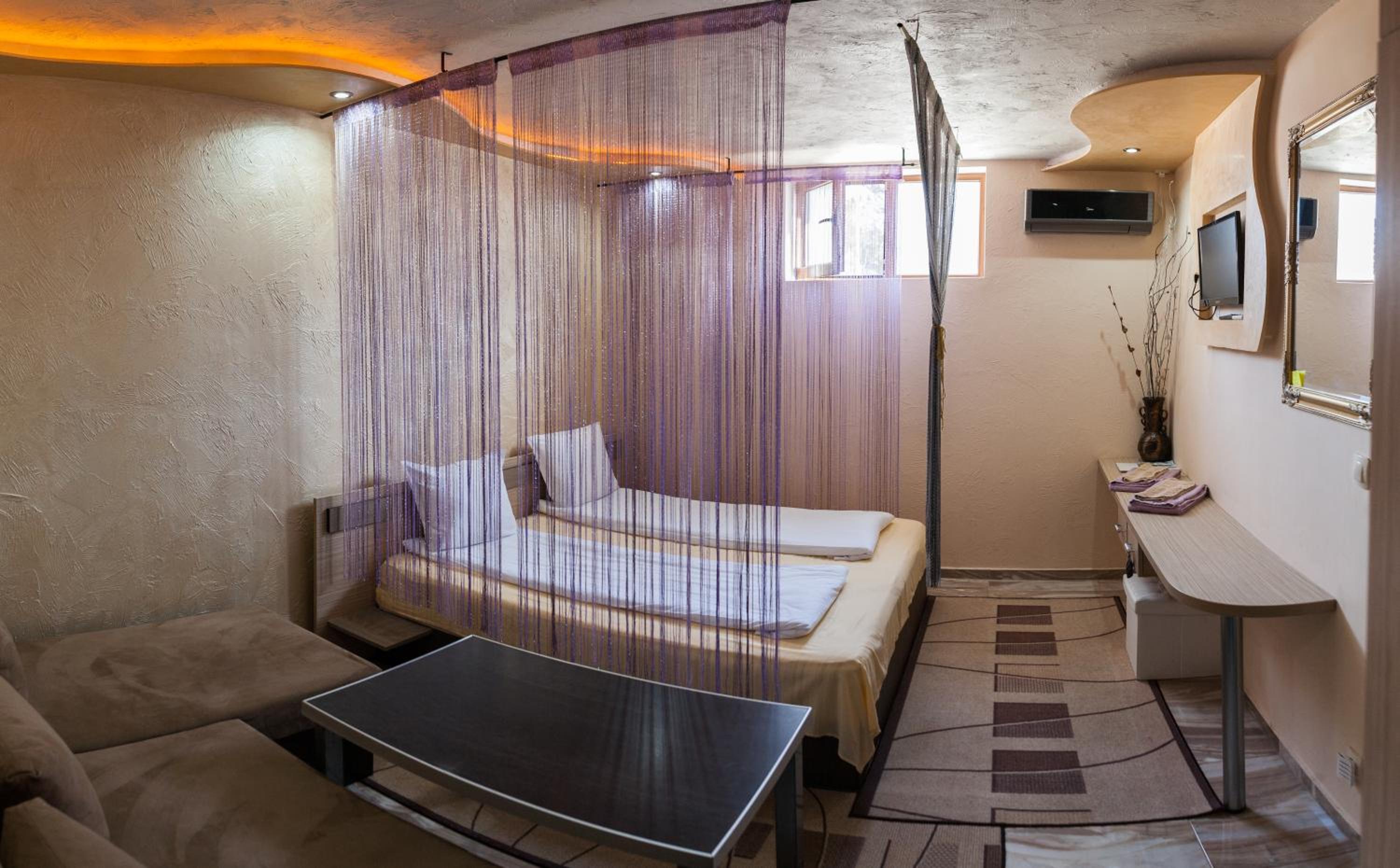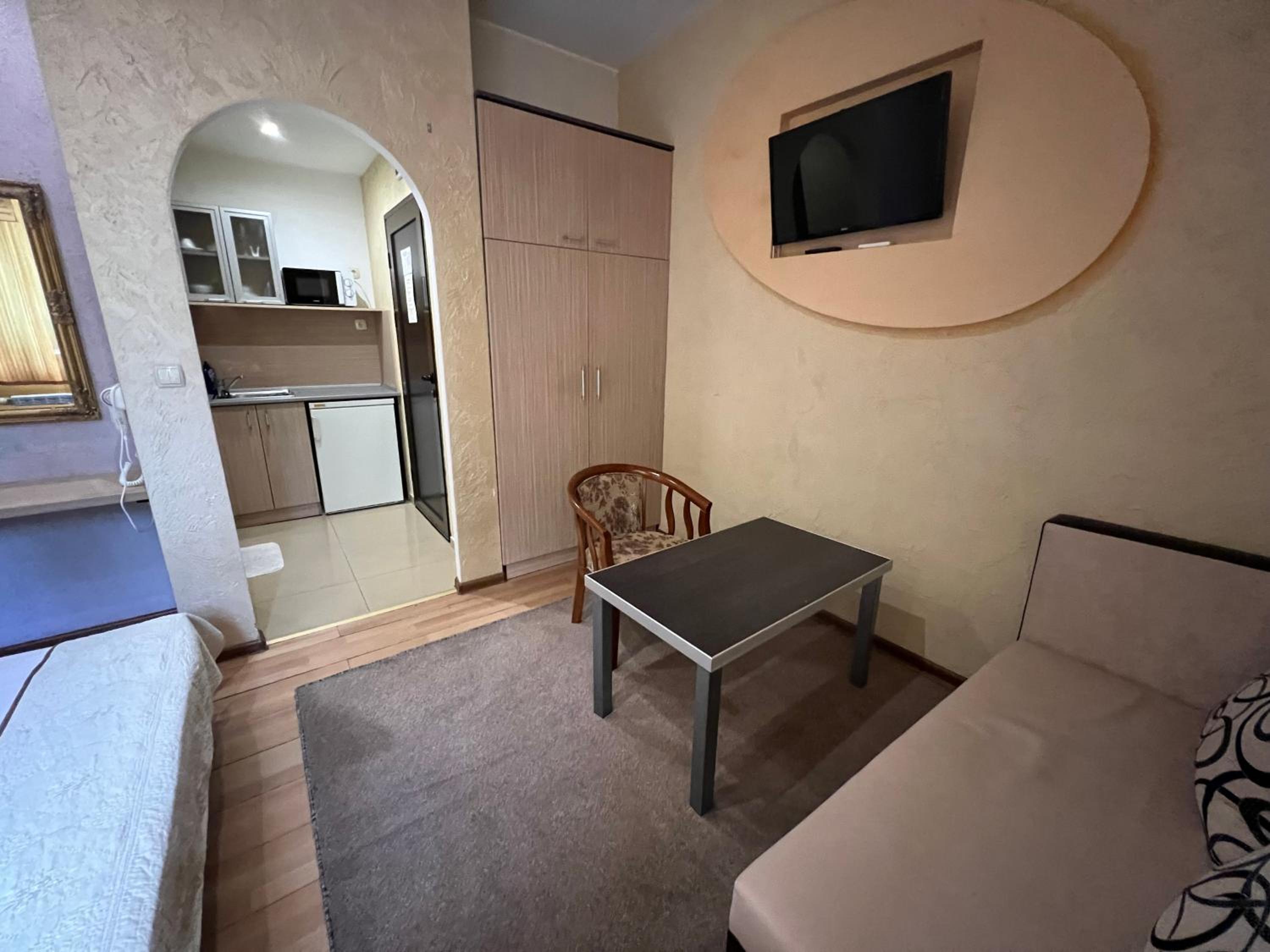 Семеен Хотел Русалка in Svishtov offers air-conditioned rooms with free WiFi and flat-screen TVs. Each room features a kitchenette with a microwave and a refrigerator, ensuring a comfortable stay.