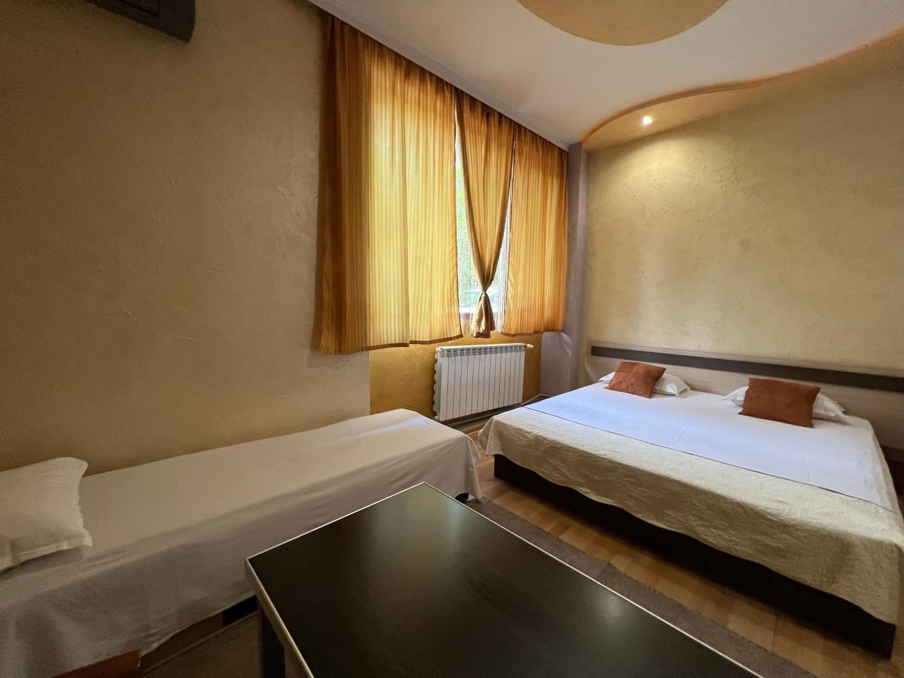 Стаята беше много тясна, осветлението слабо, цяла вечер чувах телевизора в другата стая. Дори подадох информация към рецепция, но нищо не направиха по въпроса. Явно беше от дупката в стената, от където излиза кабела за тв. Не съм очарован от престоя си. Да не говорим, че няколко пъти ме питаха дали ще нощувам преди резервацията при положение, че всеки път отговарях, че "да".
