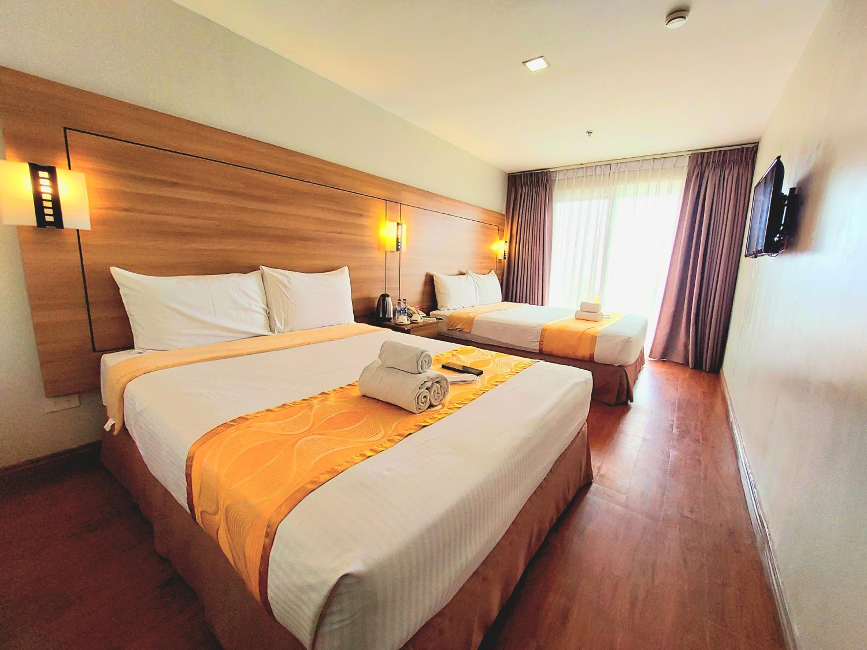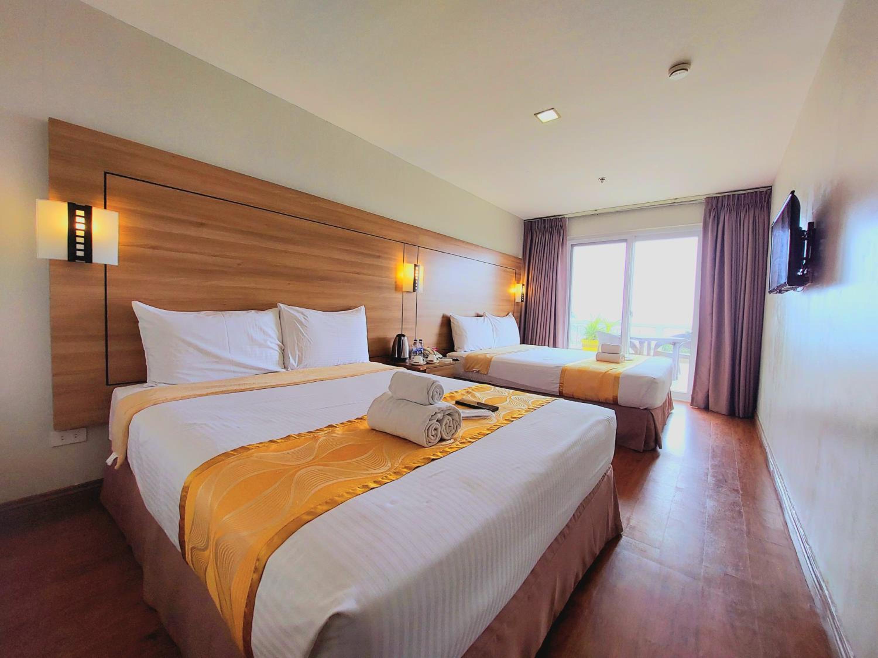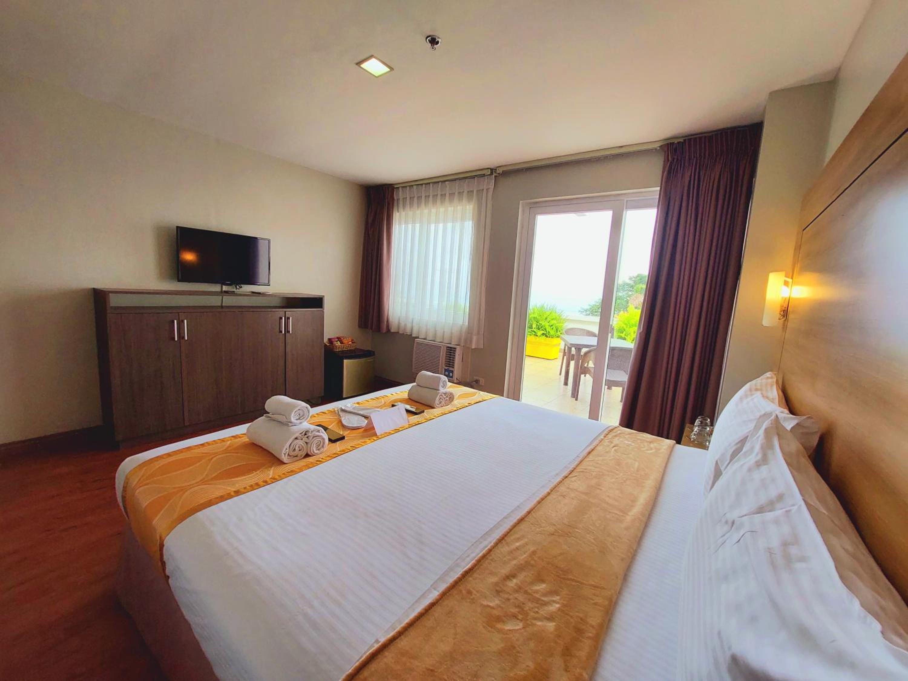 This hotel is not that new but the facilities are okay, clean and well-maintained. The view at the alfresco deck/resto is so relaxing. The Officer-in-Charge gave us an hour extension for check-out when we encountered problem with our room AC, but everything works well. The staffs are super friendly and accommodating. Even after our check-out we stayed at their restaurant and ate lunch. Their Ala carte food are great and I bet their samgyup also since there are lots of people eating during lunch time for the samgyup. Even if you don't check-in at the hotel, this is a nice spot for afternoon tambay since the alfresco rest is so windy and cold.