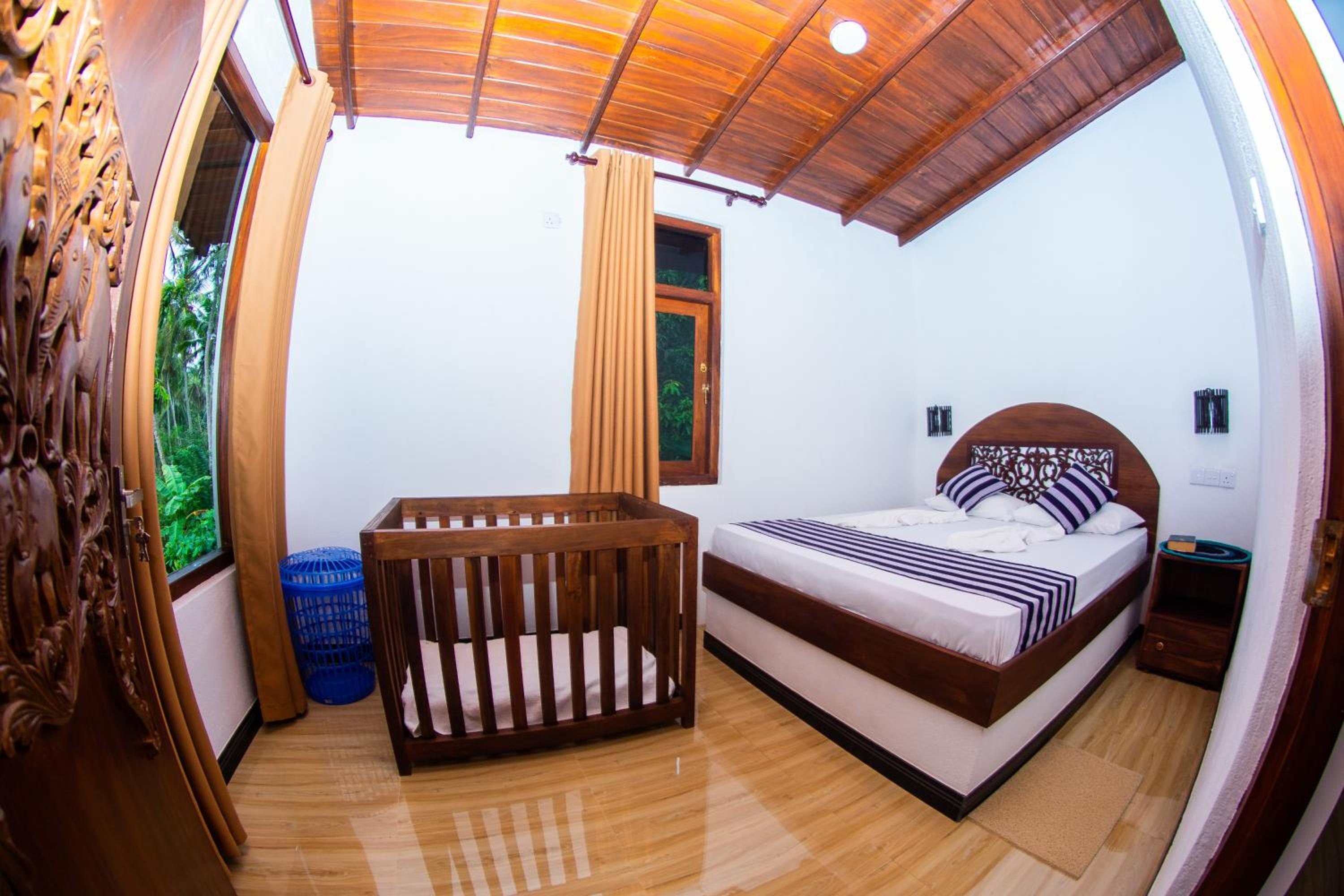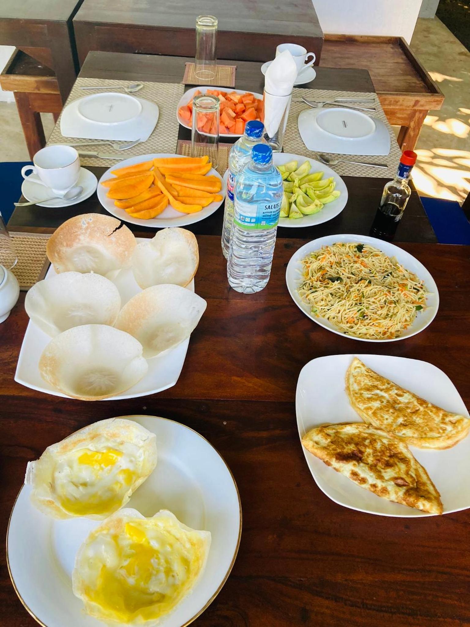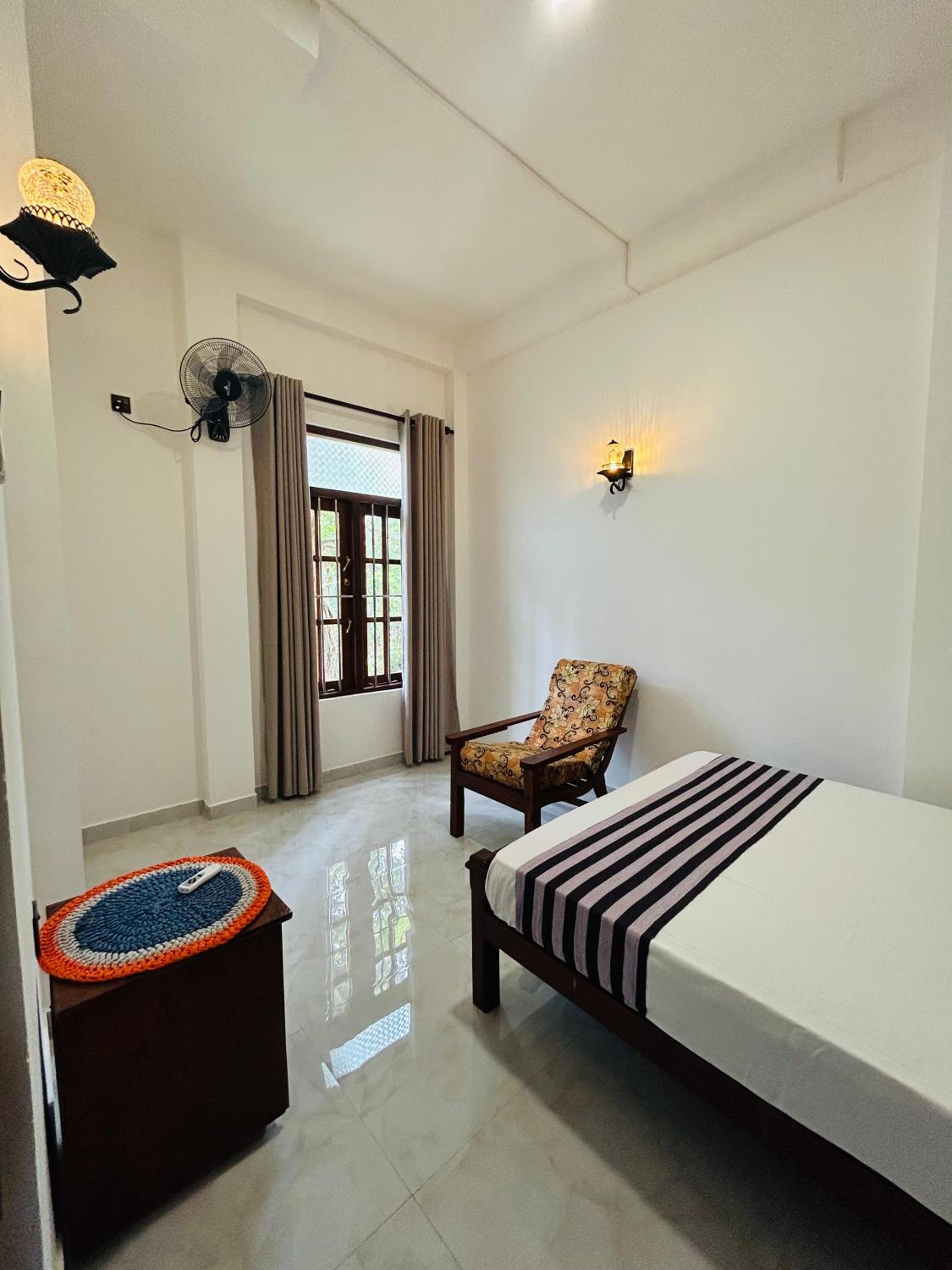 Останавливались здесь на 6 ночей в начале декабря 2025. Уютный семейный отель с очень ухоженным садом. Завтраки каждый день разные, всегда со свежими вкусными фруктами (рисовые лепешки, кокосовые блинчики, омлет, паста, курд). На человека два полотенца+ пляжные. Есть своя кухня, у хозяина можно попросить нож, чтобы самим раскрывать кокосы. Хозяин очень приветливый, готовил нам вкусный ужин(рыба +креветки), посоветовал места, рестораны, помог заказать трансфер в аэропорт. Есть горяча вода в душе. Океан в 3 минутах ходьбы, волн нет, вода чистая. До центра Тангалле 10 мин на Крейзе басе -50 рупий, остановка прям рядом с домом. По утрам ходят павлины во дворе, рядом обезьянки есть)