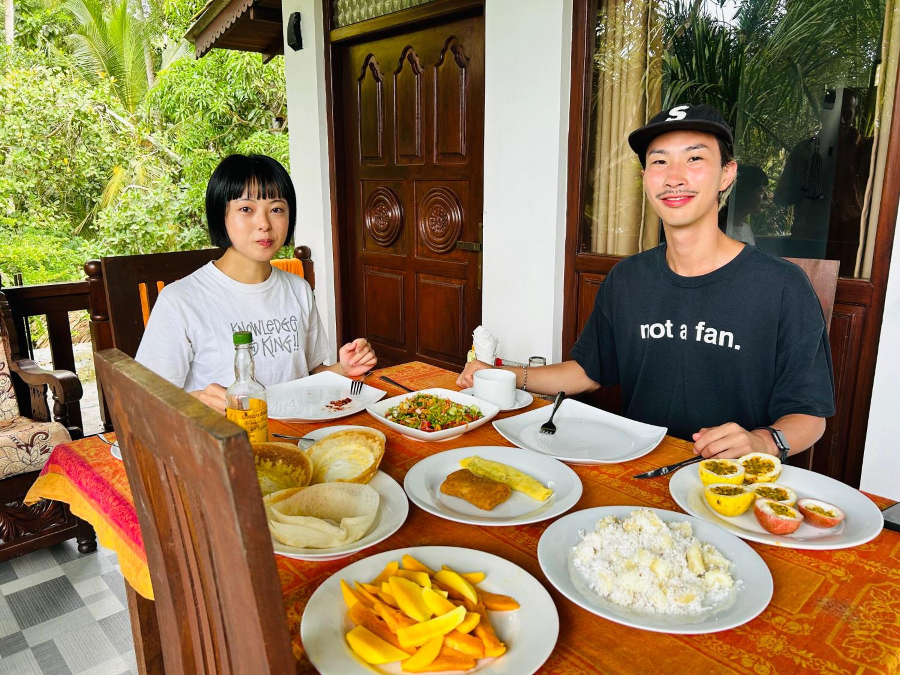 We felt very welcome by the (family) owners. Very kind people that are genuinely there to help you and make the best out of your stay. The breakfast was very tasty and abundant. It always included fresh fruit, omelette, local curd and local roti or coconut pancakes. Super nice!