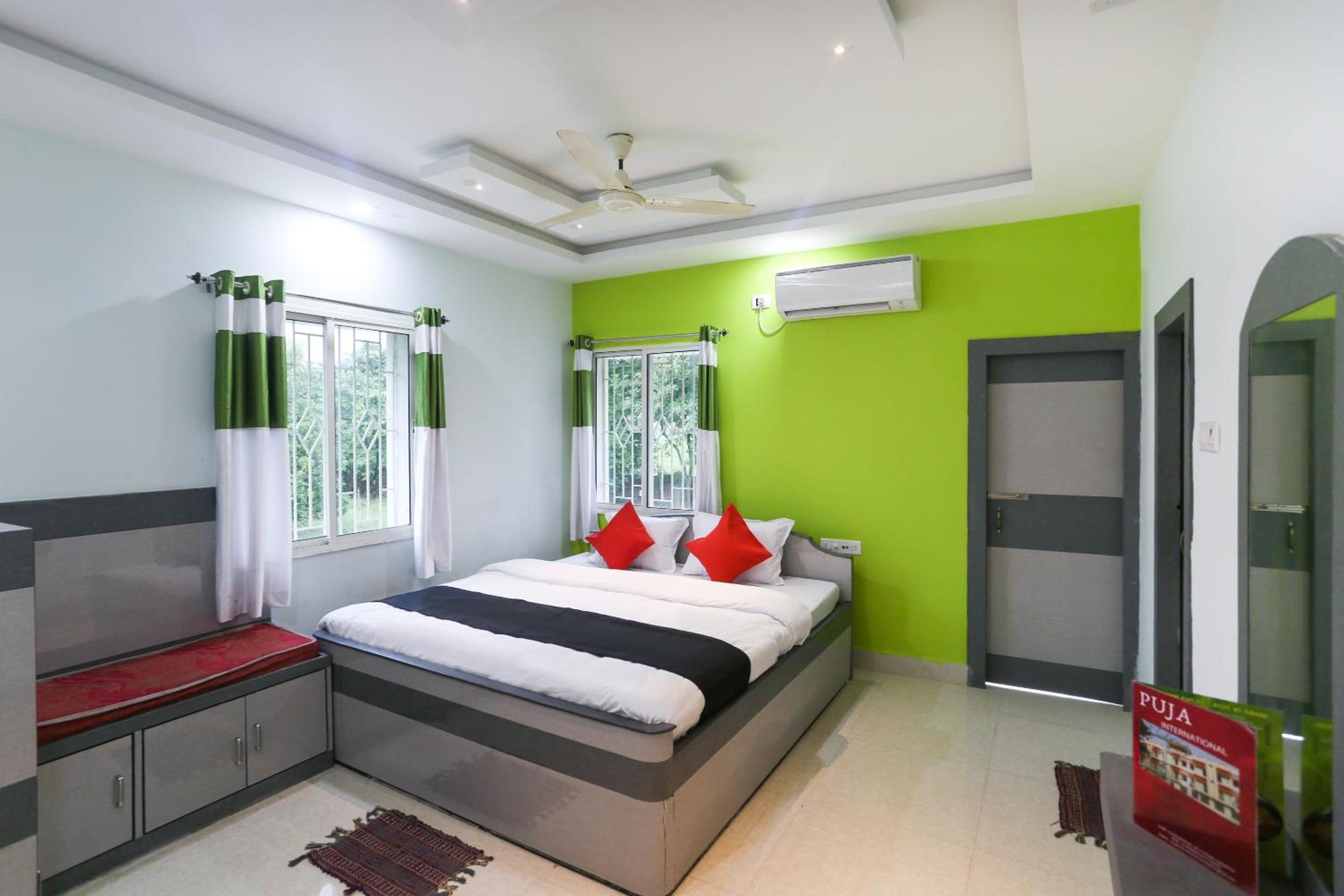 Each room at Puja International Hotel is thoughtfully equipped with essential amenities such as a flat-screen TV, cozy bedding, and a private bathroom, ensuring a comfortable and relaxing stay for all guests.