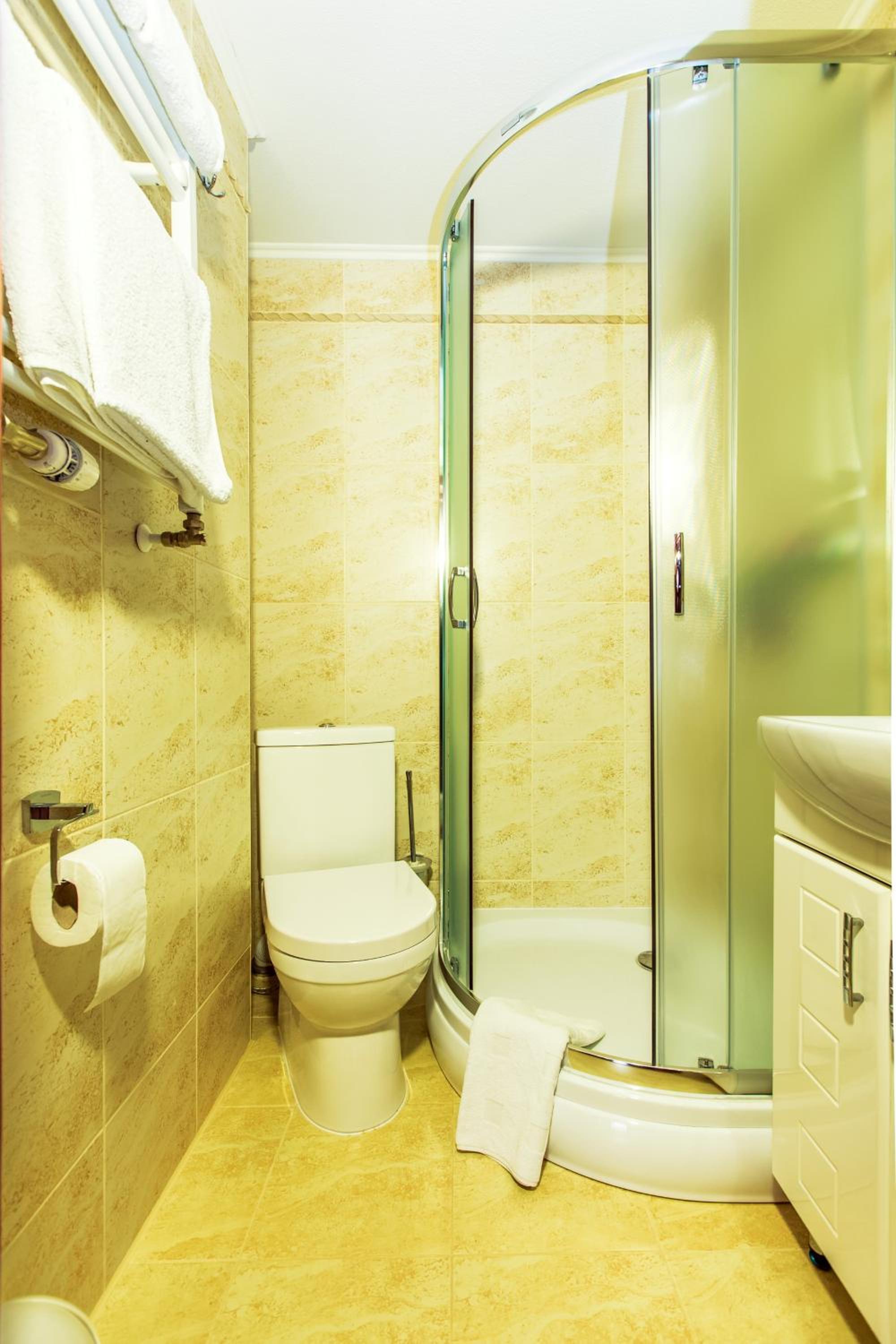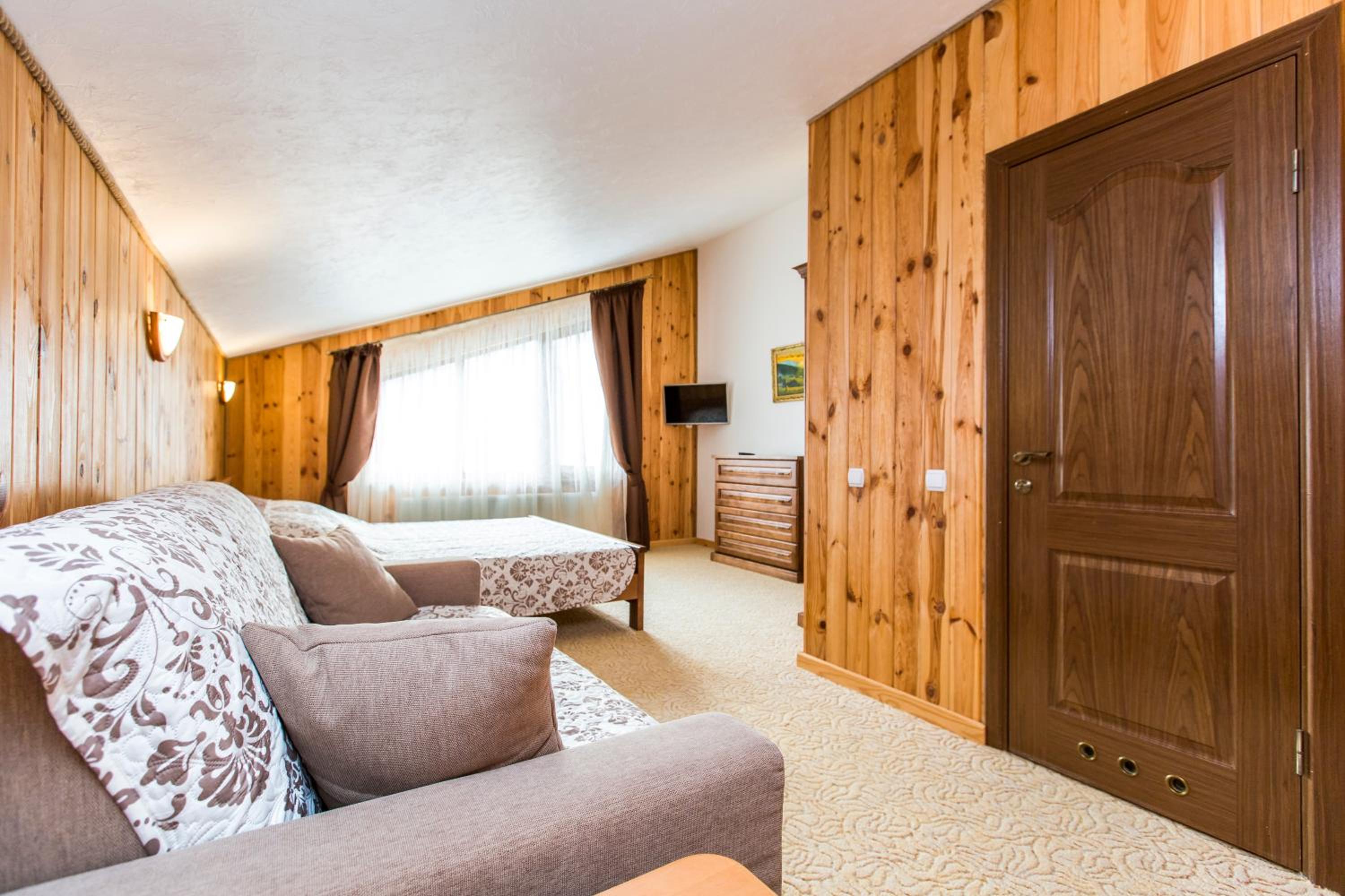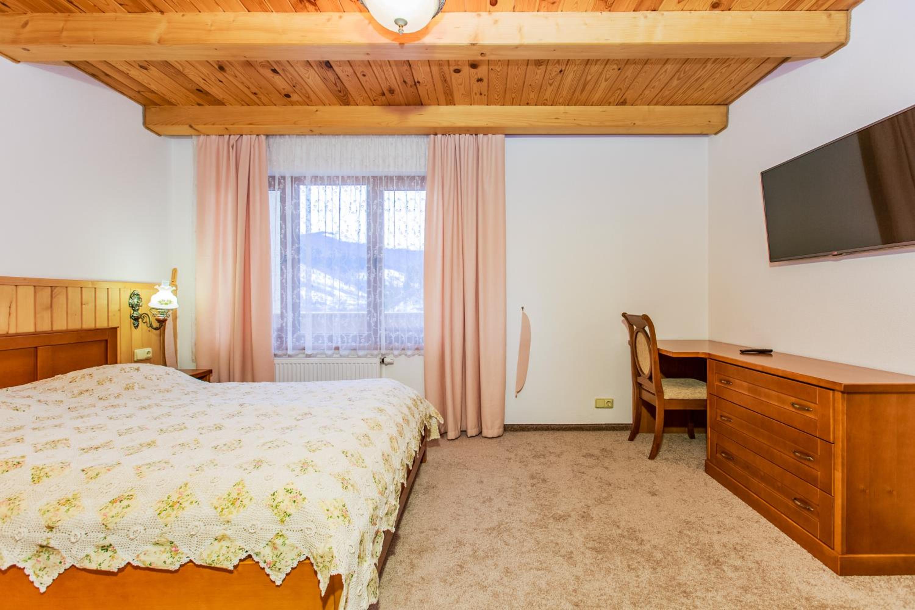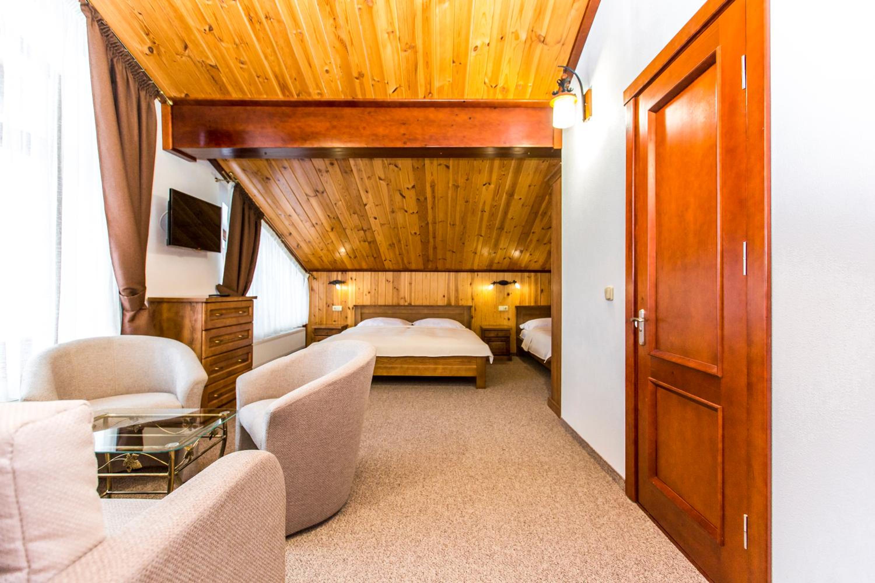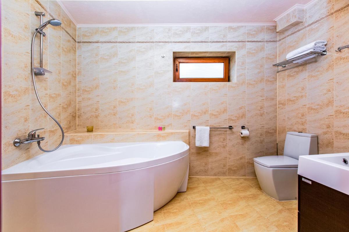 The rooms at ATAVA family house are designed for comfort and convenience, with features like flat-screen TVs, private bathrooms, and some rooms even offering a terrace or balcony for guests to enjoy the stunning views.