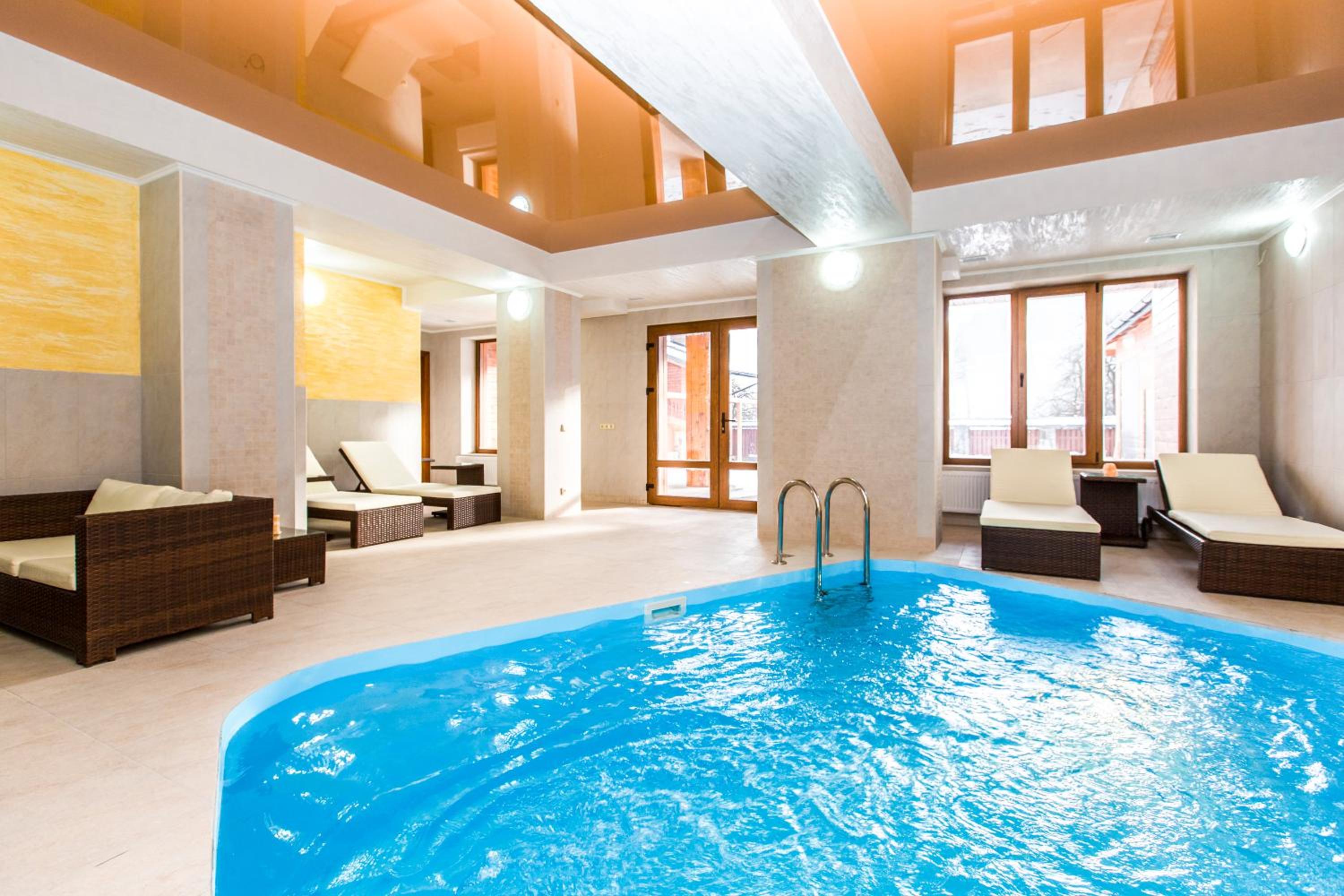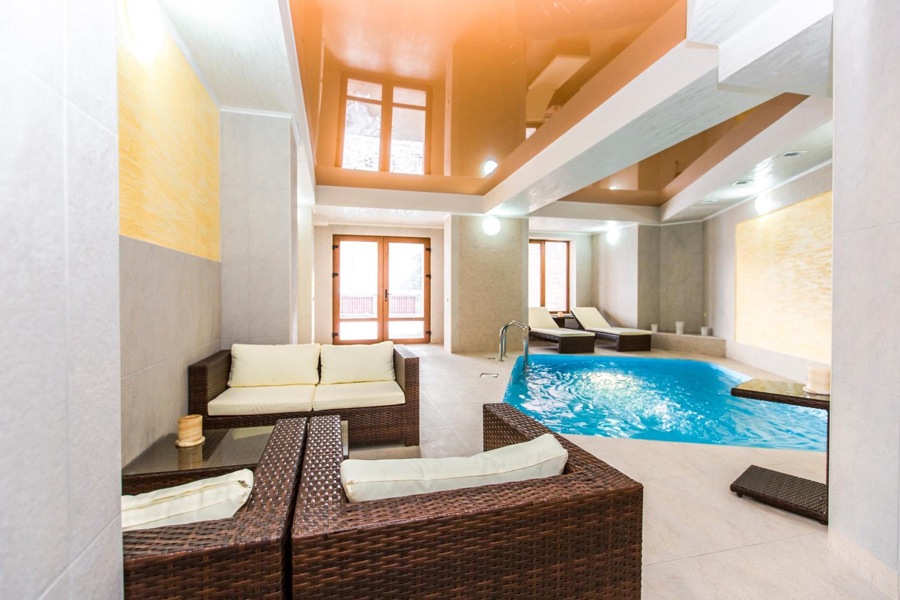 ATAVA family house offers a range of luxurious amenities, including a sauna, indoor pool, and a bar where guests can unwind with a drink after a long day of activities.