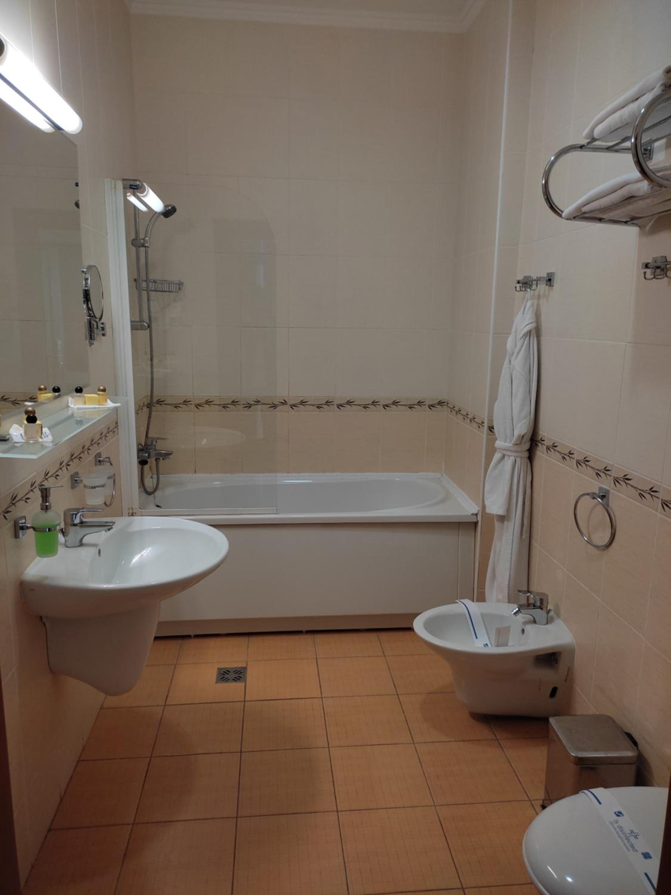 У когось в номері був халат, у нас - ні. Йти через увесь готель в басейн ще нічого, а от навпаки - то вже ризиково. В номері немає кондиціонеру. Було прохолодно. Сніданки скромні, але є.