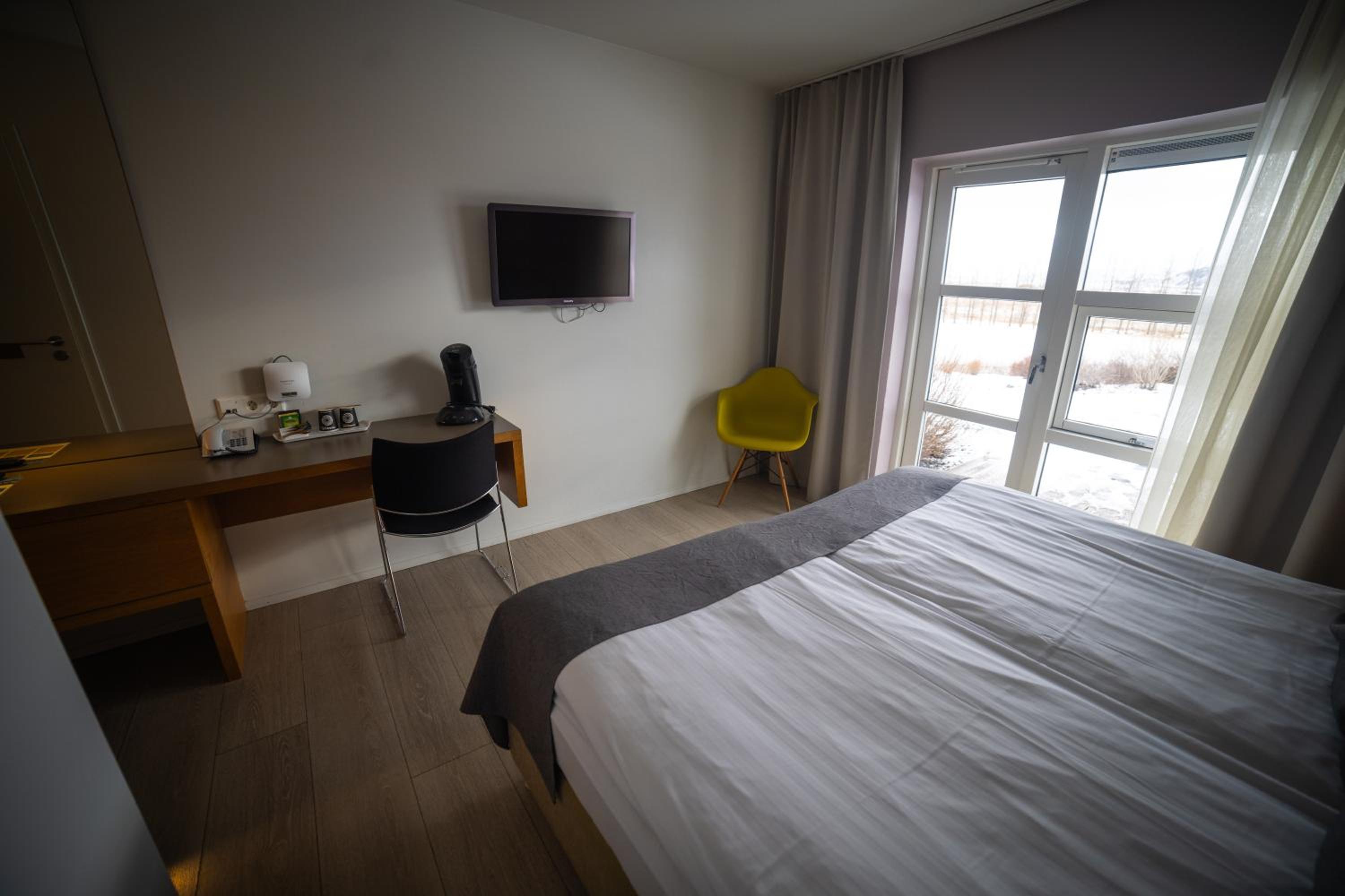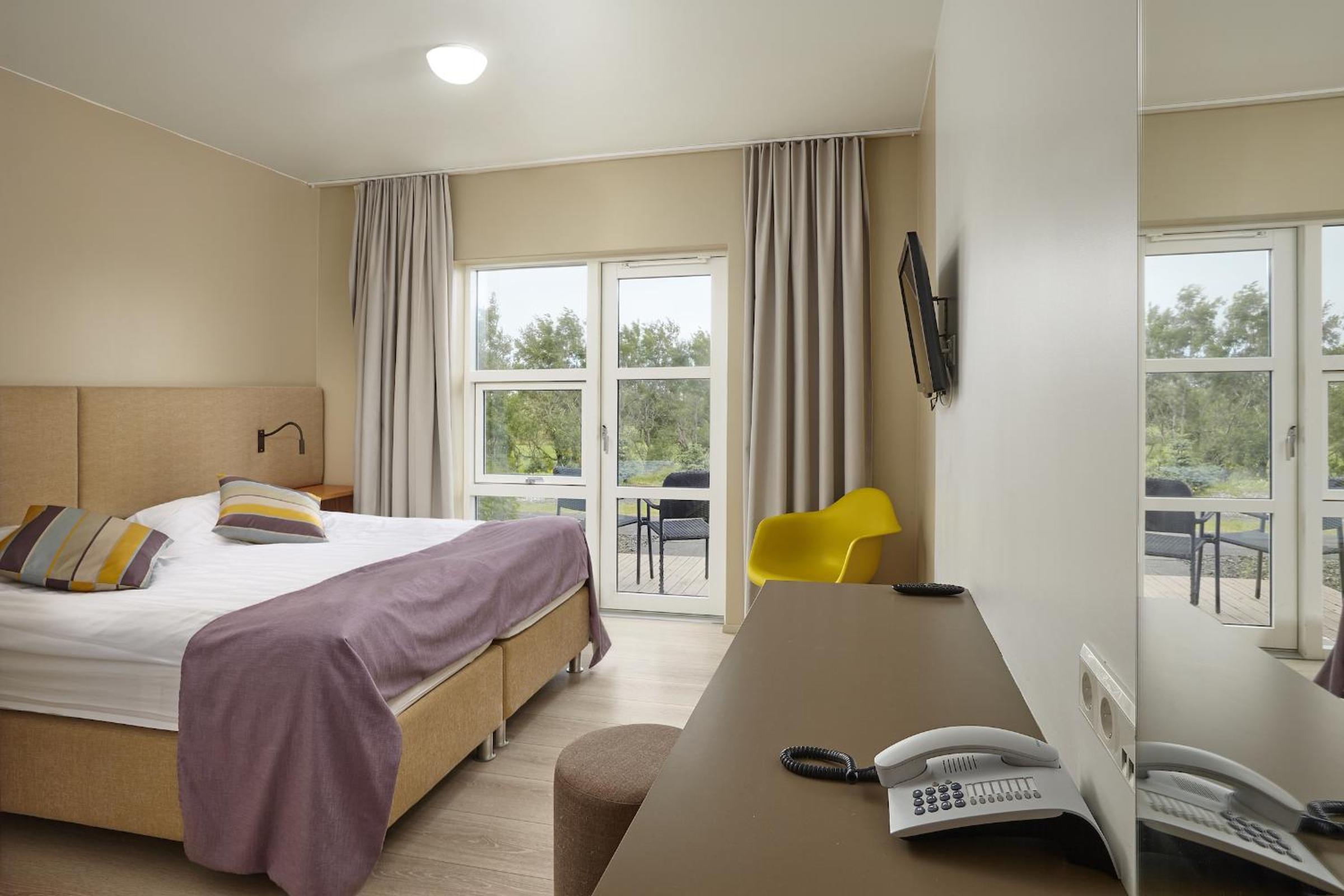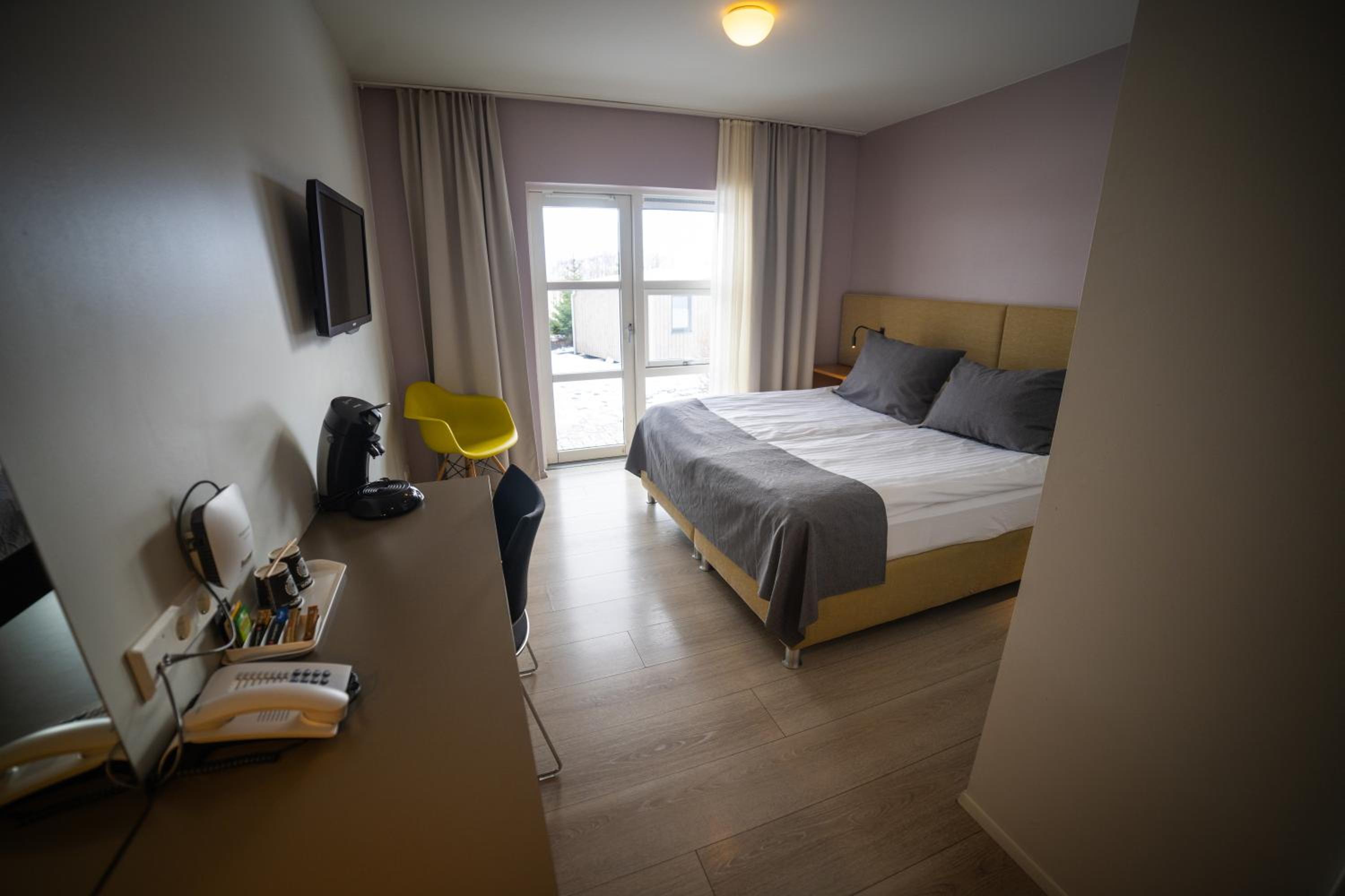 Enjoy the sleek and minimalist design of Hotel Hamar's rooms, complete with heated floors and a private patio. Rejuvenate in the private bathrooms featuring refreshing showers.