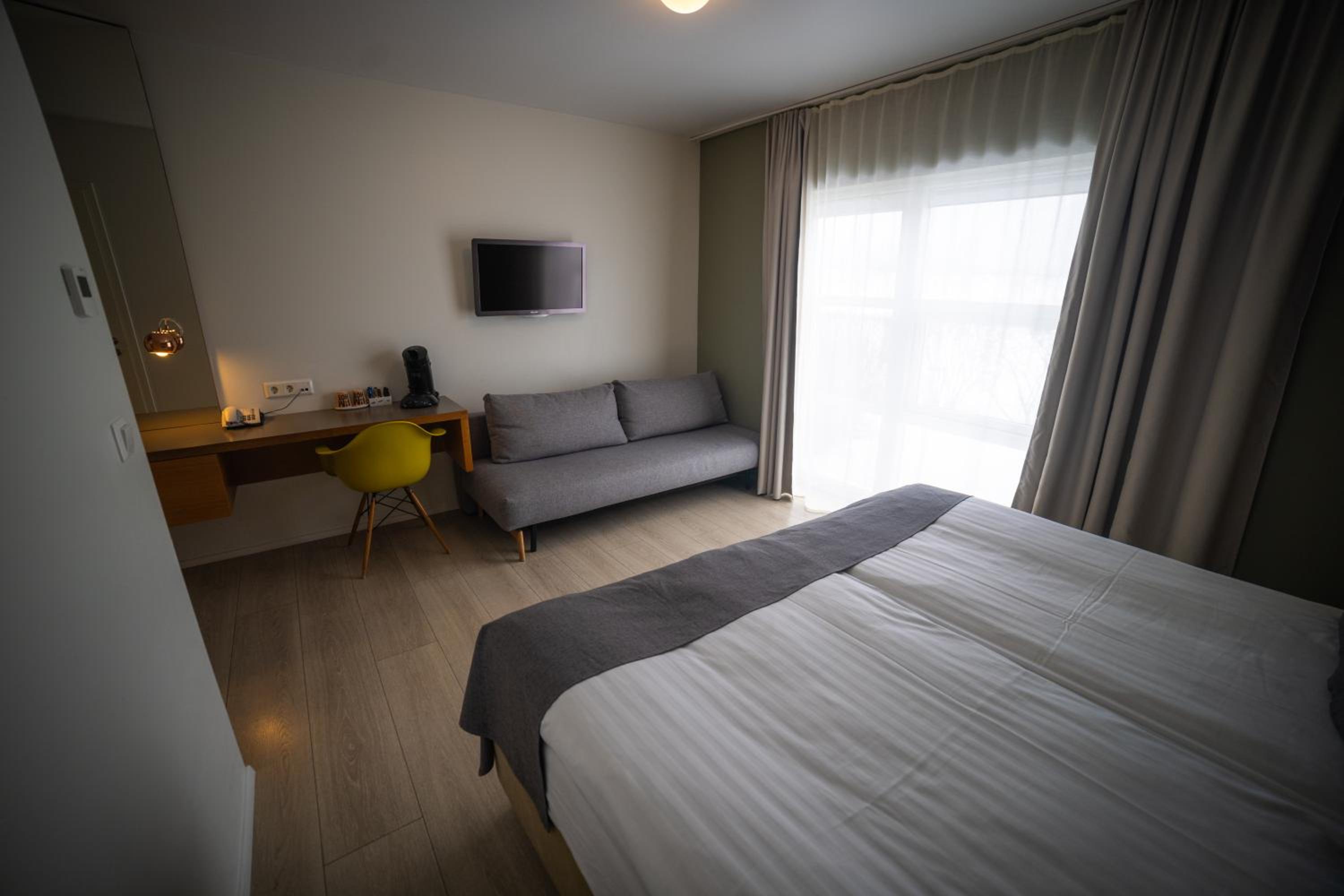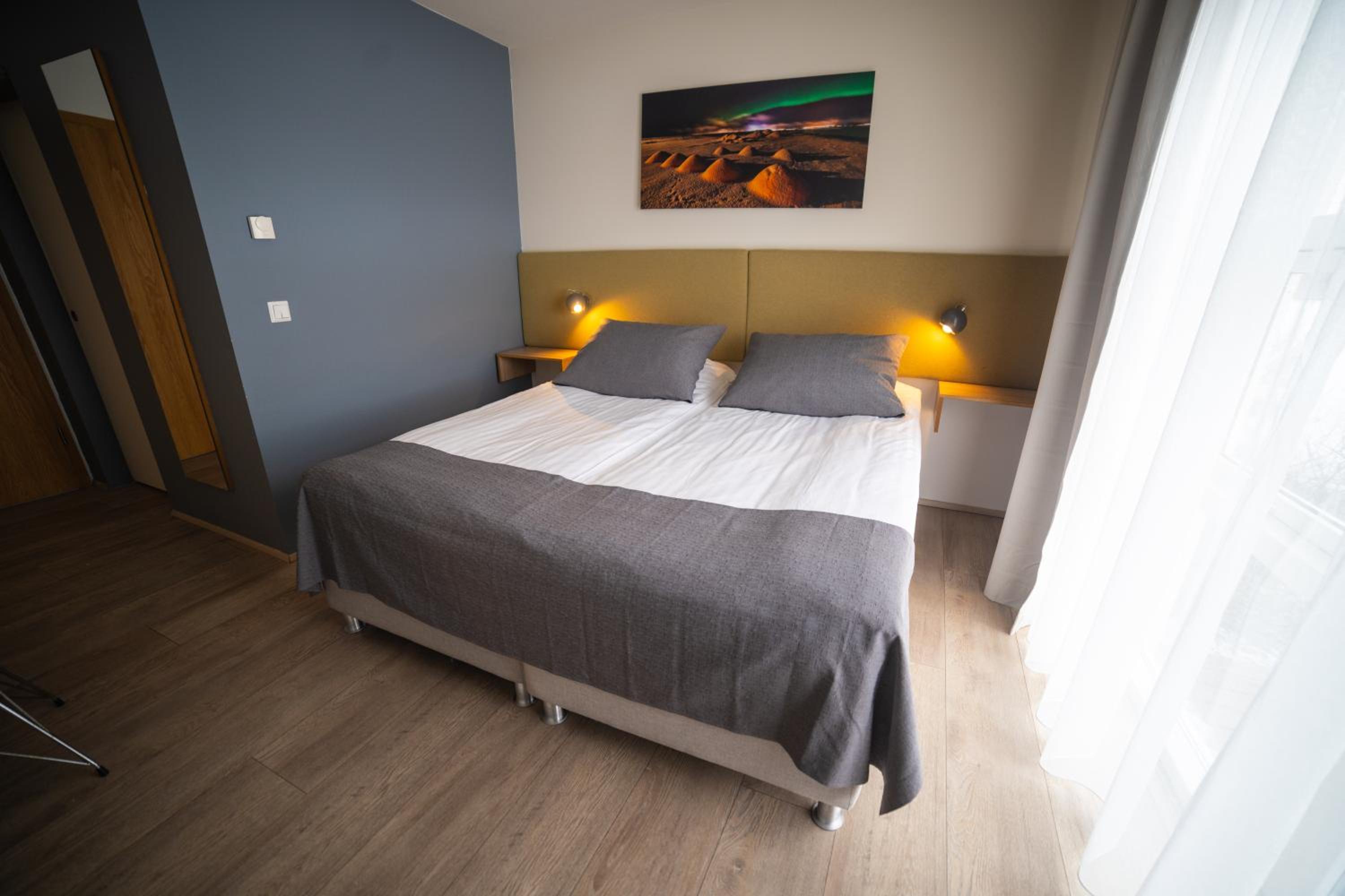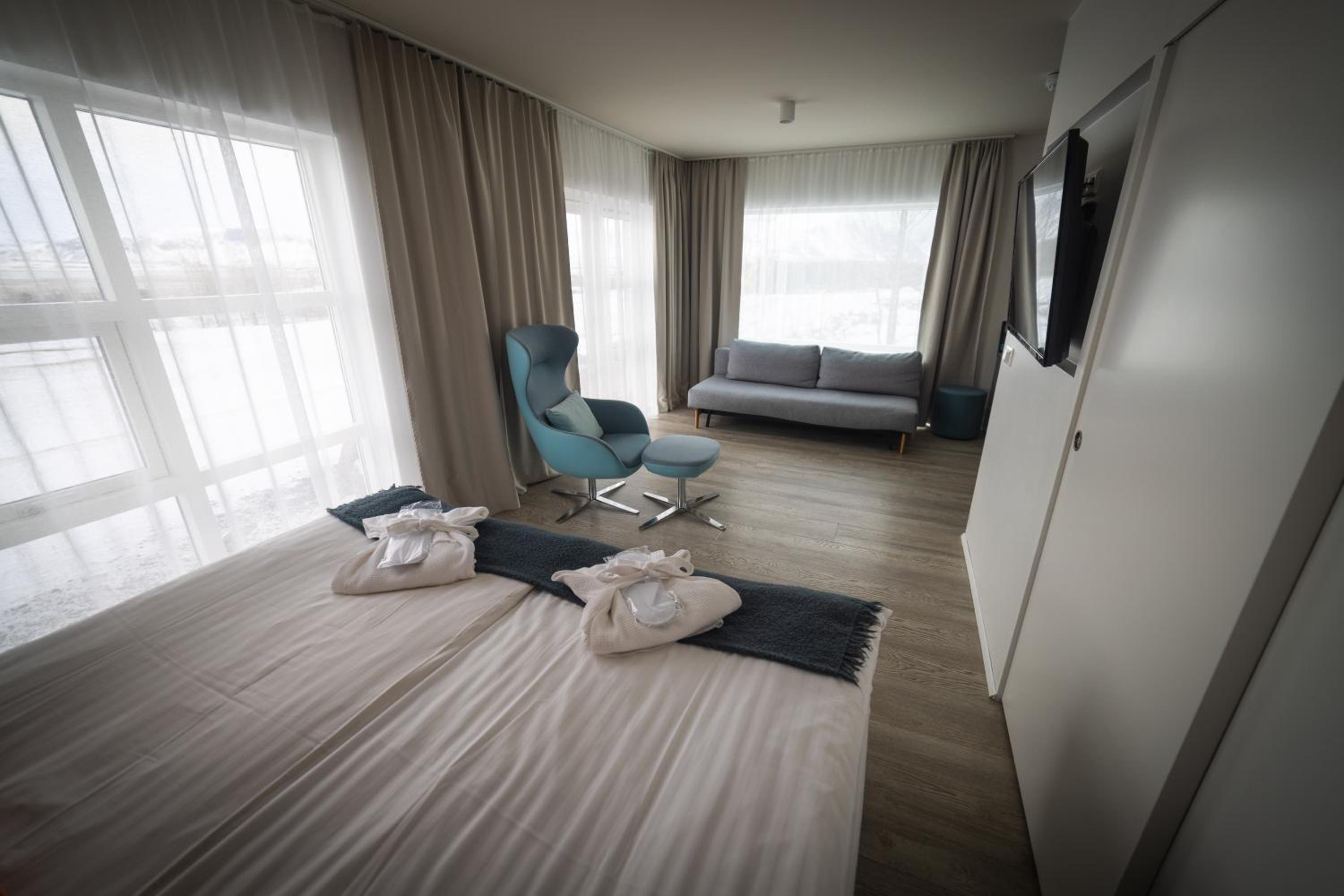 Enjoy the sleek and minimalist design of Hotel Hamar's rooms, complete with heated floors and a private patio. Rejuvenate in the private bathrooms featuring refreshing showers.