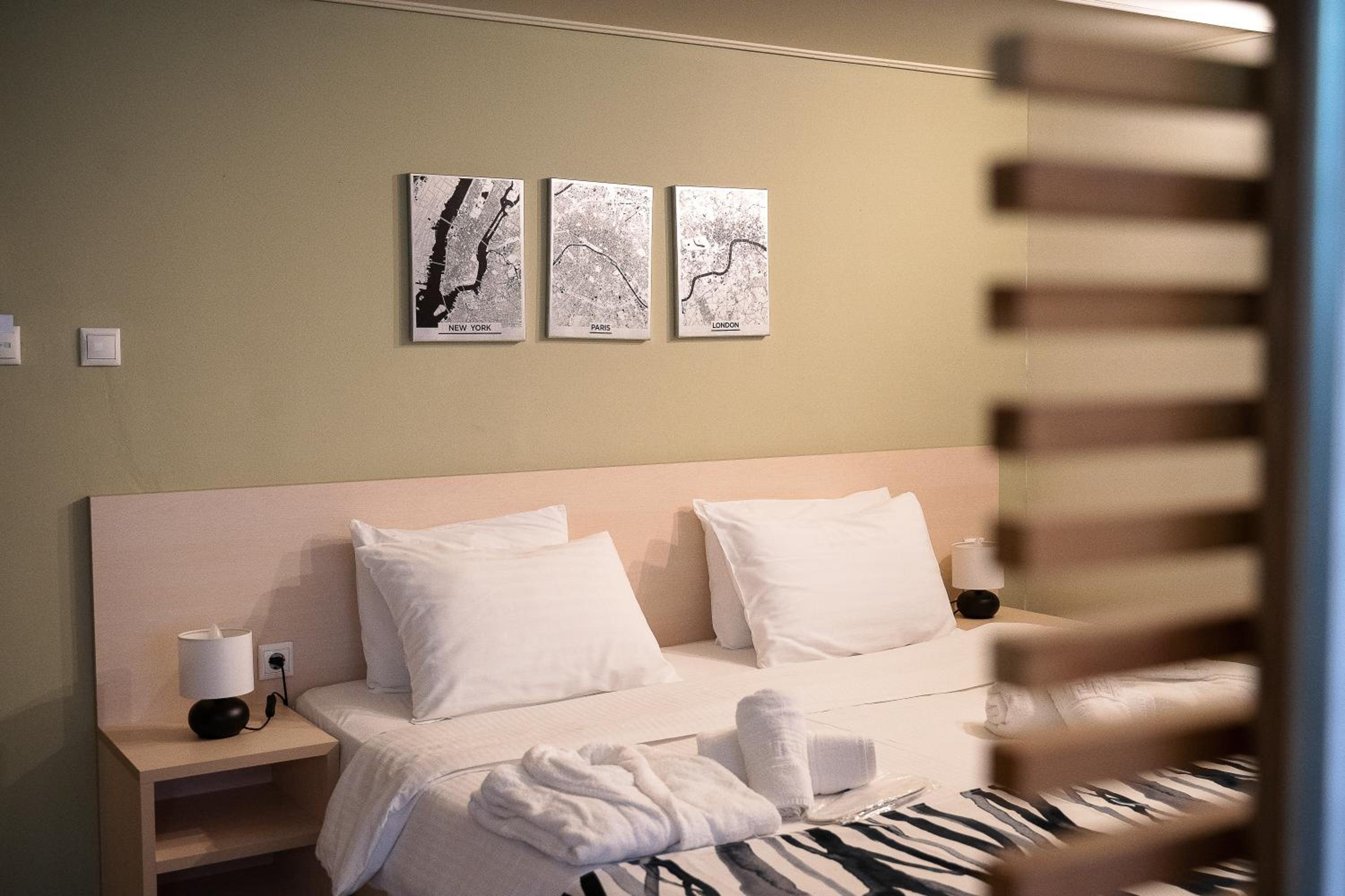 Luxurious Guest Rooms with Upgraded Amenities - Our modern guest rooms are designed for your comfort, featuring spacious marble bathrooms, complimentary toiletries, and the option to upgrade to rooms with hot tubs and mesmerizing views of Meteora.