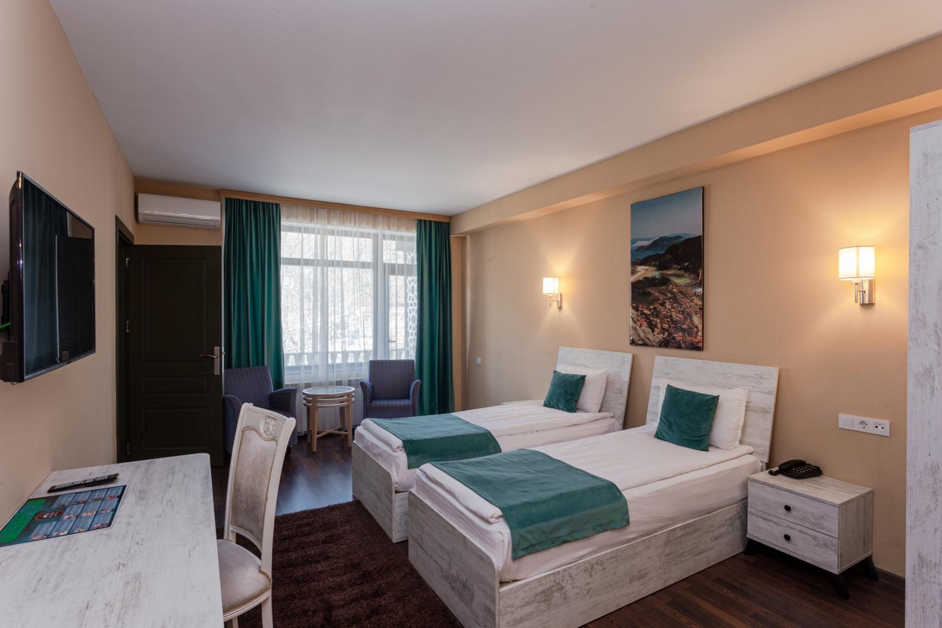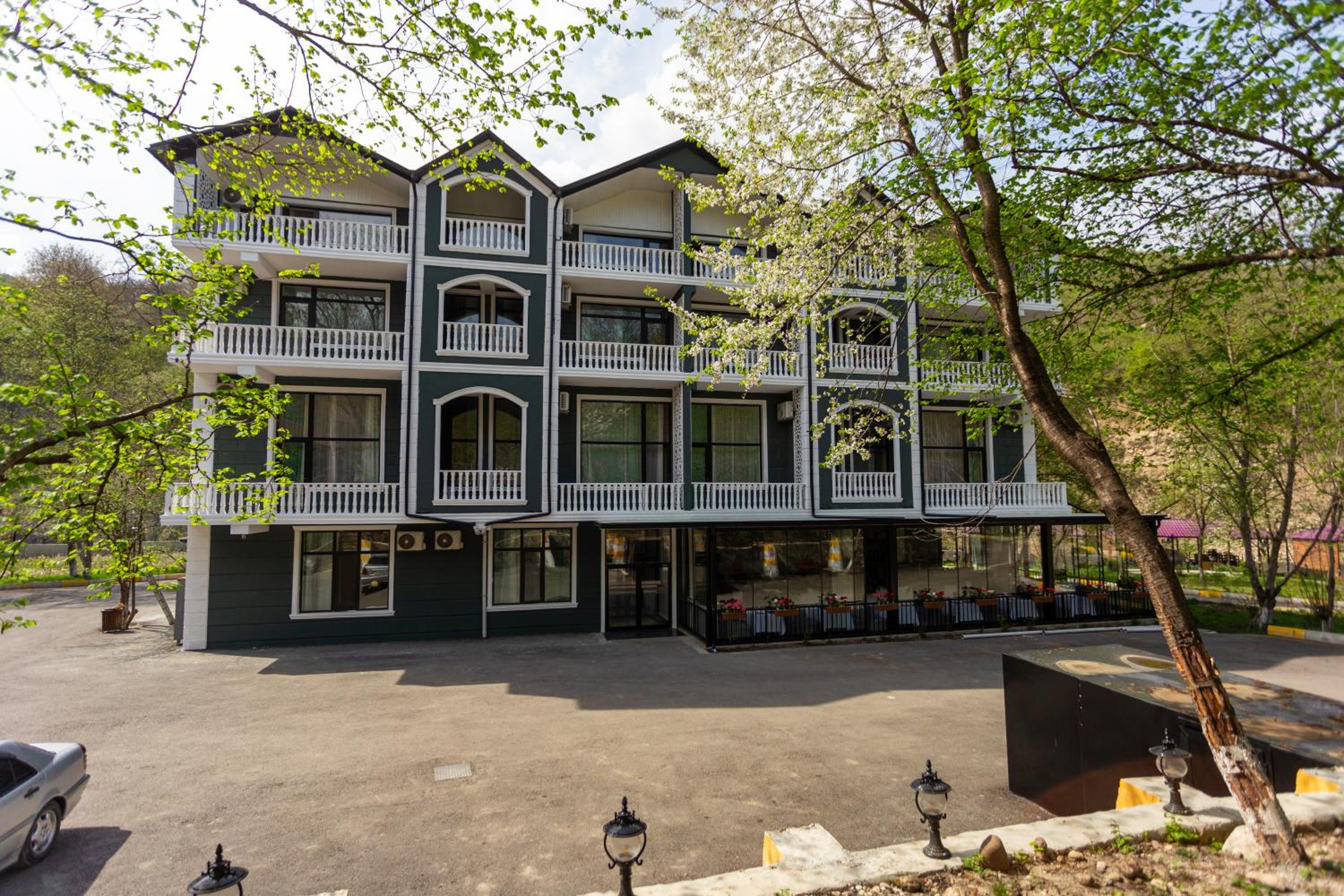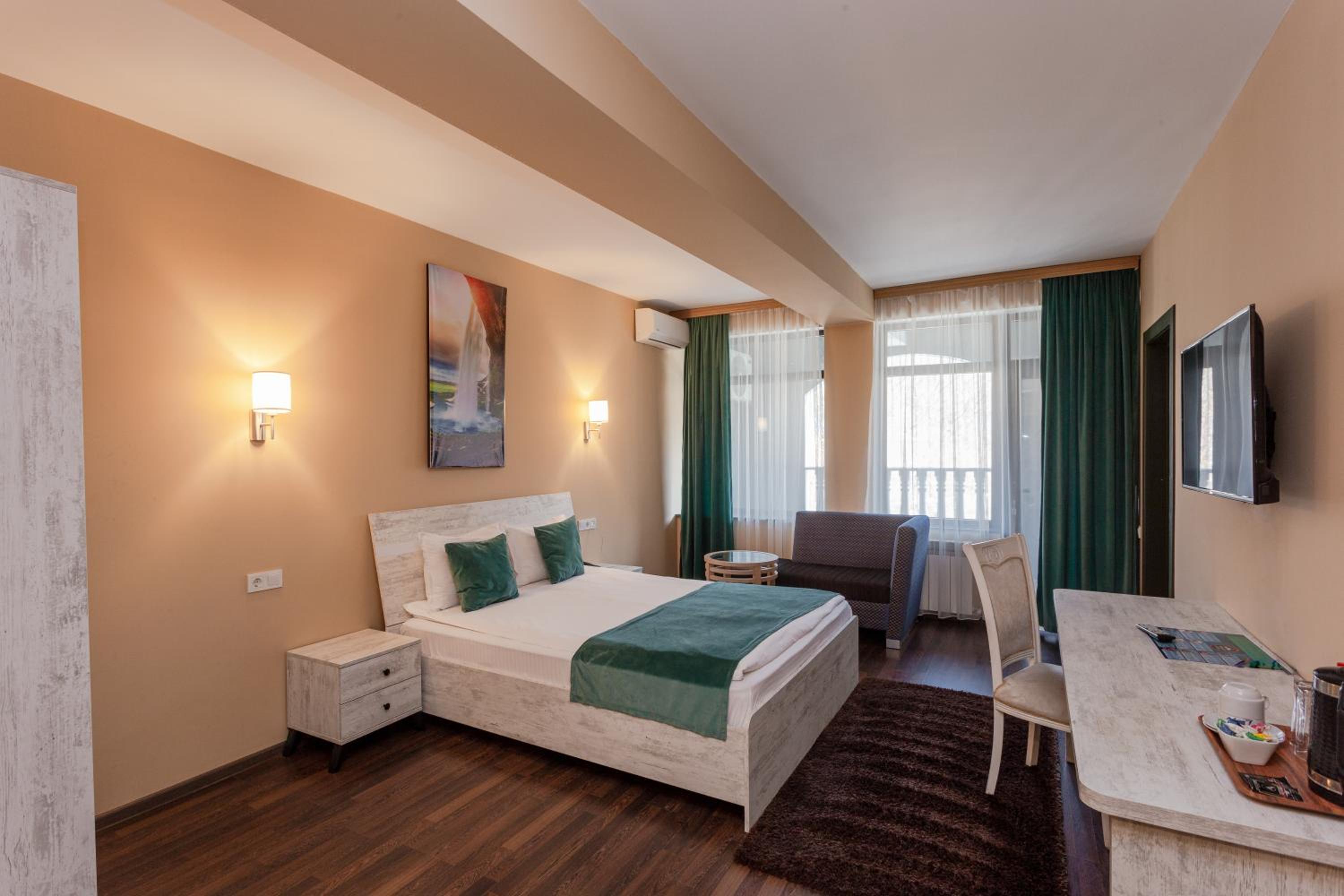 Классный отель за городом. Можно расслабиться под шум горной речки. Есть бесплатное посещение сауны и бассейна. Номер был просто огромным да еще и с балконом. Парковка достаточно вместительная. Персонал приветливый, говорят на разных языках. Отличный завтрак.
