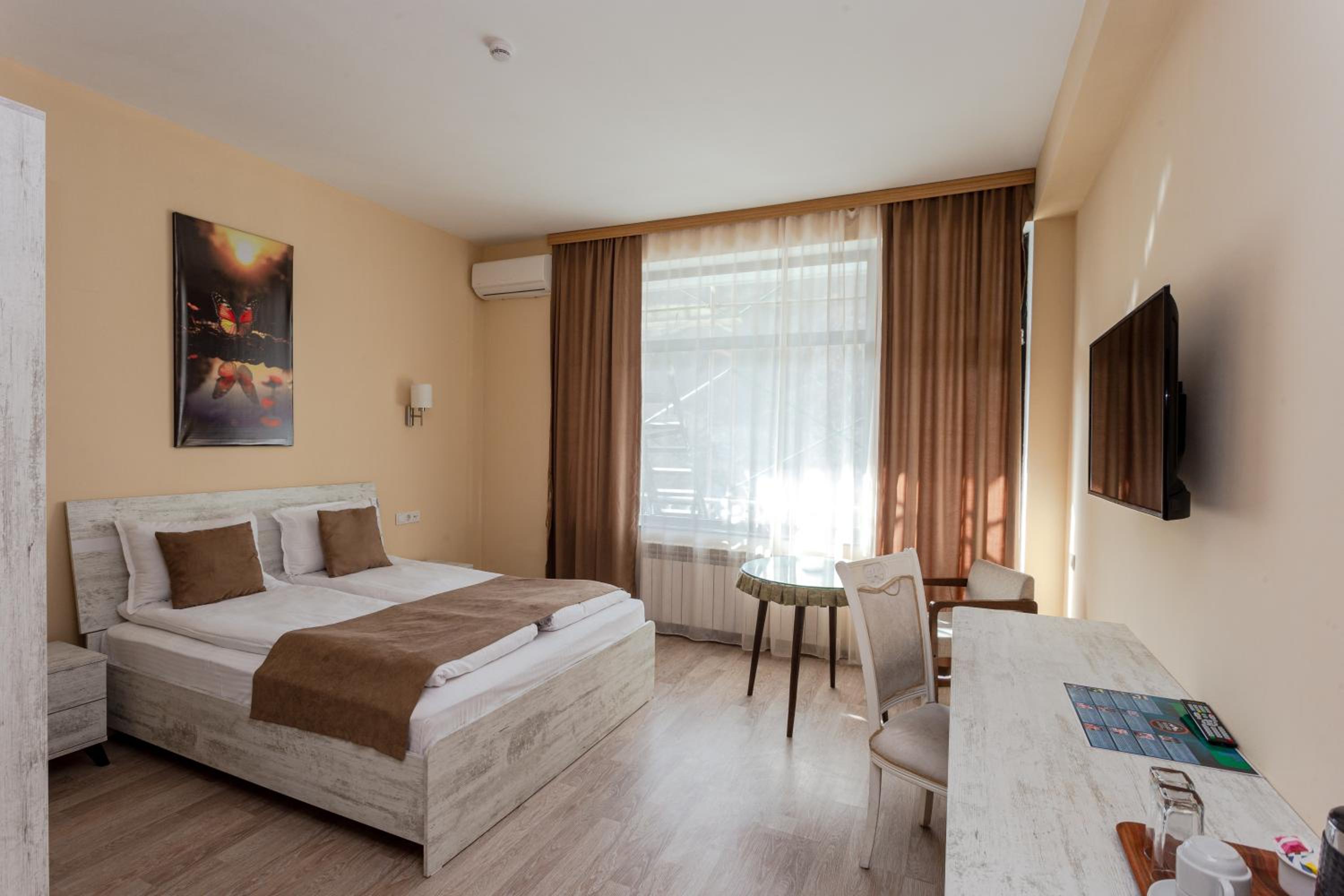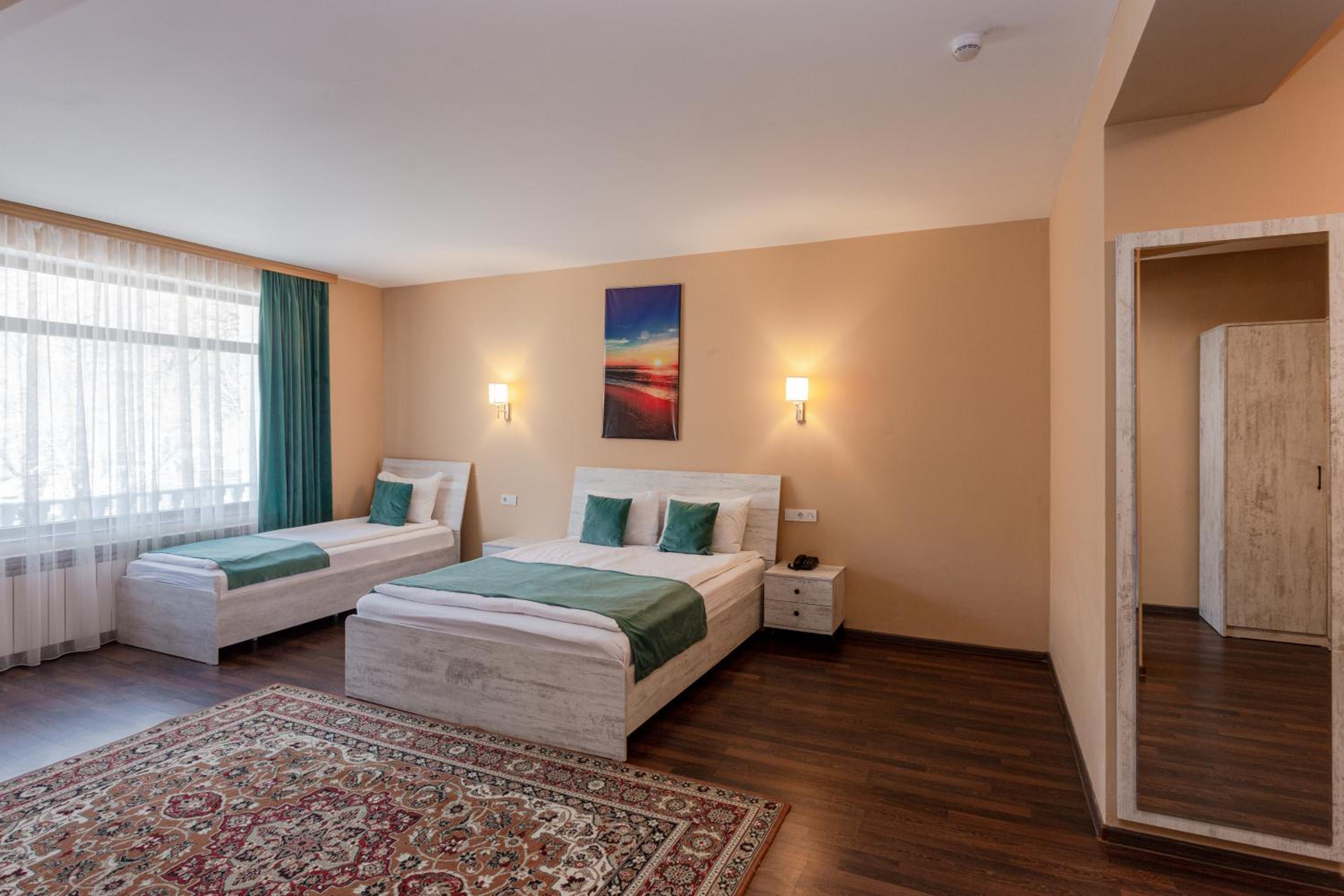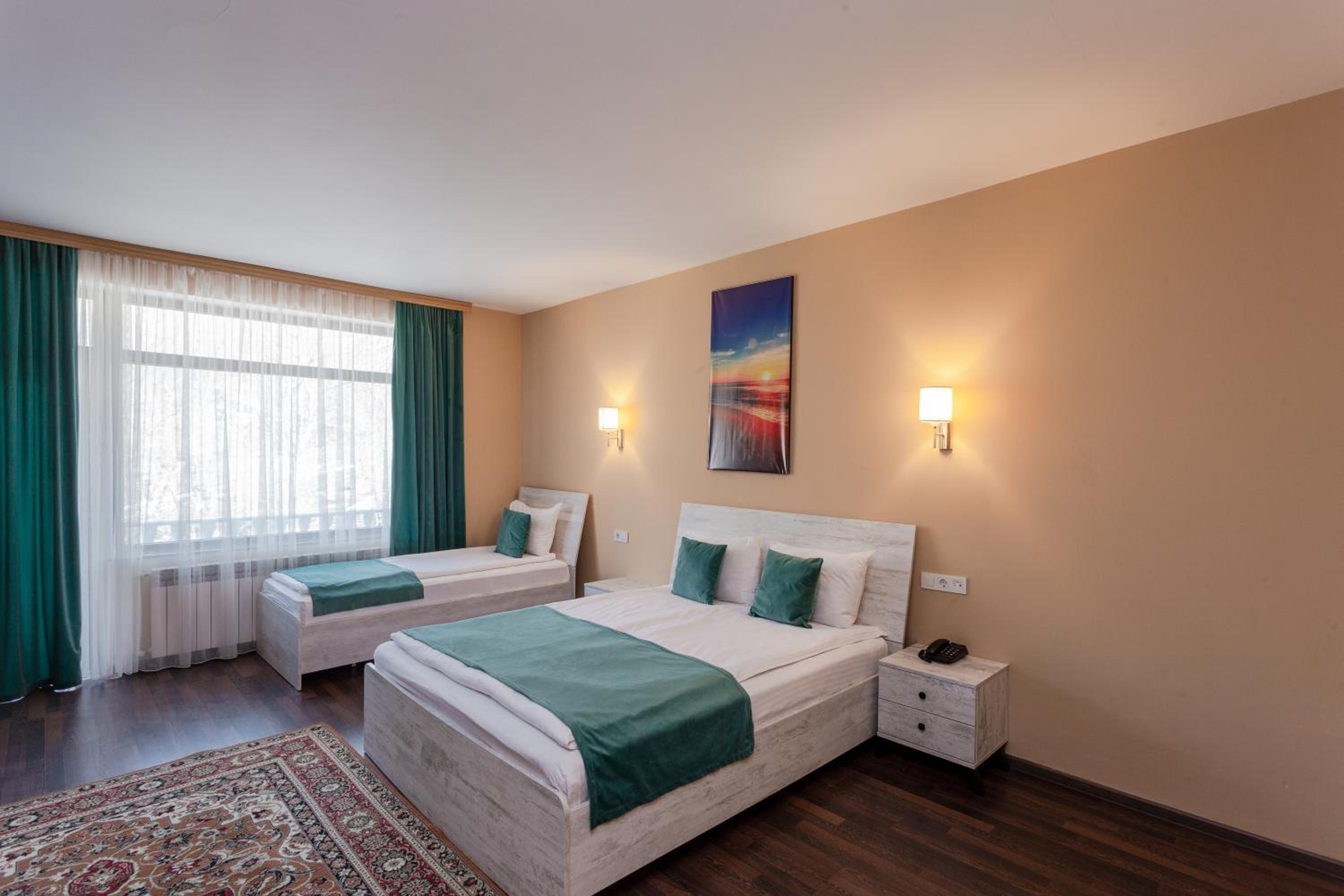 Классный отель за городом. Можно расслабиться под шум горной речки. Есть бесплатное посещение сауны и бассейна. Номер был просто огромным да еще и с балконом. Парковка достаточно вместительная. Персонал приветливый, говорят на разных языках. Отличный завтрак.