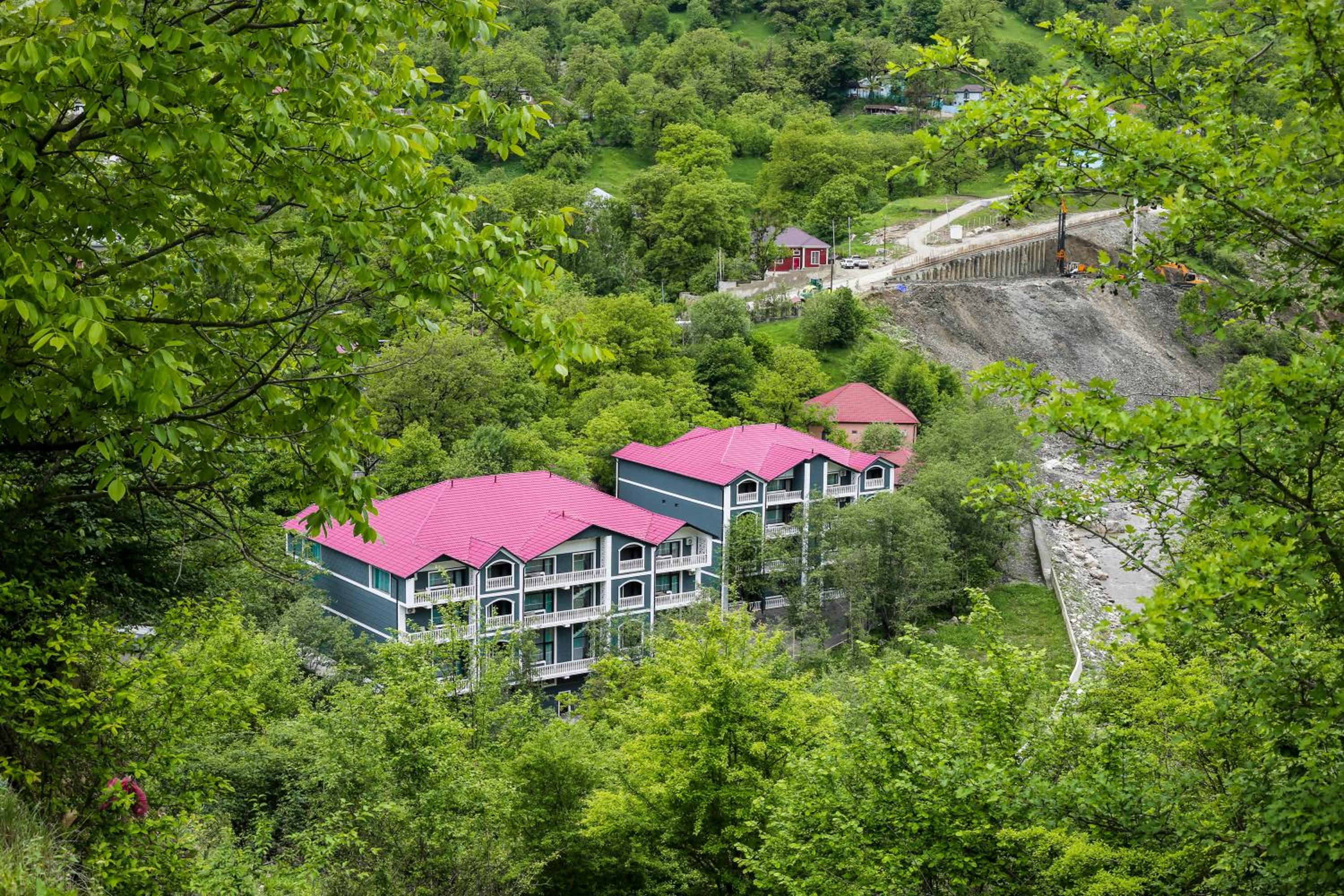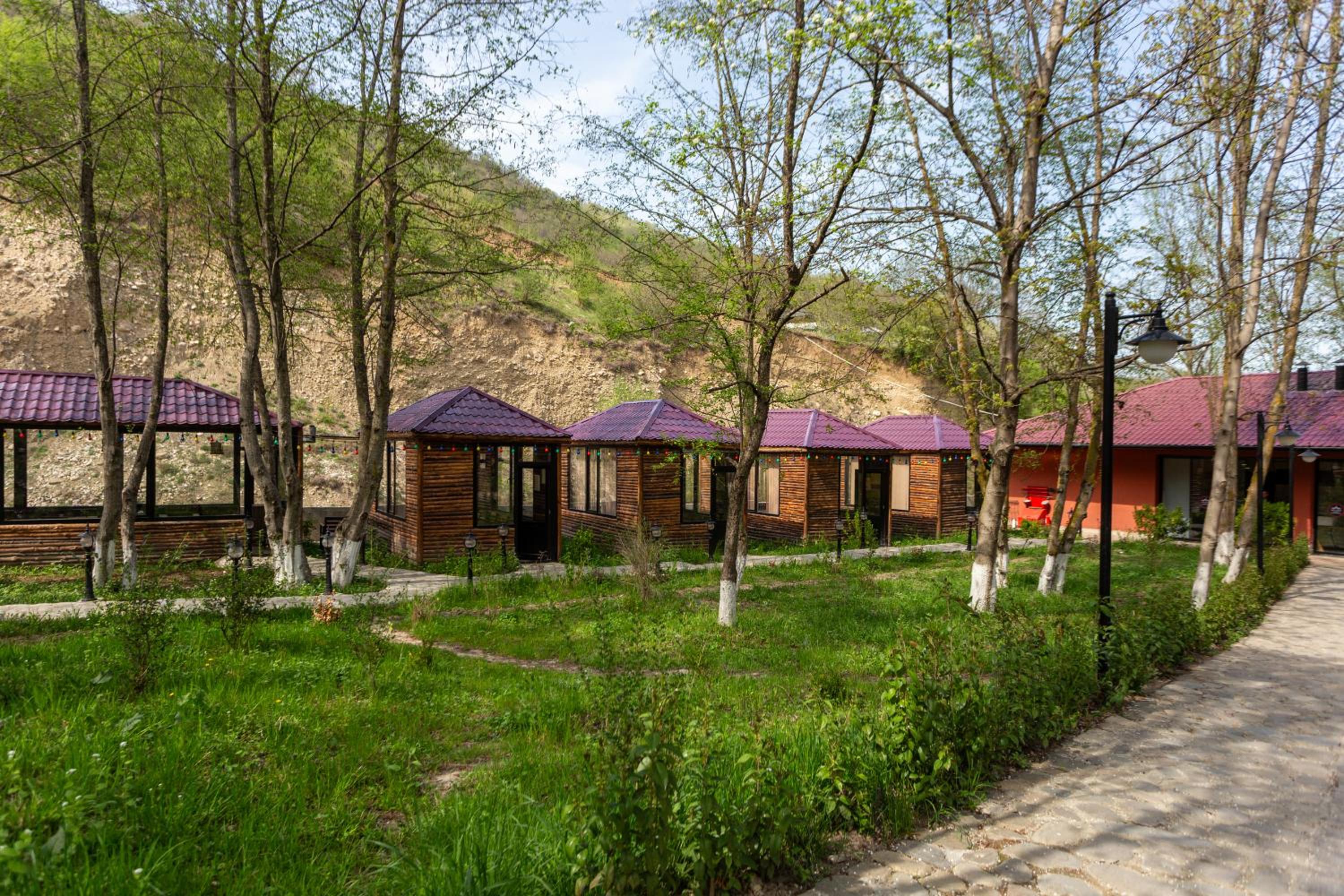 الموقع من مجرى السيل والفندق من الداخل والخارج على شكل كوخ رووووعه