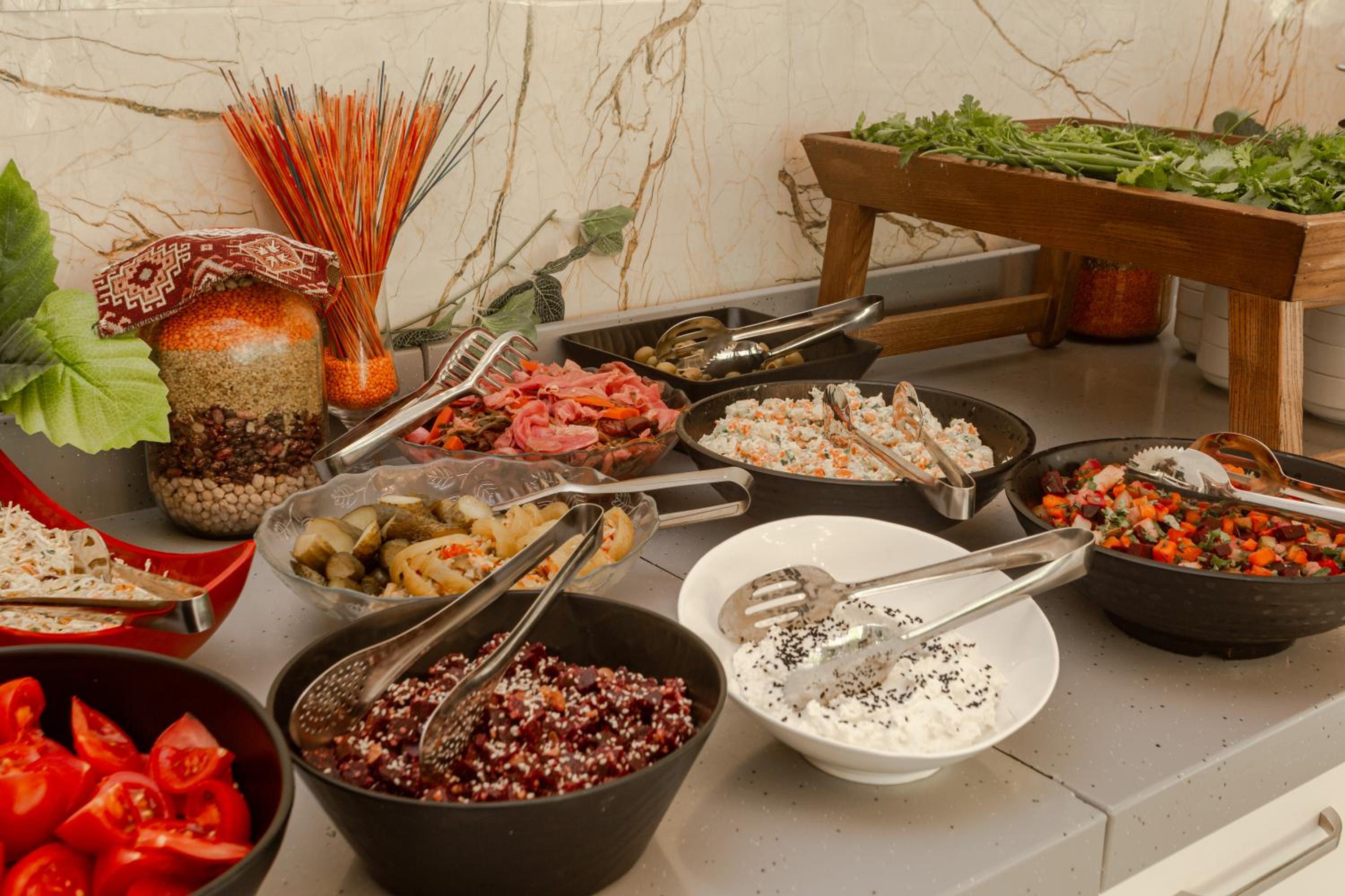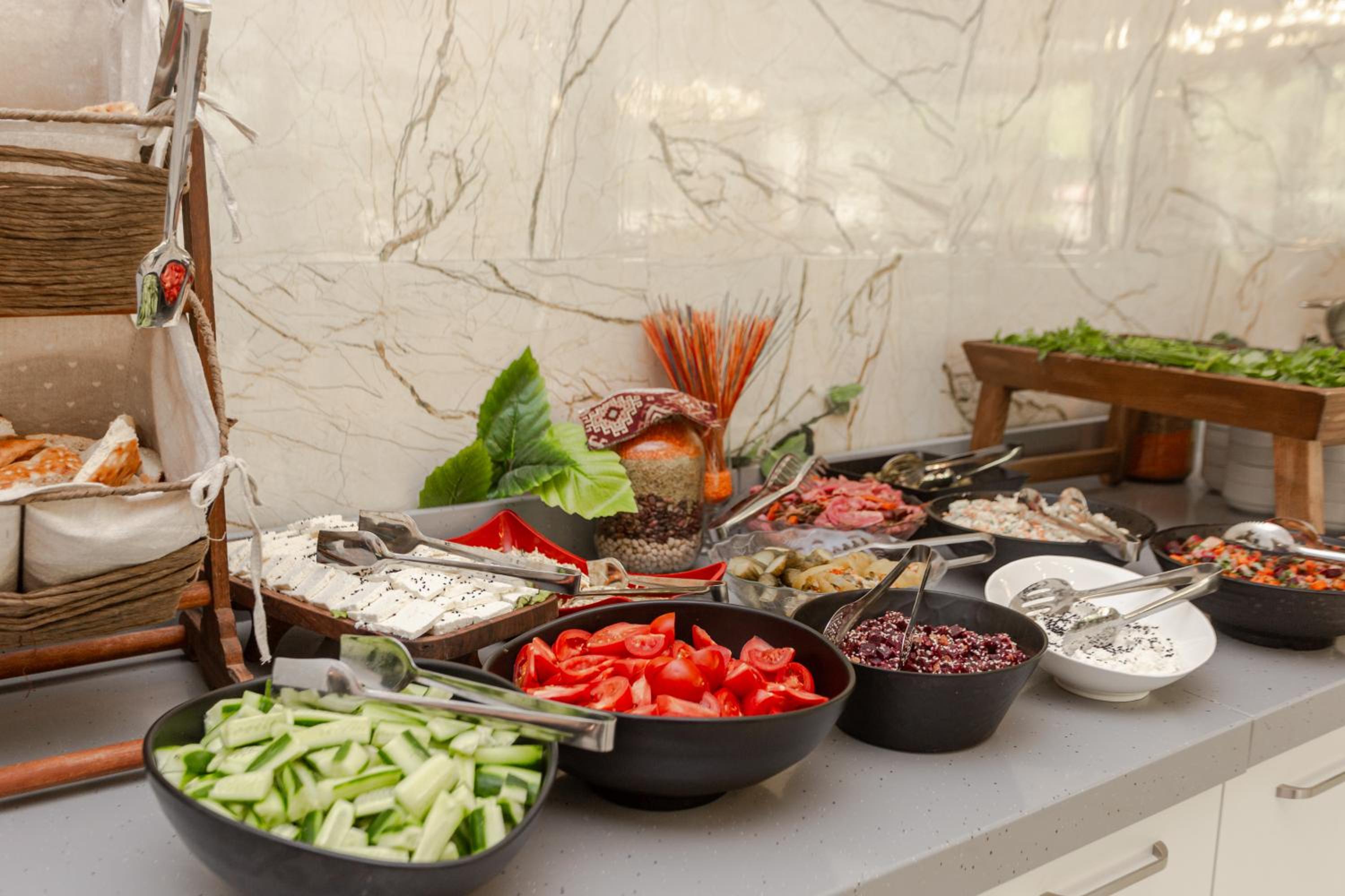 Indulge in Mediterranean, Middle Eastern, and Seafood delights at the on-site restaurant, with special dietary options available.