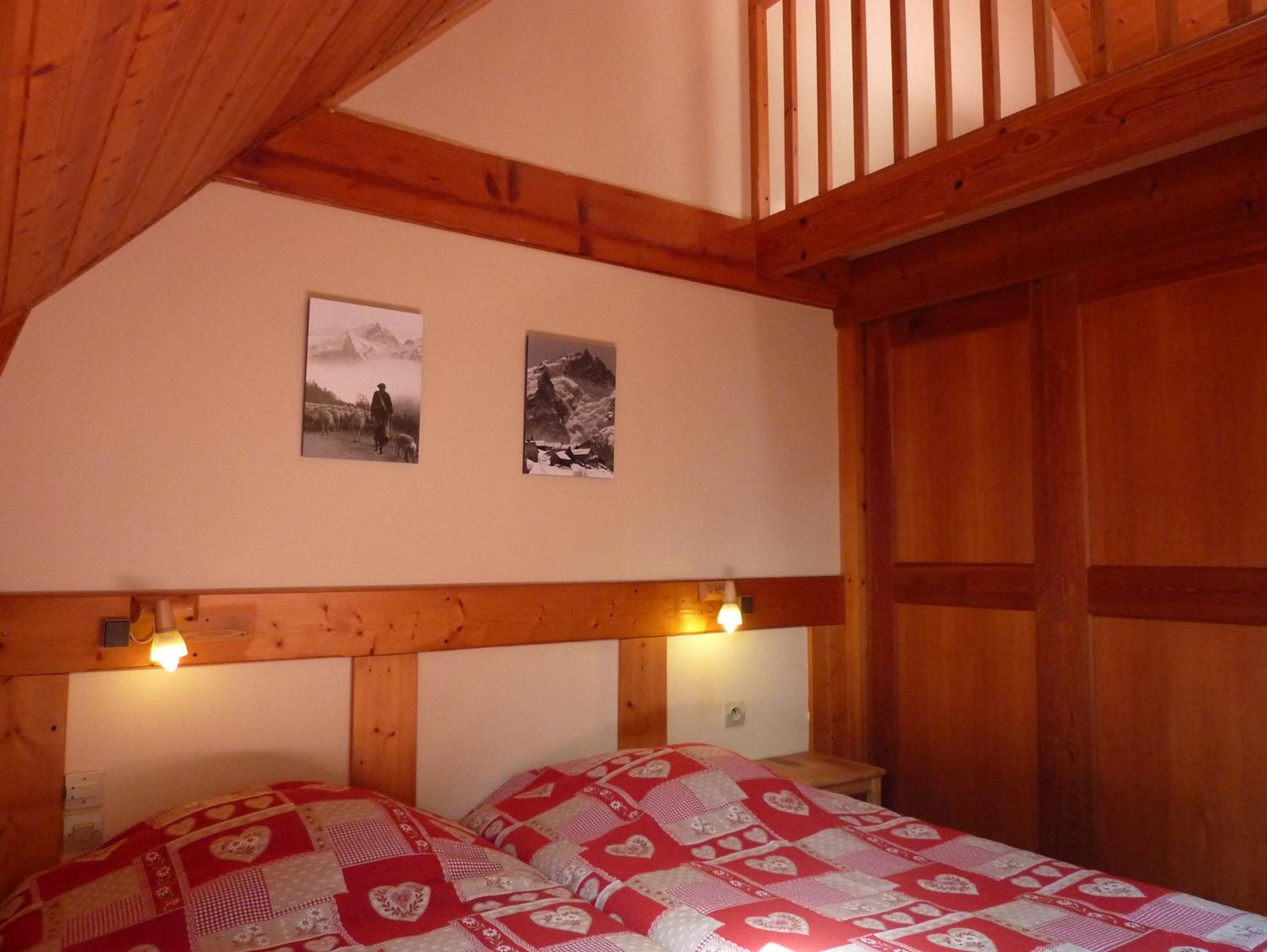 Hotel Auberge Edelweiss offers rooms with stunning mountain views and a cozy chalet-inspired decor, providing a truly immersive alpine experience. The rooms are accessed via a charming staircase and equipped with modern amenities like a flat-screen TV and a desk.