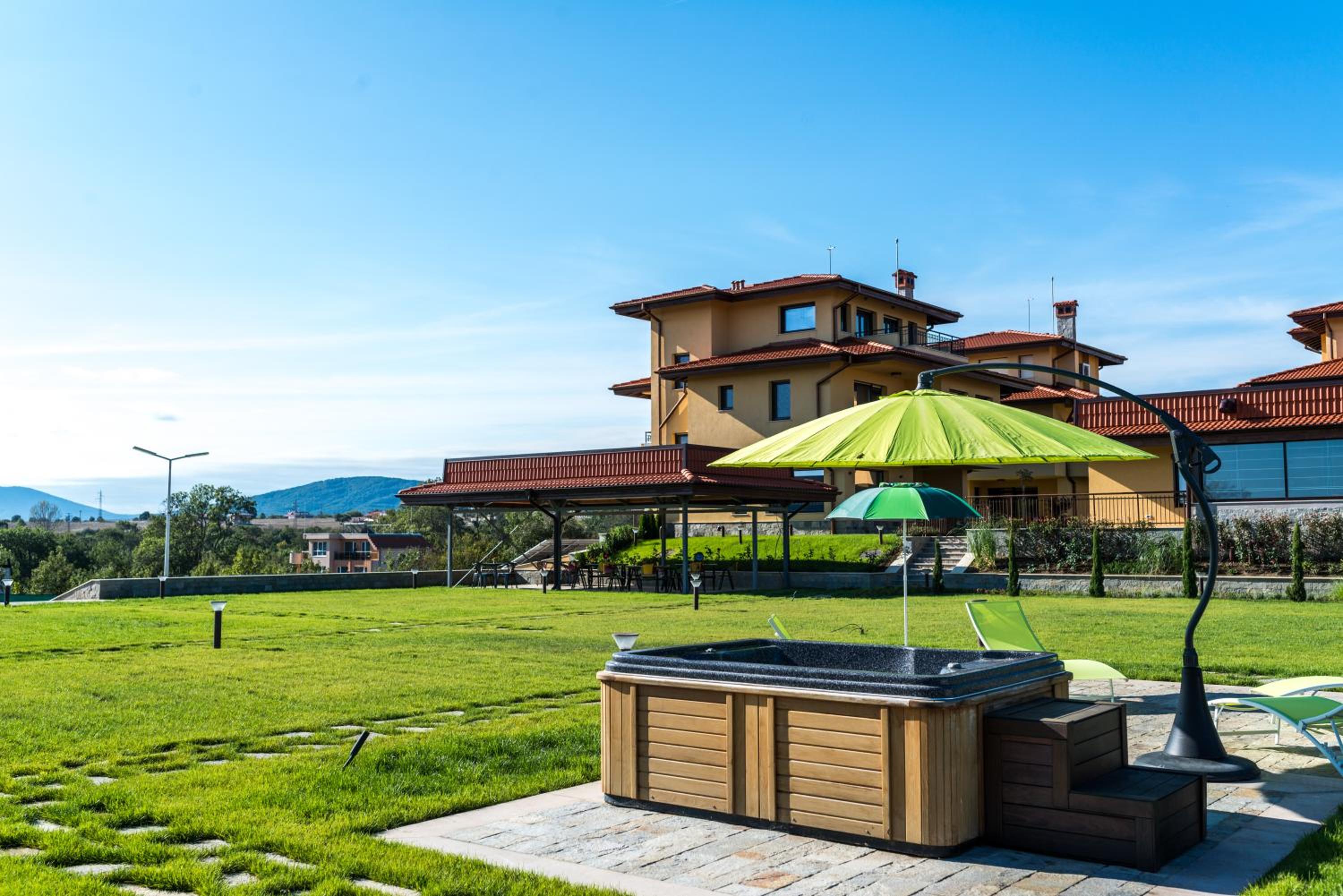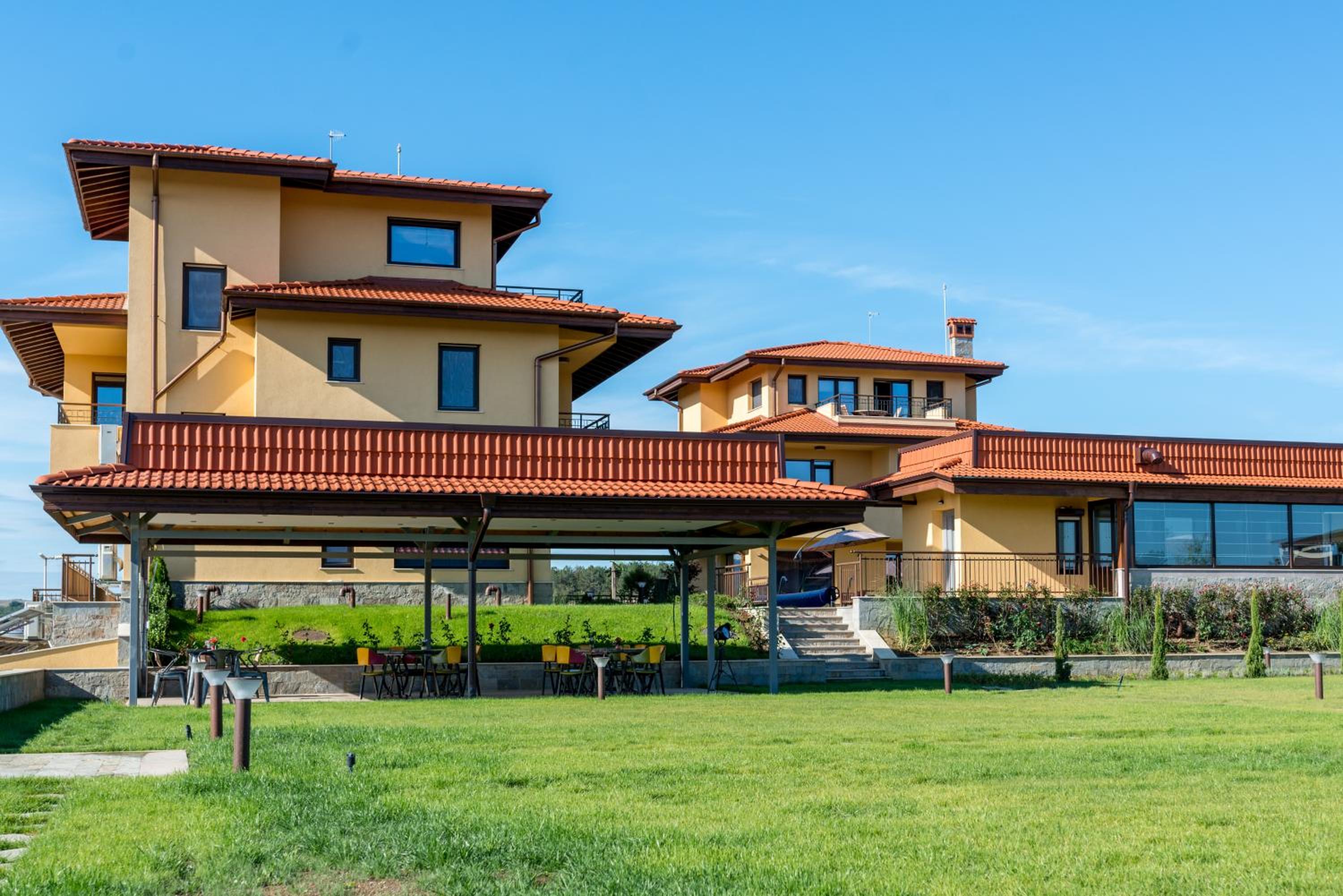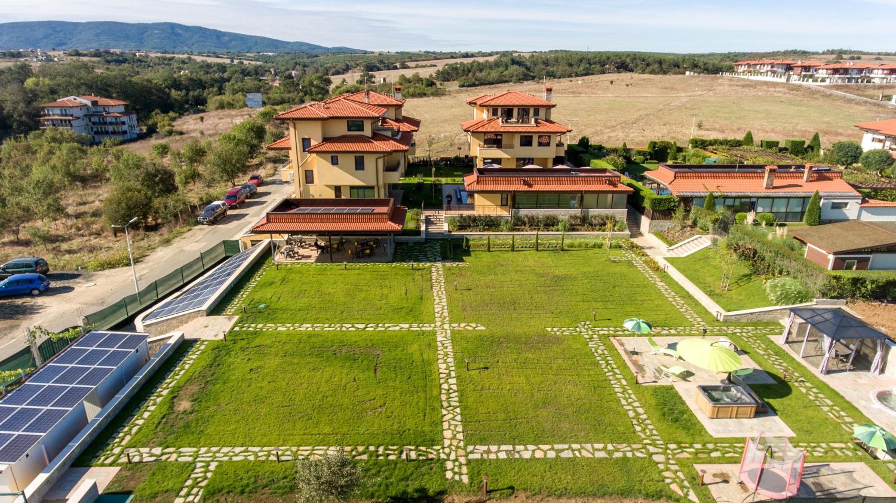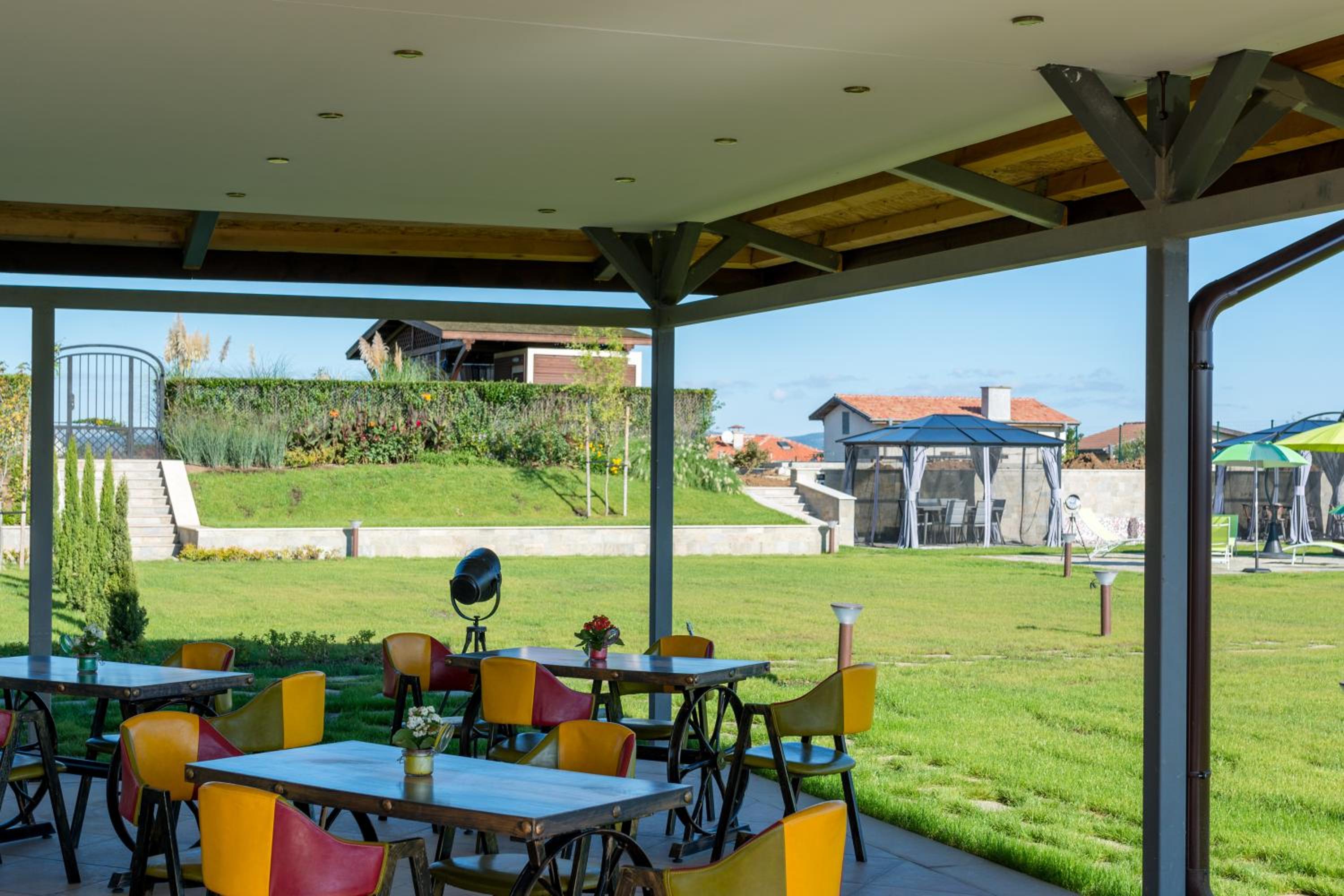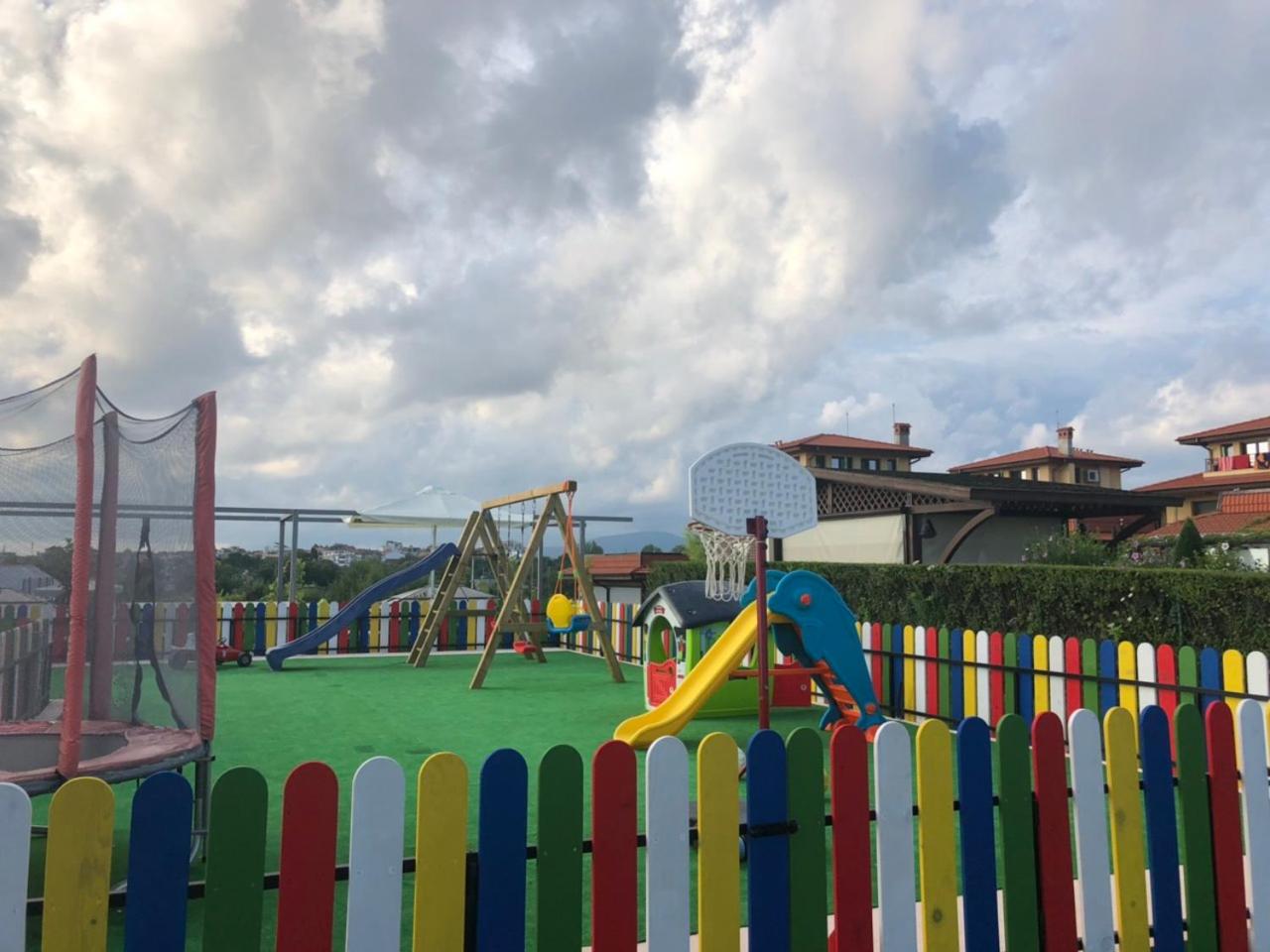 Чудно място! За деца е идеално, има площадка, басейн, игрище, батут, поляна за игра, плажовете са наблизо, има закуска, има какво да се хапне и на обяд, ако не ви се разхожда до селото (въпреки че най-близкият ресторант е на не повече 5 мин).