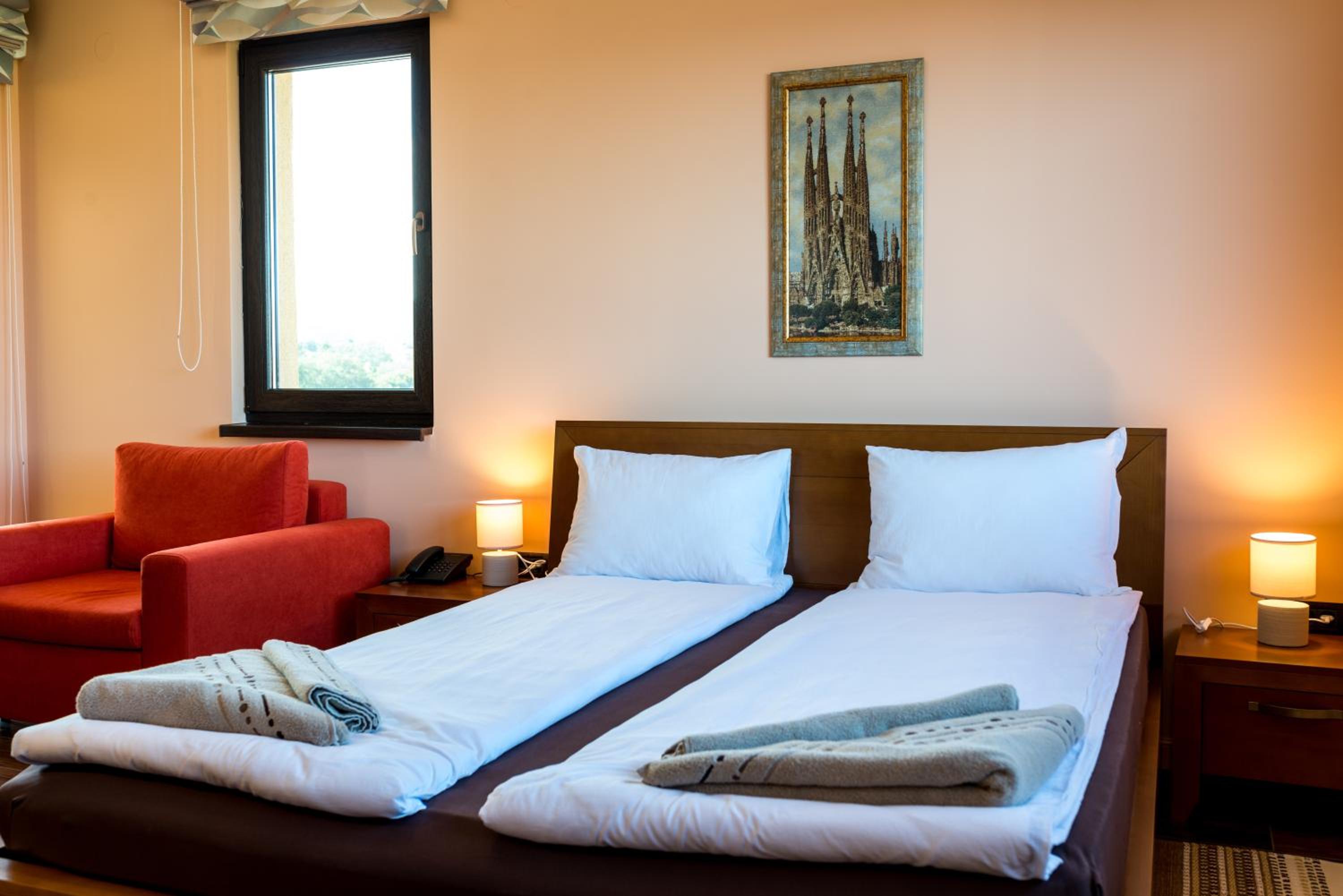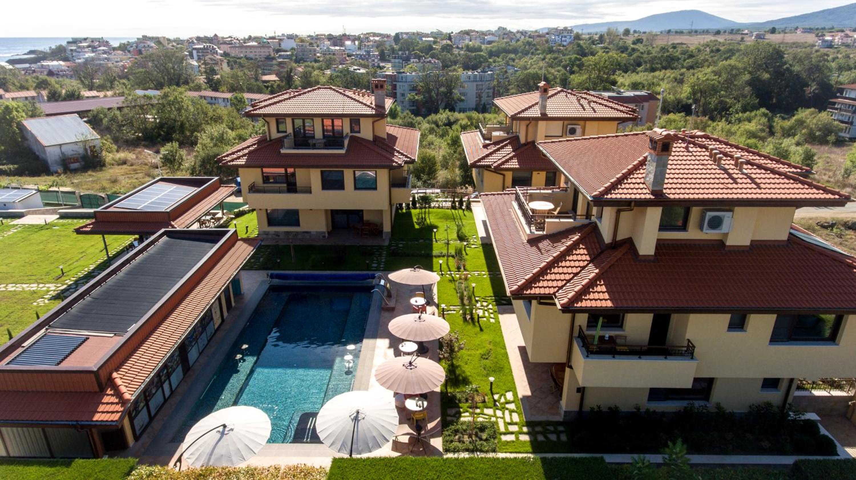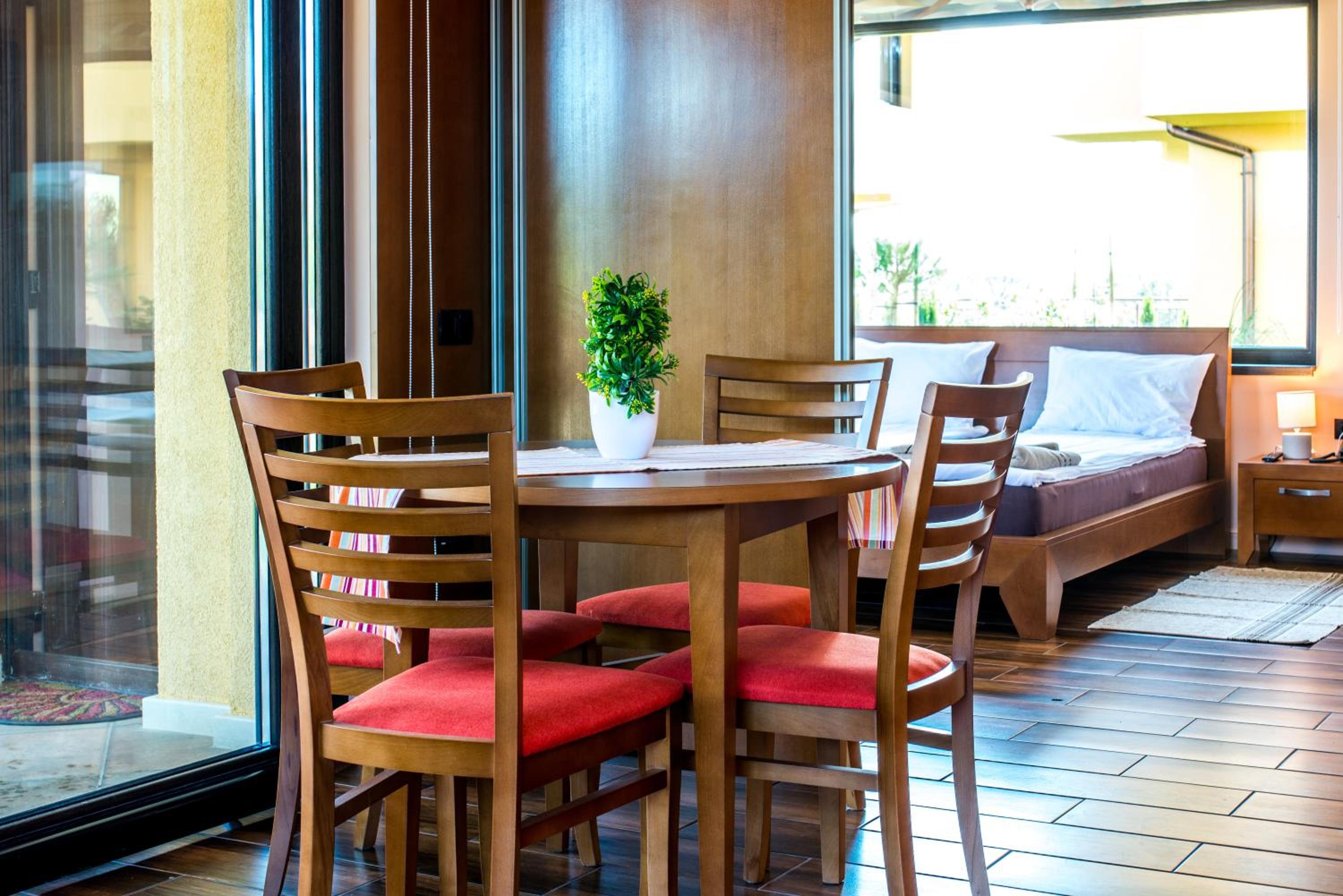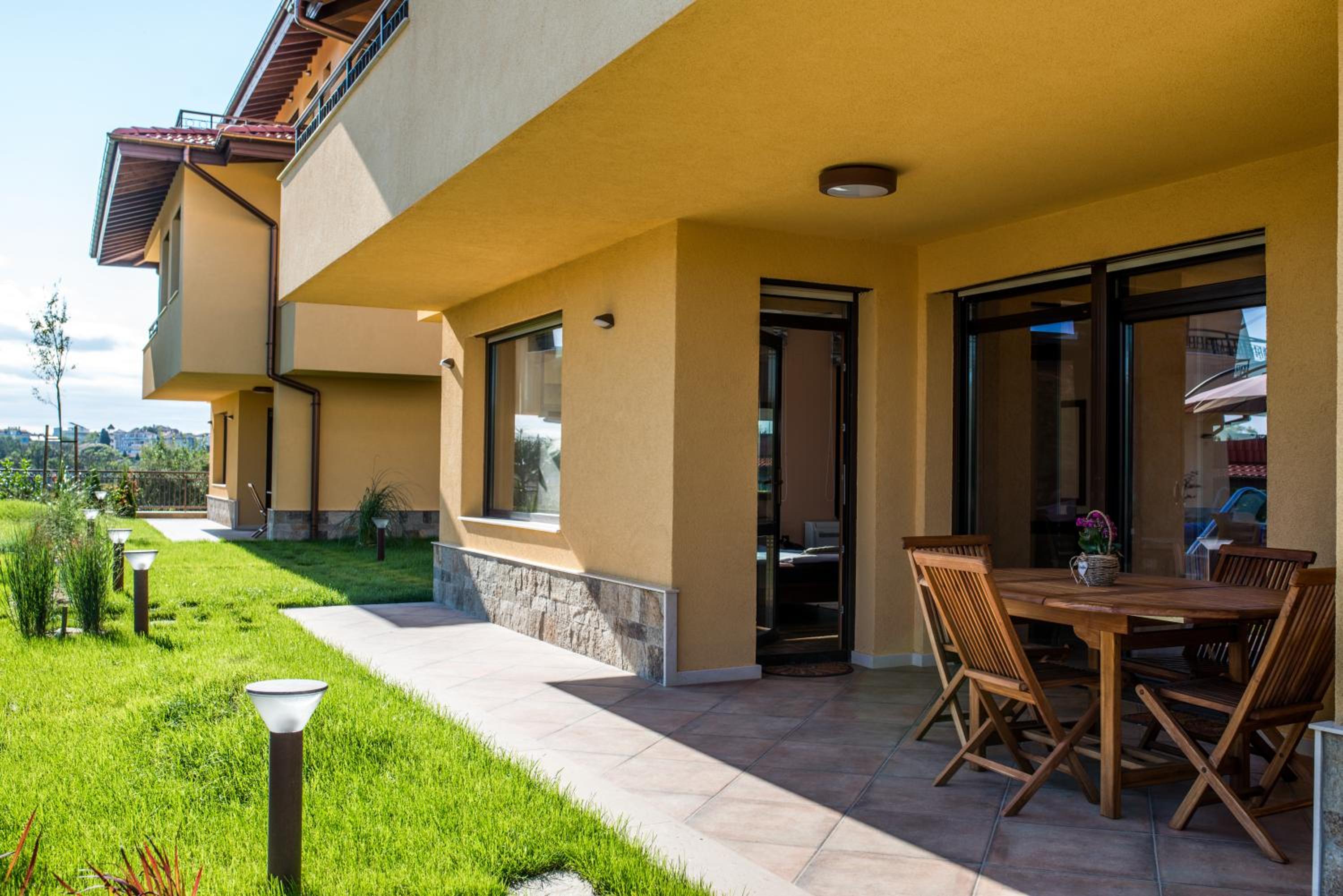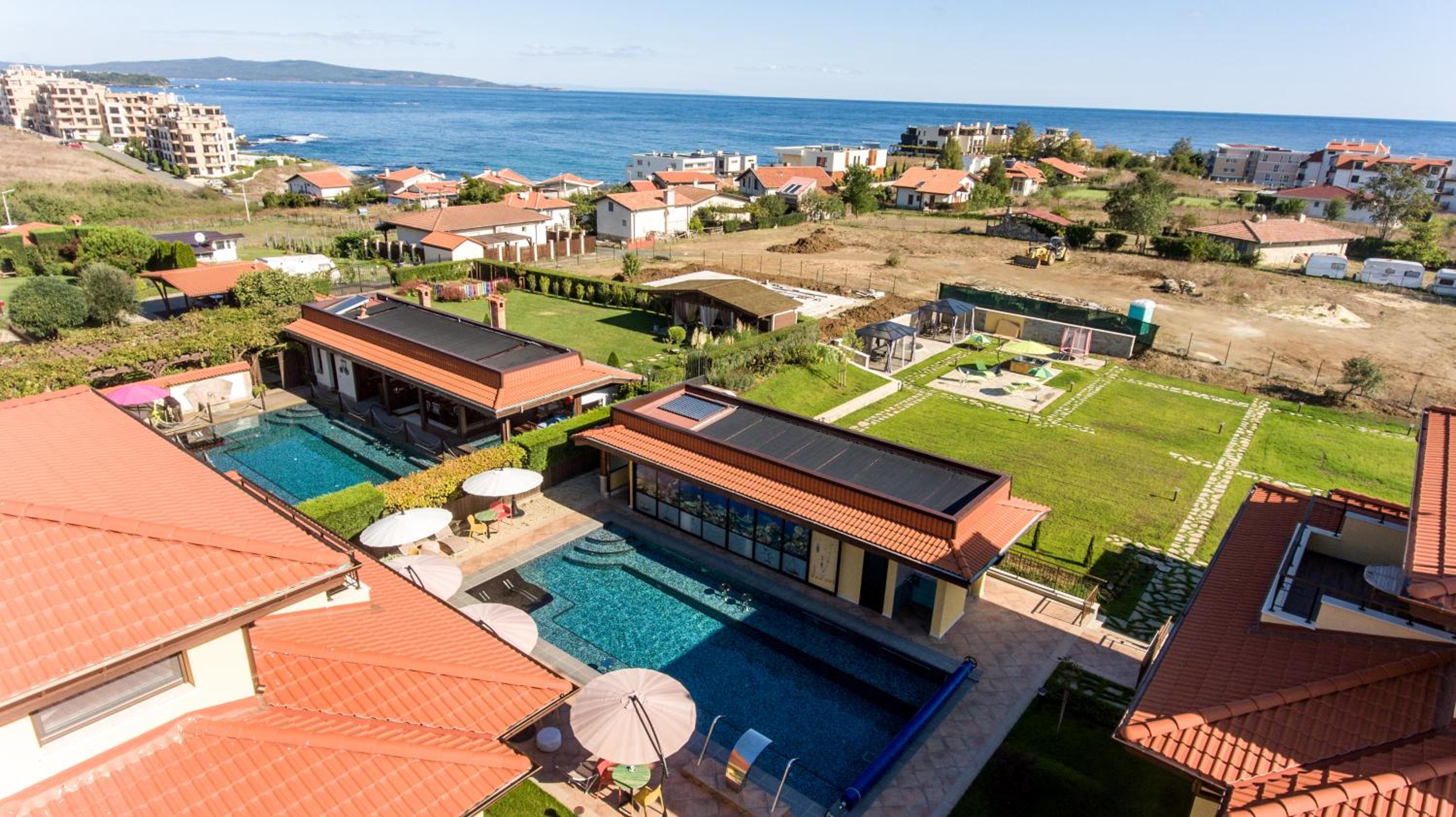 Чудно място! За деца е идеално, има площадка, басейн, игрище, батут, поляна за игра, плажовете са наблизо, има закуска, има какво да се хапне и на обяд, ако не ви се разхожда до селото (въпреки че най-близкият ресторант е на не повече 5 мин).
