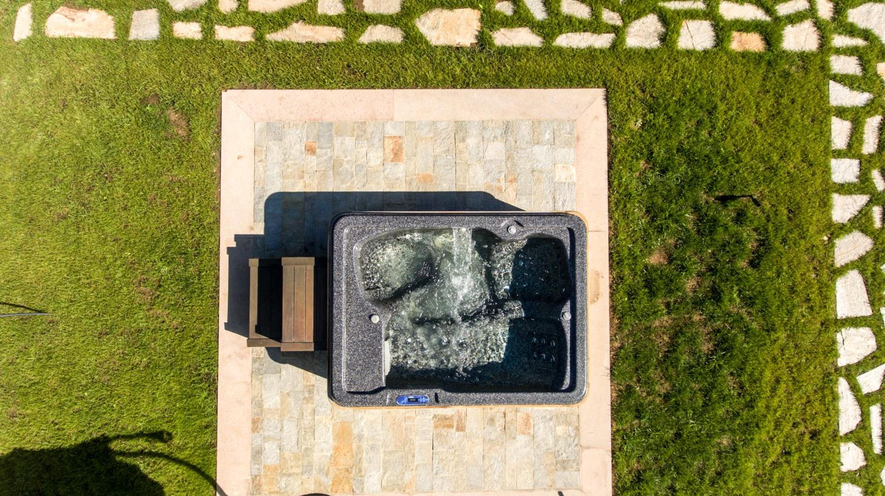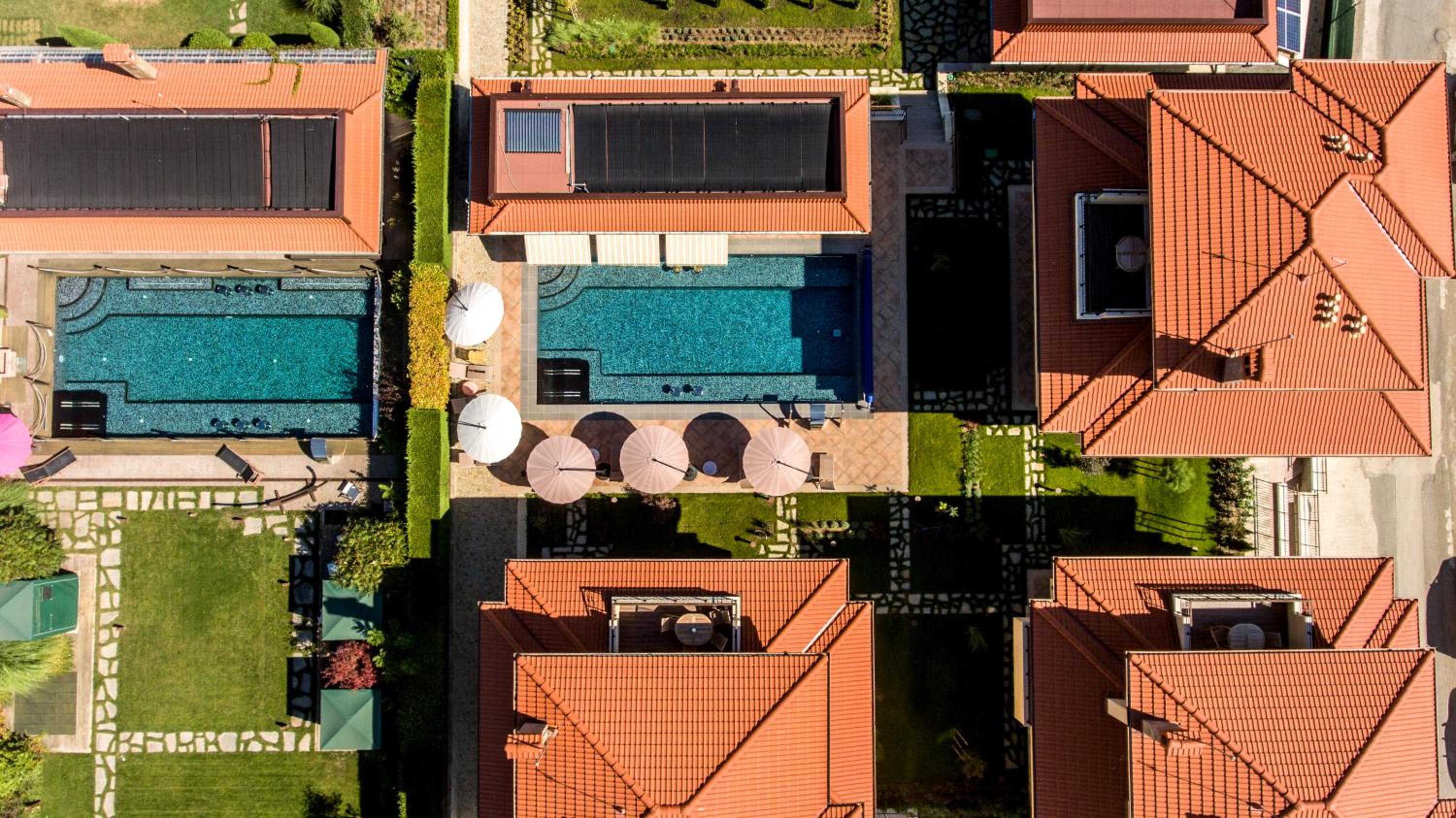 The pool, the garden.
