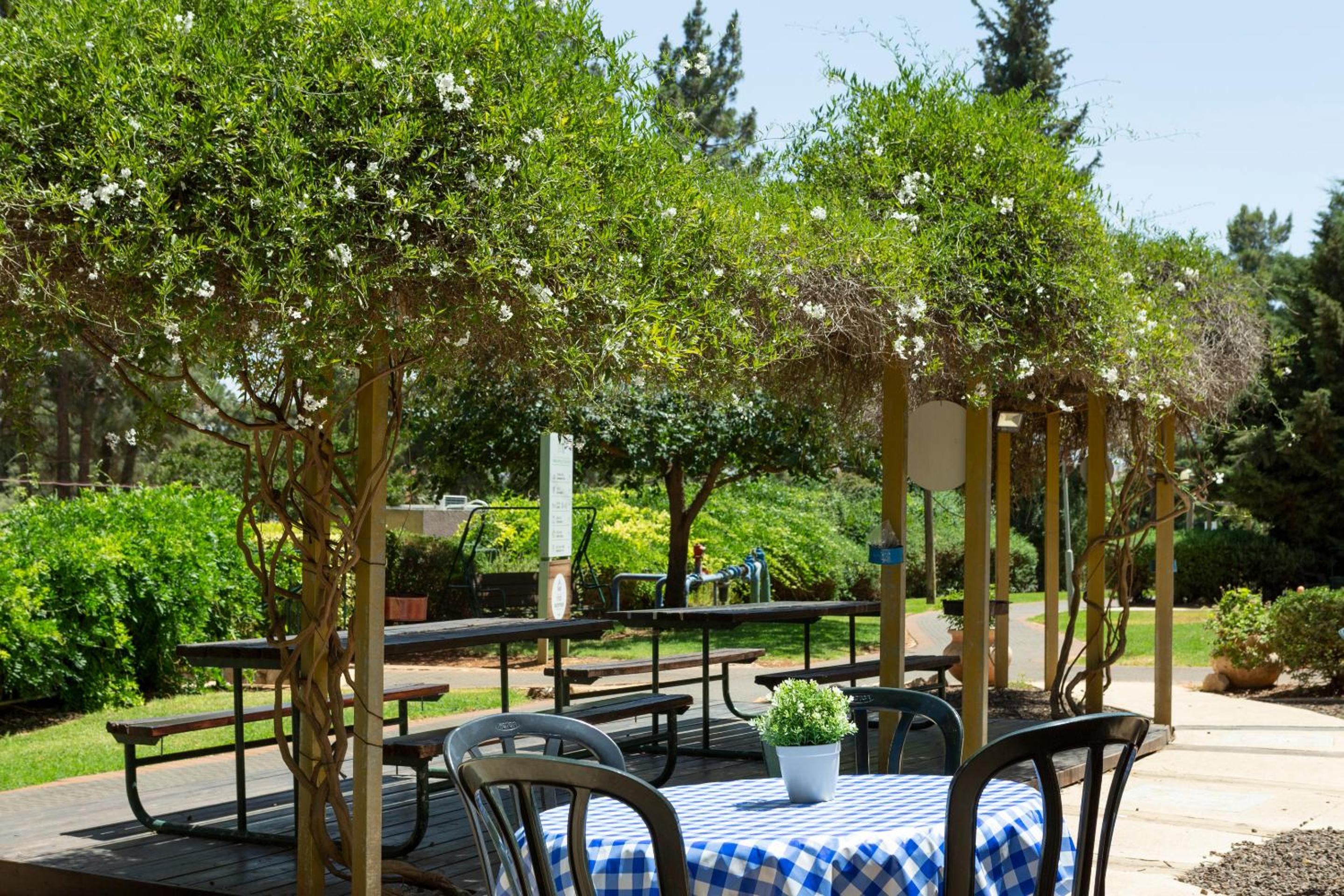 Indulge in a delicious Israeli breakfast buffet each morning, relax by the summer swimming pool, or have a BBQ in the garden. With a children's playground, petting zoo, and sports courts, there's something for everyone at Kibbutz Malkiya.