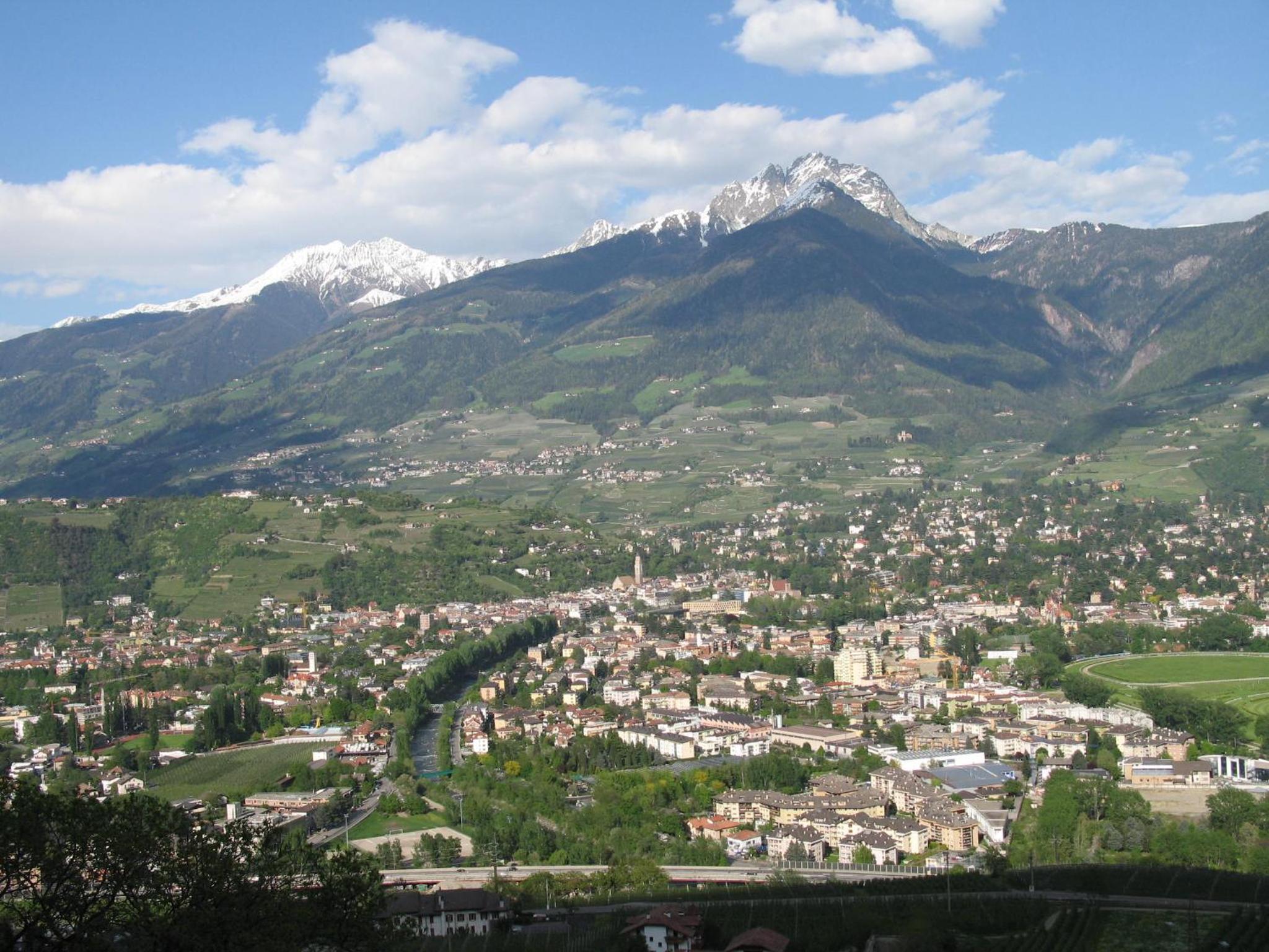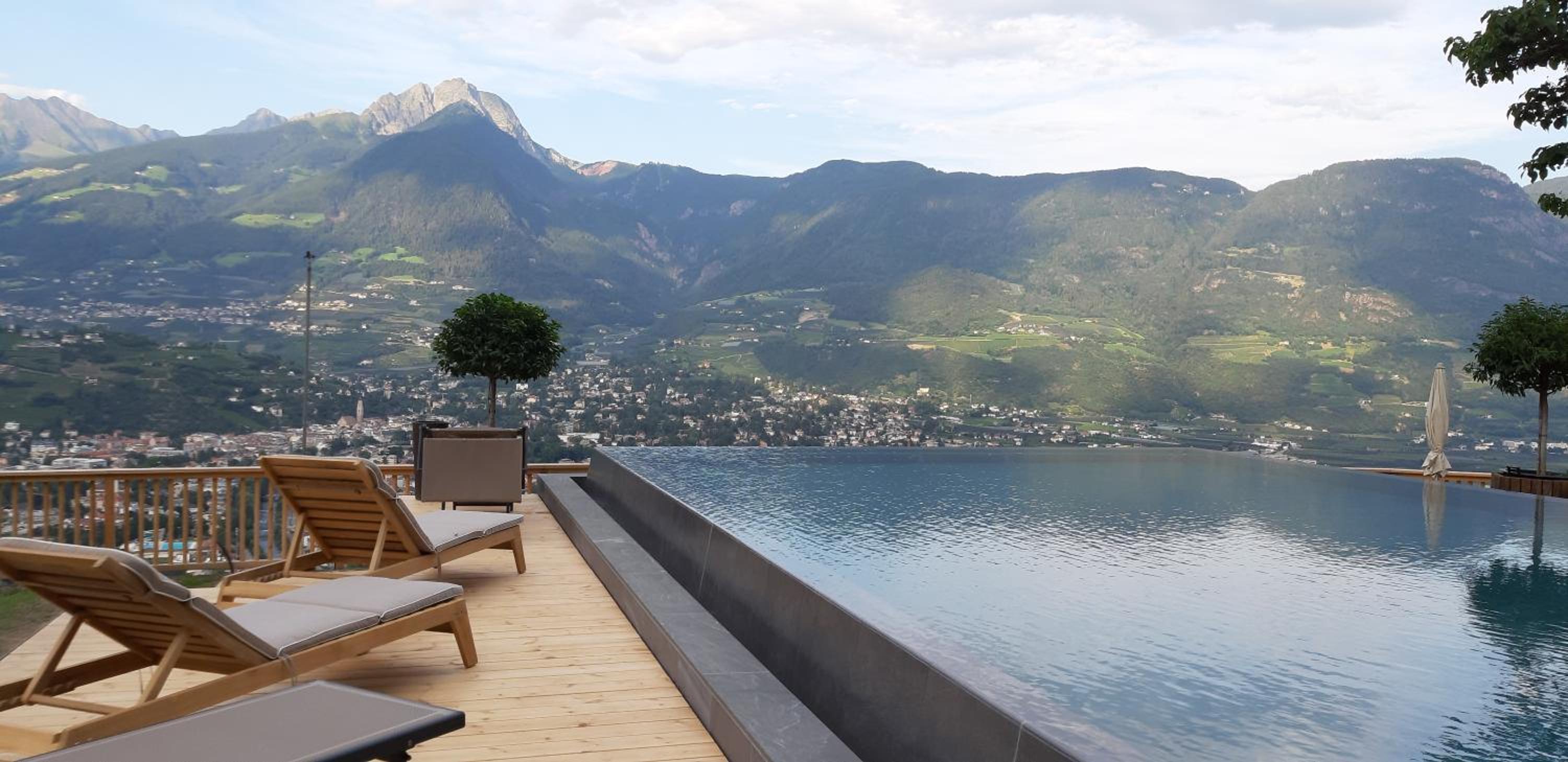 Sehr große Terrasse mit Panoramablick! Wir hatten einen weiten Blick auf die Berge und auf Meran, es war jeden Morgen wieder eine Freude, mit dem Ausblick das Frühstück einzunehmen. Wunderbar!