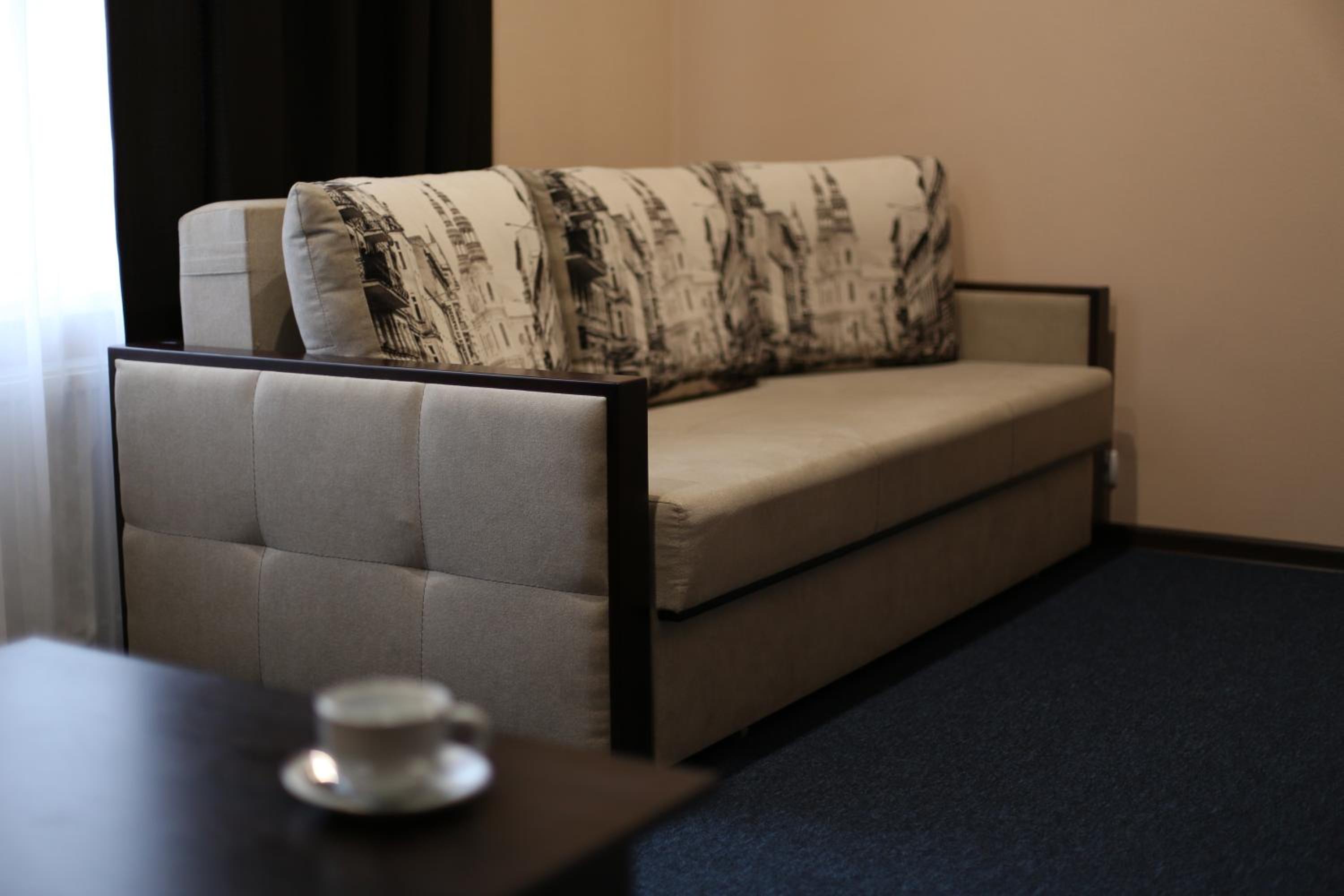 Готель "Палац" in Okhtyrka offers air-conditioned rooms with free WiFi and private bathrooms, ensuring a comfortable stay for all guests. Each room is equipped with modern amenities including a TV, fridge, and free toiletries.