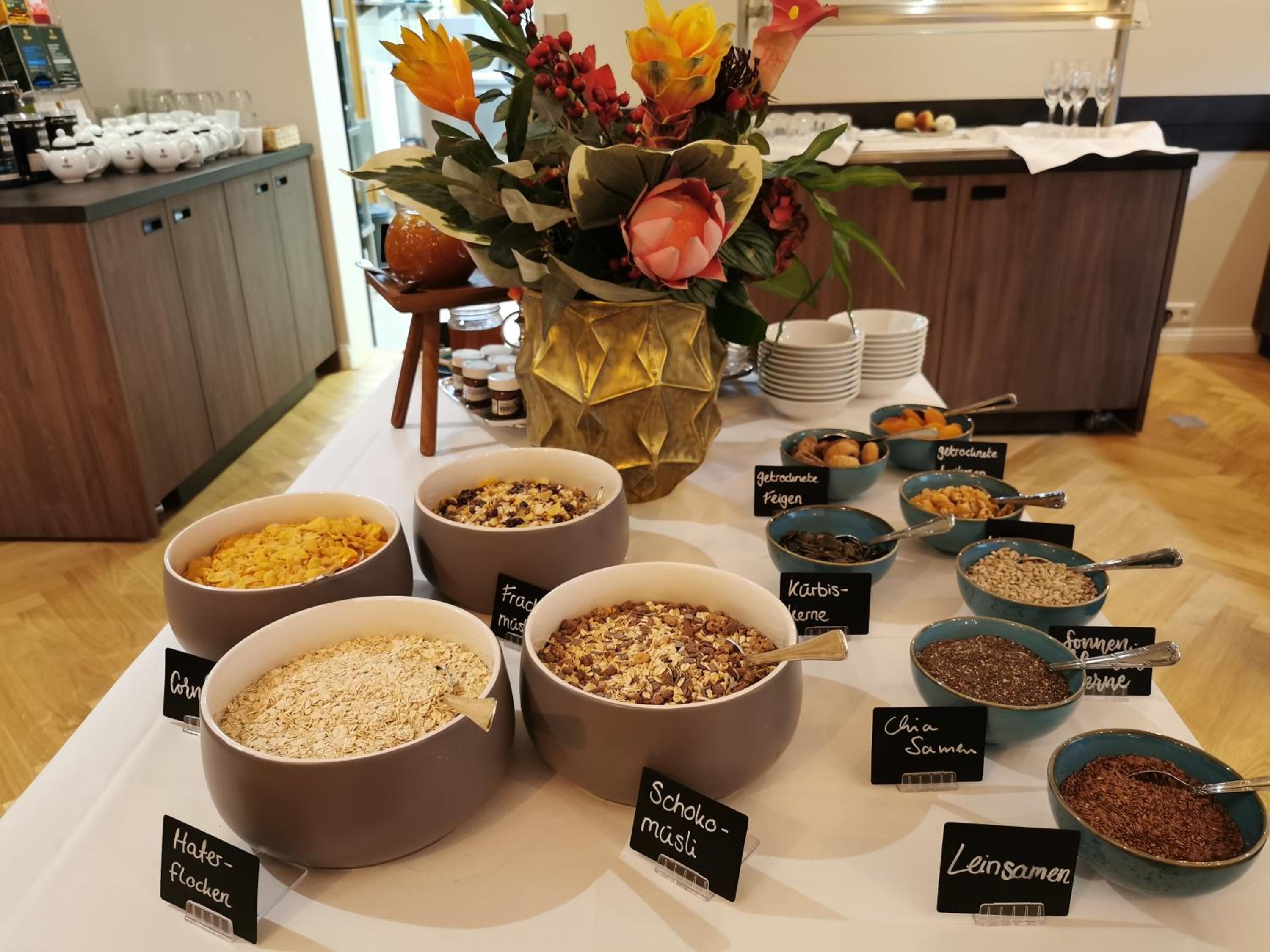 Das Frühstück war sehr übersichtlich und sehr speziell. Es gab nur gesalzene Butter, keine normale Butter, kein Frischkäse und auch kein Quark. Wir haben um 9:30 Uhr am Wochenende gefrühstückt und da war doch schon vieles „vergriffen „ und wurde auch nicht mehr nachgelegt. Für 25 €/Person hätte ich in so einem Haus etwas anderes erwartet.