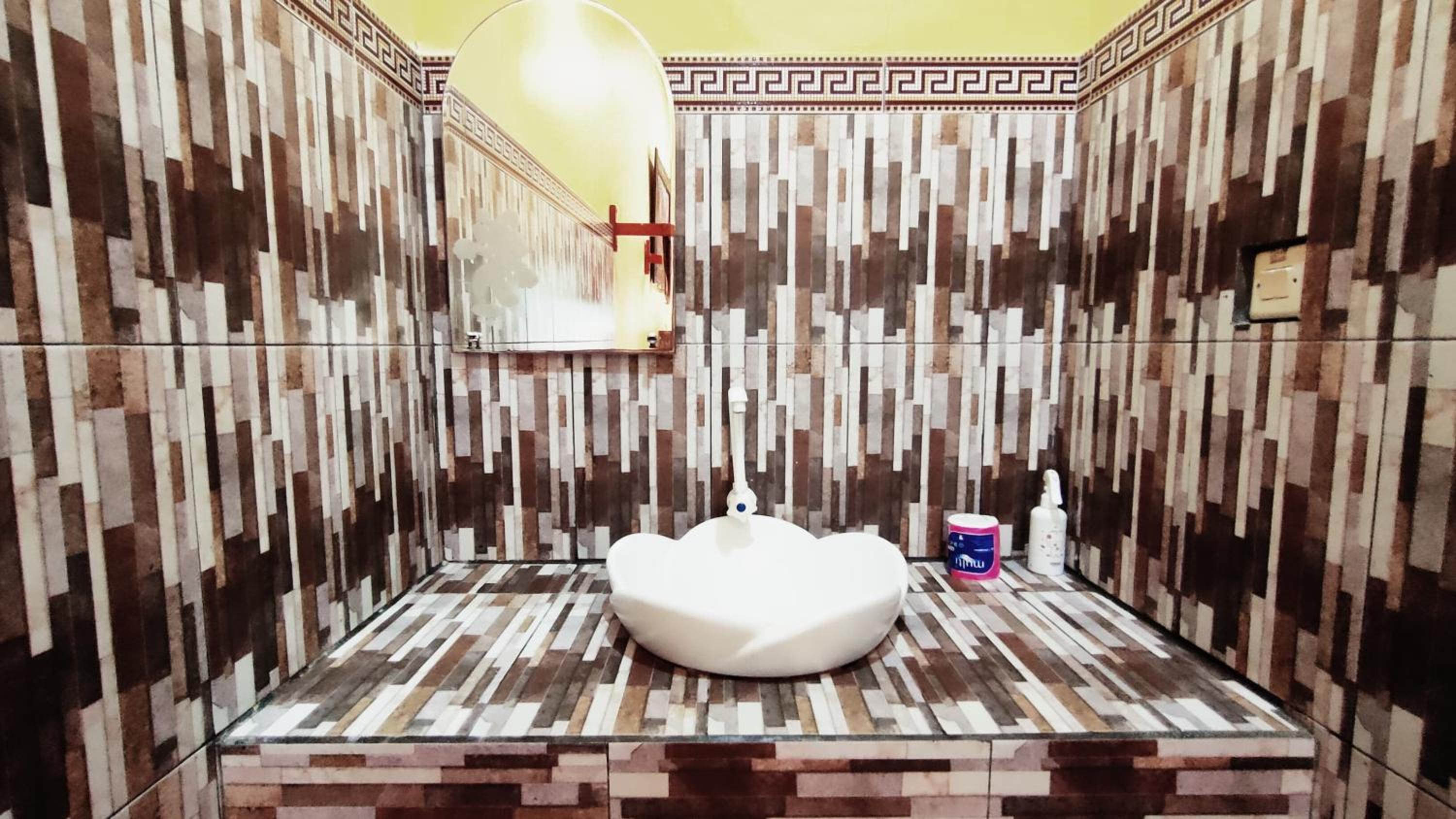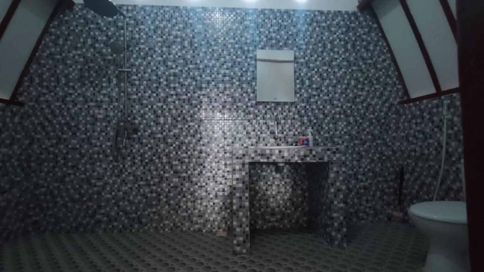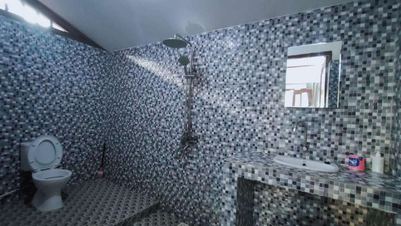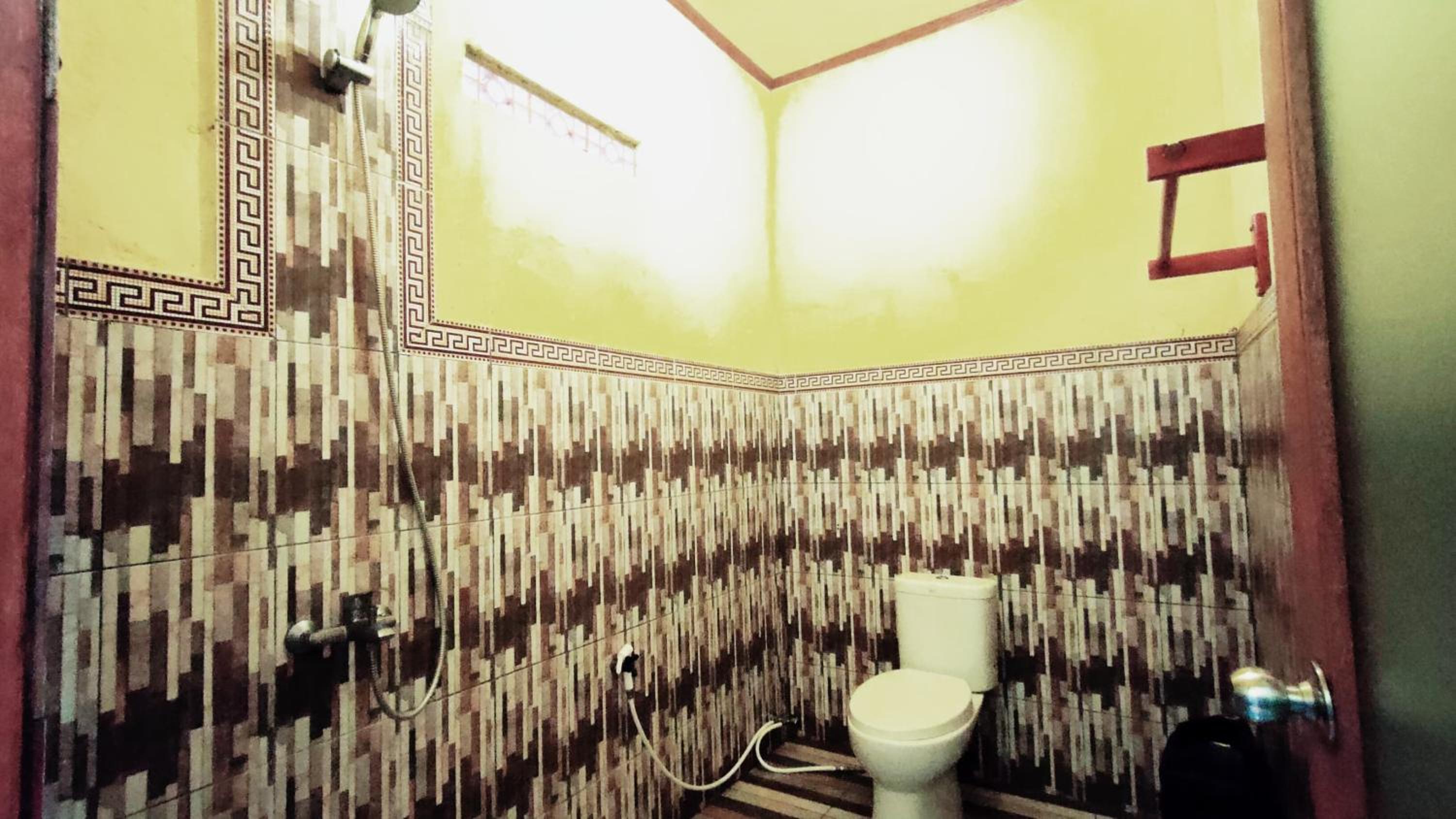 Das Badezimmer war sehr feucht und hatte Schimmel an der Decke und die Toilette ging nicht immer. Wenig Möbel, das Gepäck ist auf dem Boden. Zimmer Nr. 9.