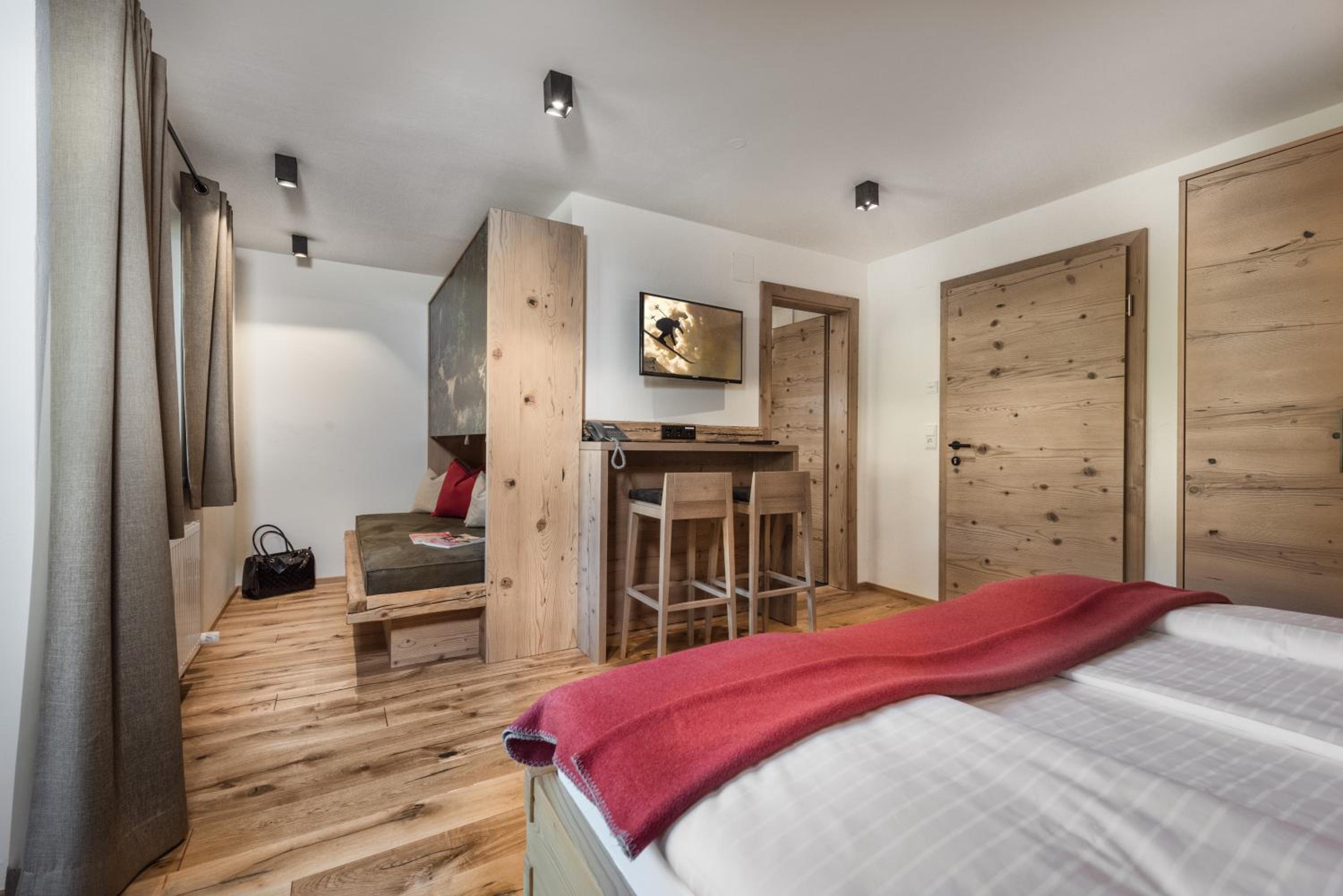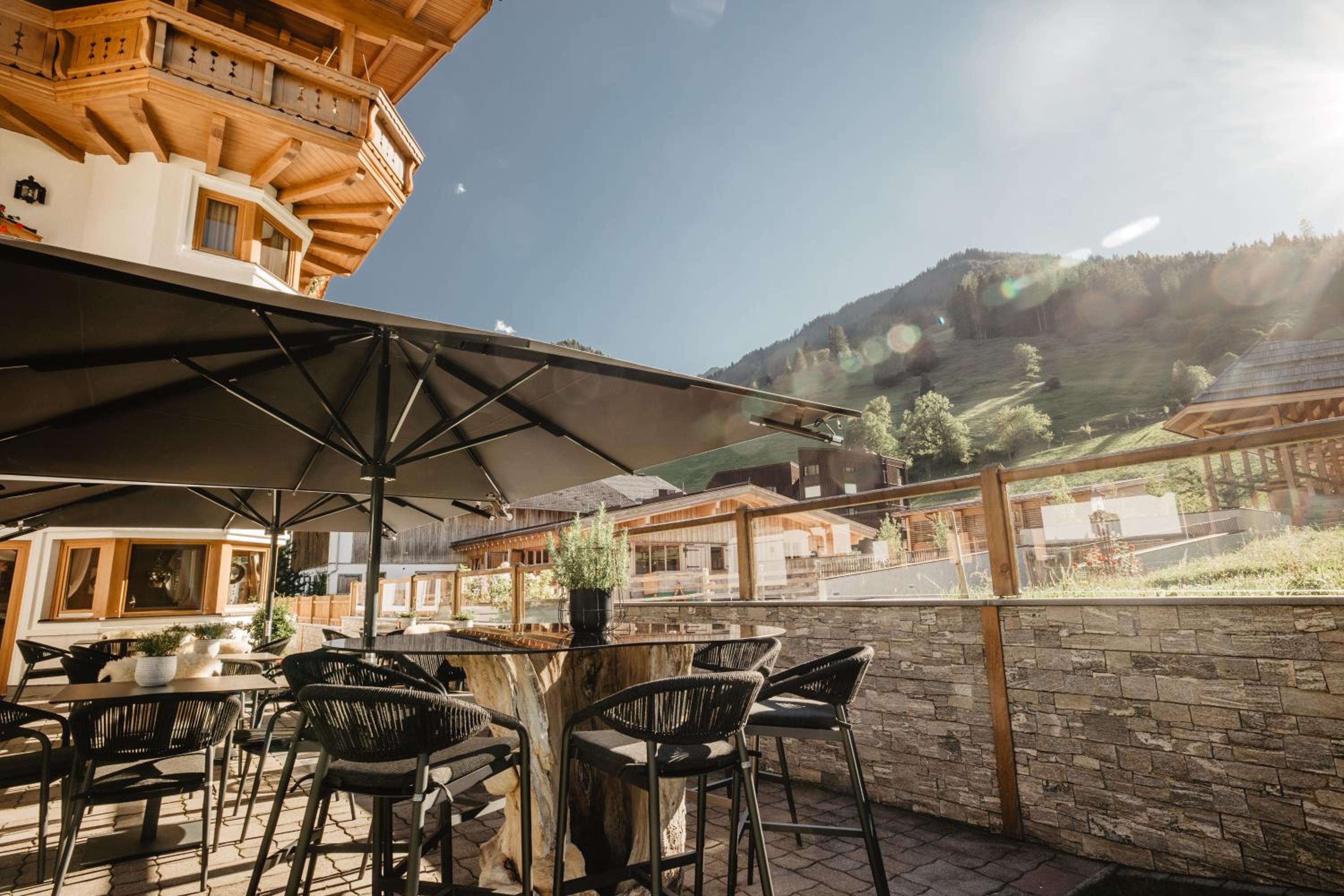 Hotel Alpenhof in Bach offers spacious rooms with Salzburg-style décor, balconies, and cozy seating areas. Guests can unwind in comfort after a day of activities.