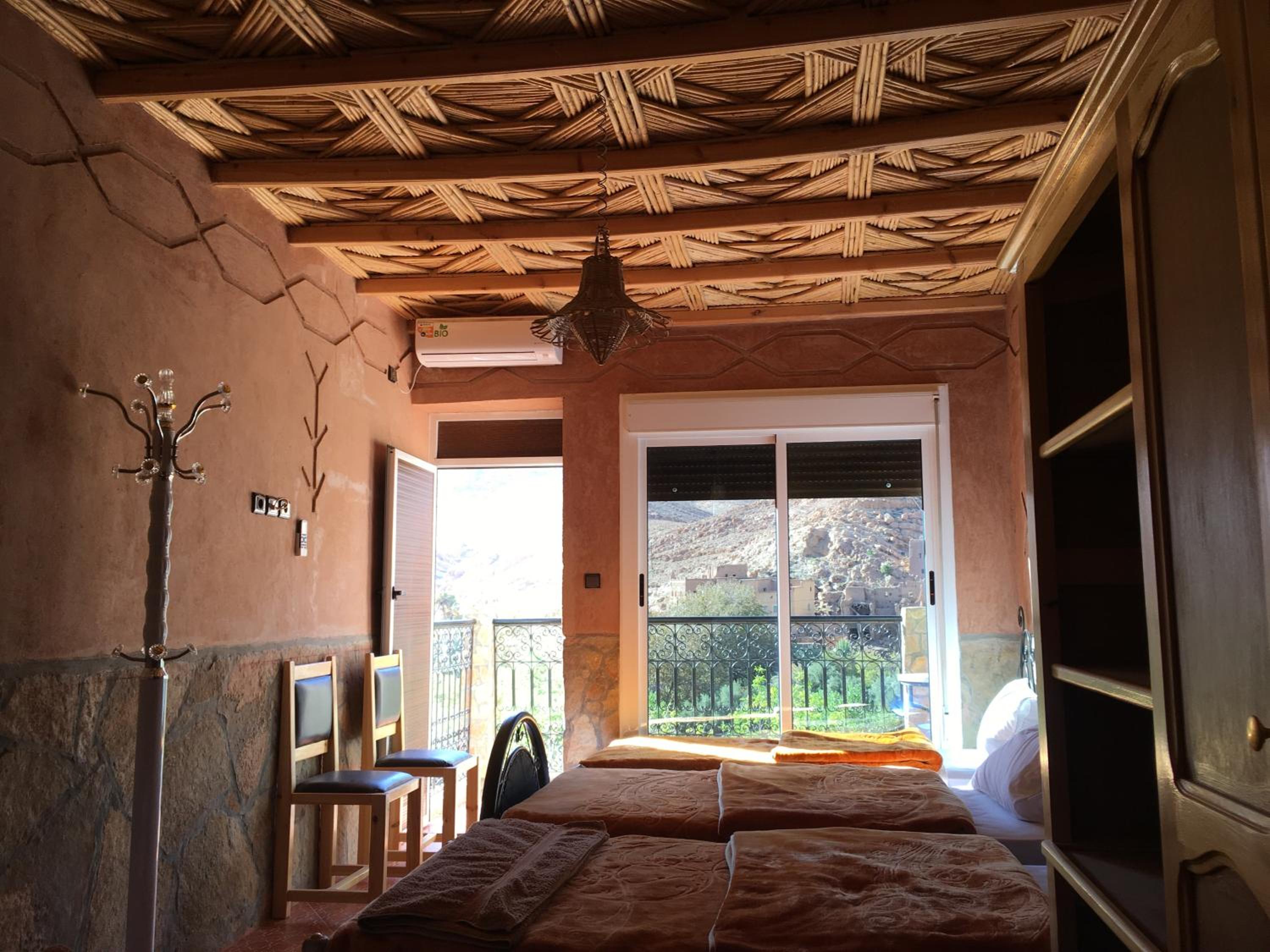 Luxurious Accommodation: Experience comfort and elegance at La Petite Gorge, Hôtel & Restaurant Todra Gorge. Each room features air conditioning, a balcony, and a patio, offering stunning mountain and river views.