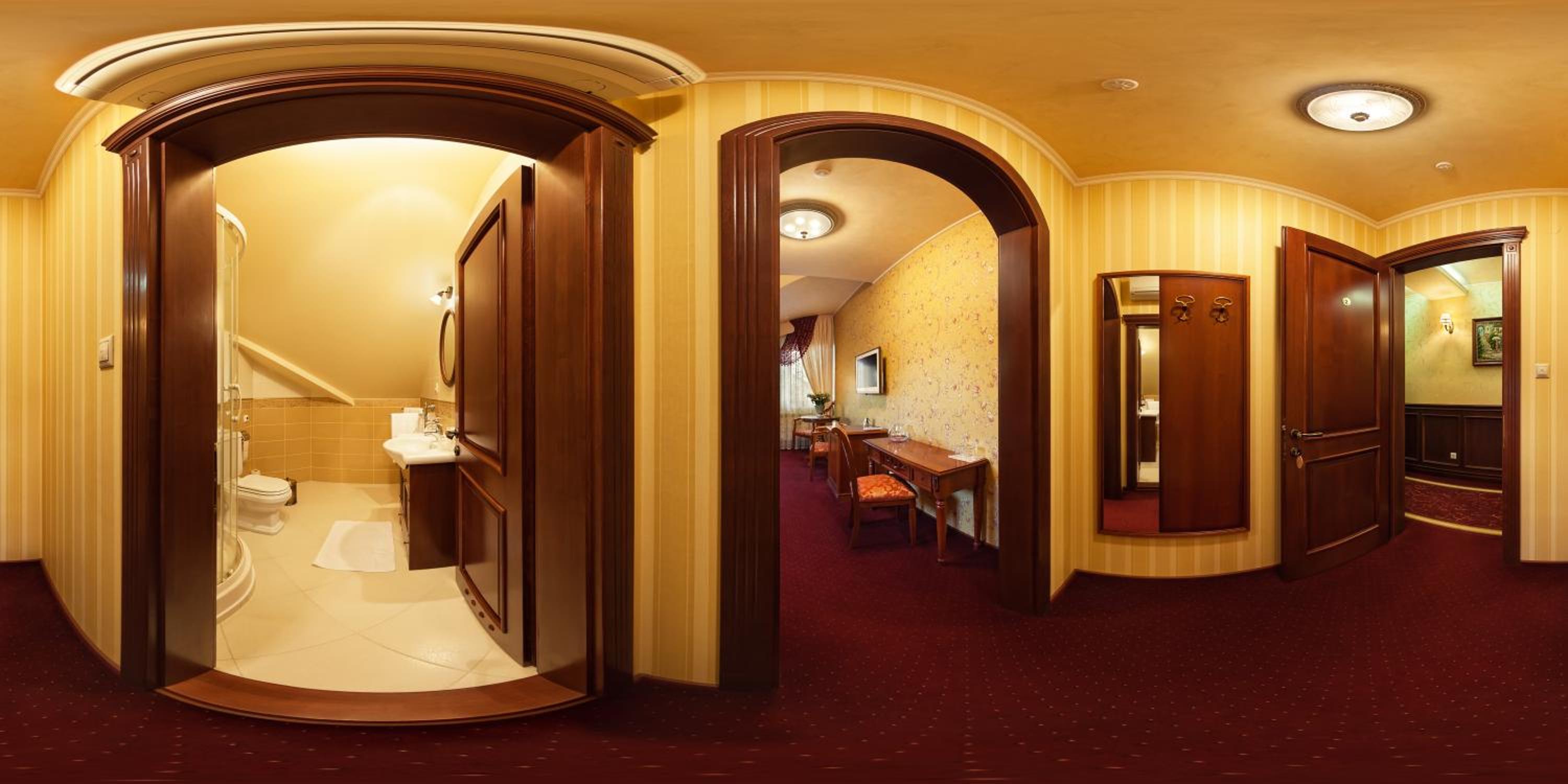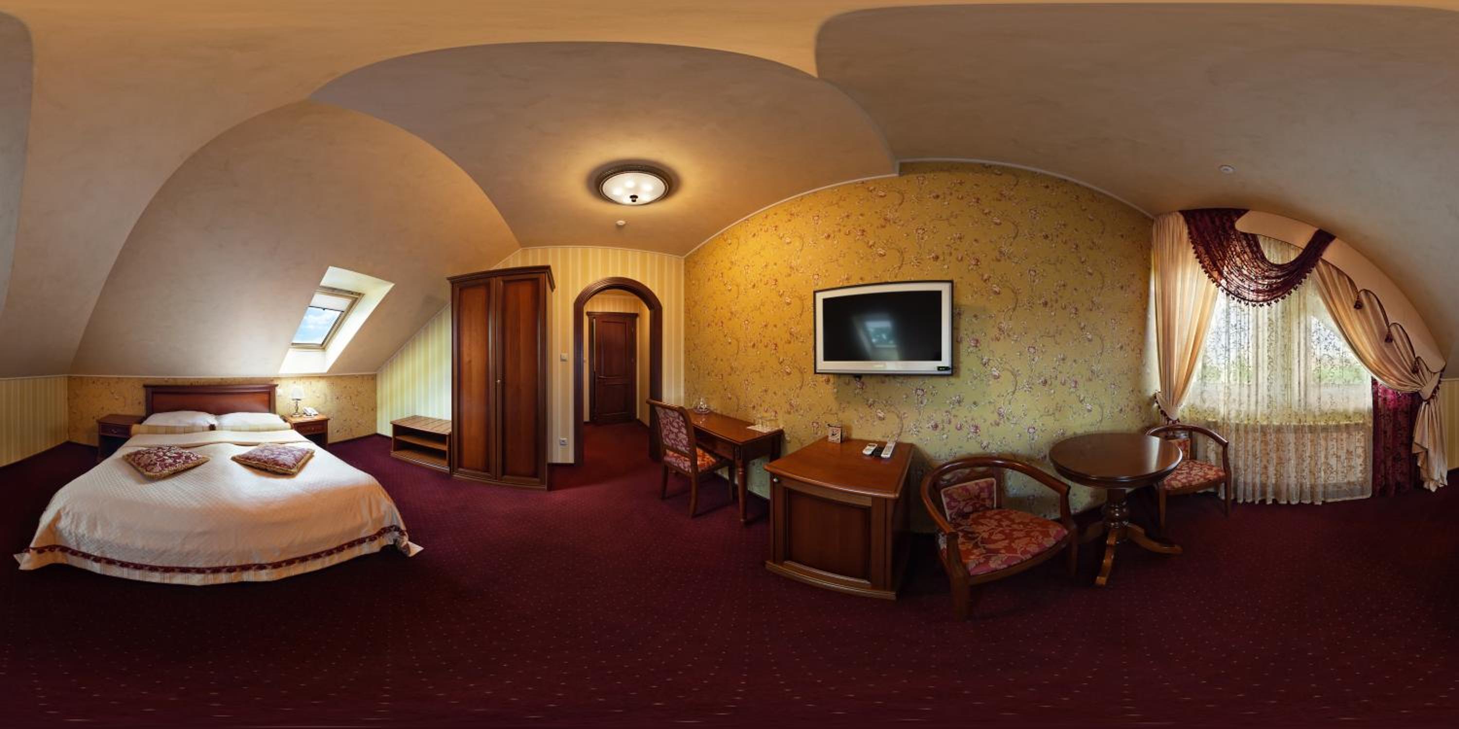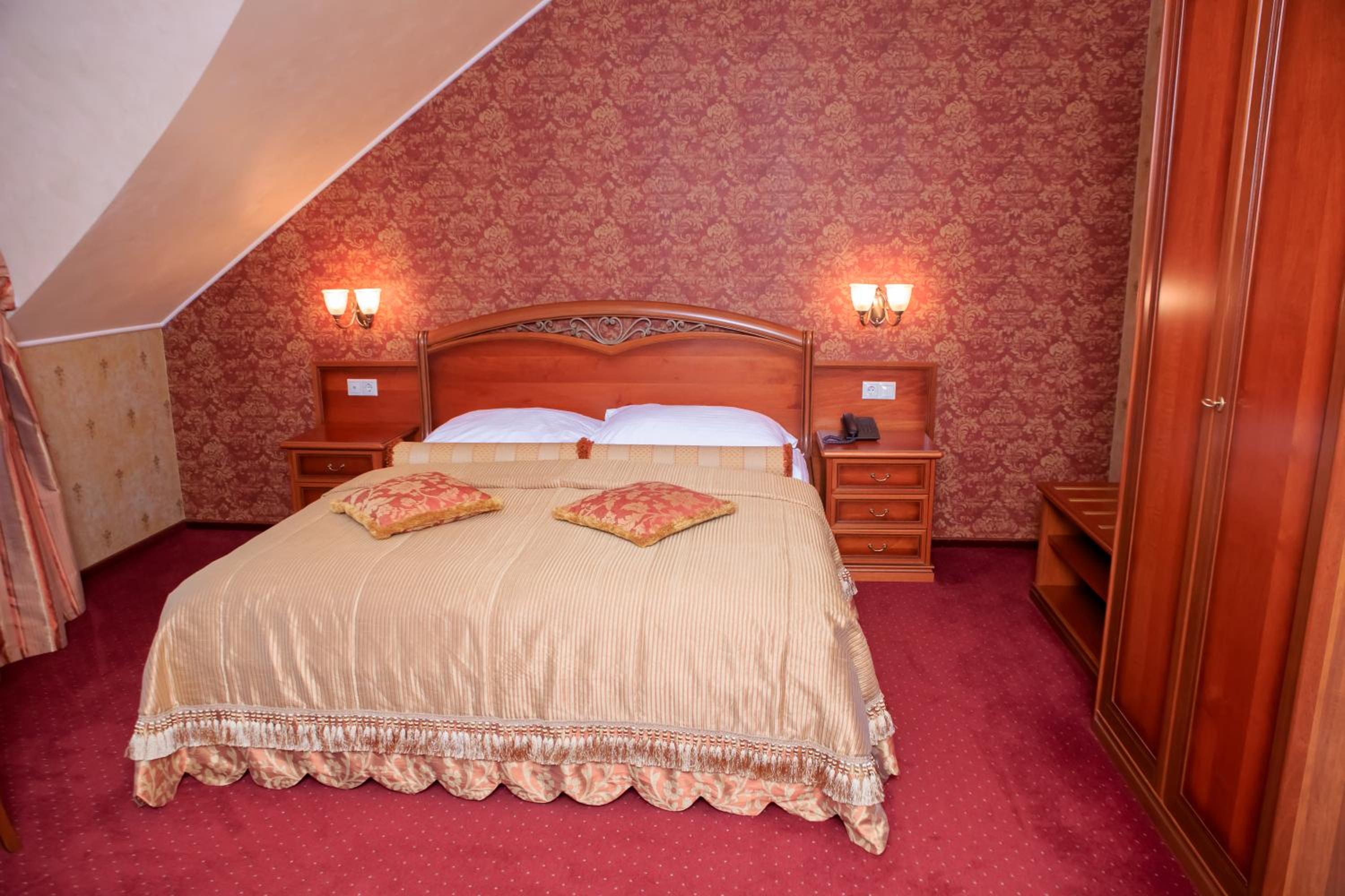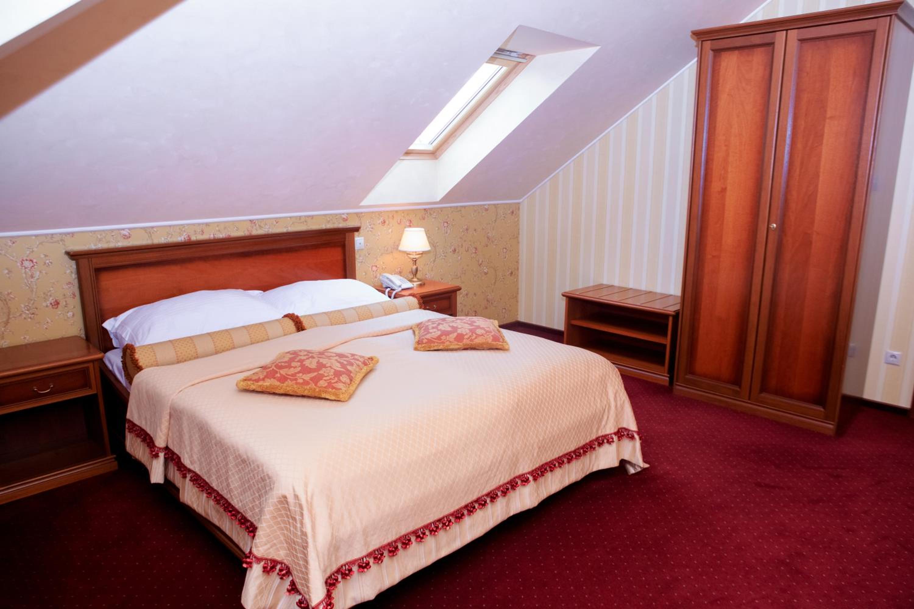 Hotel Elefant in Uzhhorod offers a luxurious stay with modern amenities. Each room is equipped with air conditioning, a flat-screen TV, and a wardrobe. The property is allergy-free, ensuring a comfortable stay for all guests.