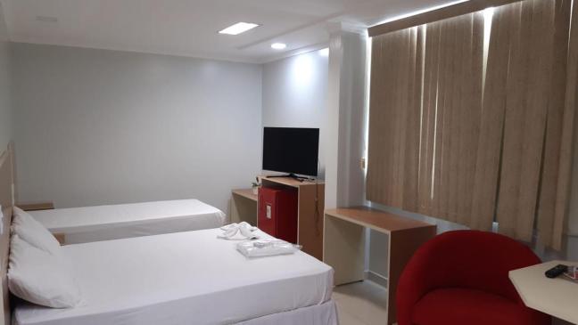 Hotel Coimbra in Tucuruí offers elegantly furnished rooms equipped with modern amenities like a flat-screen TV, air conditioning, and comfortable bedding. The private bathrooms are stocked with fresh towels and complimentary toiletries for a relaxing stay.