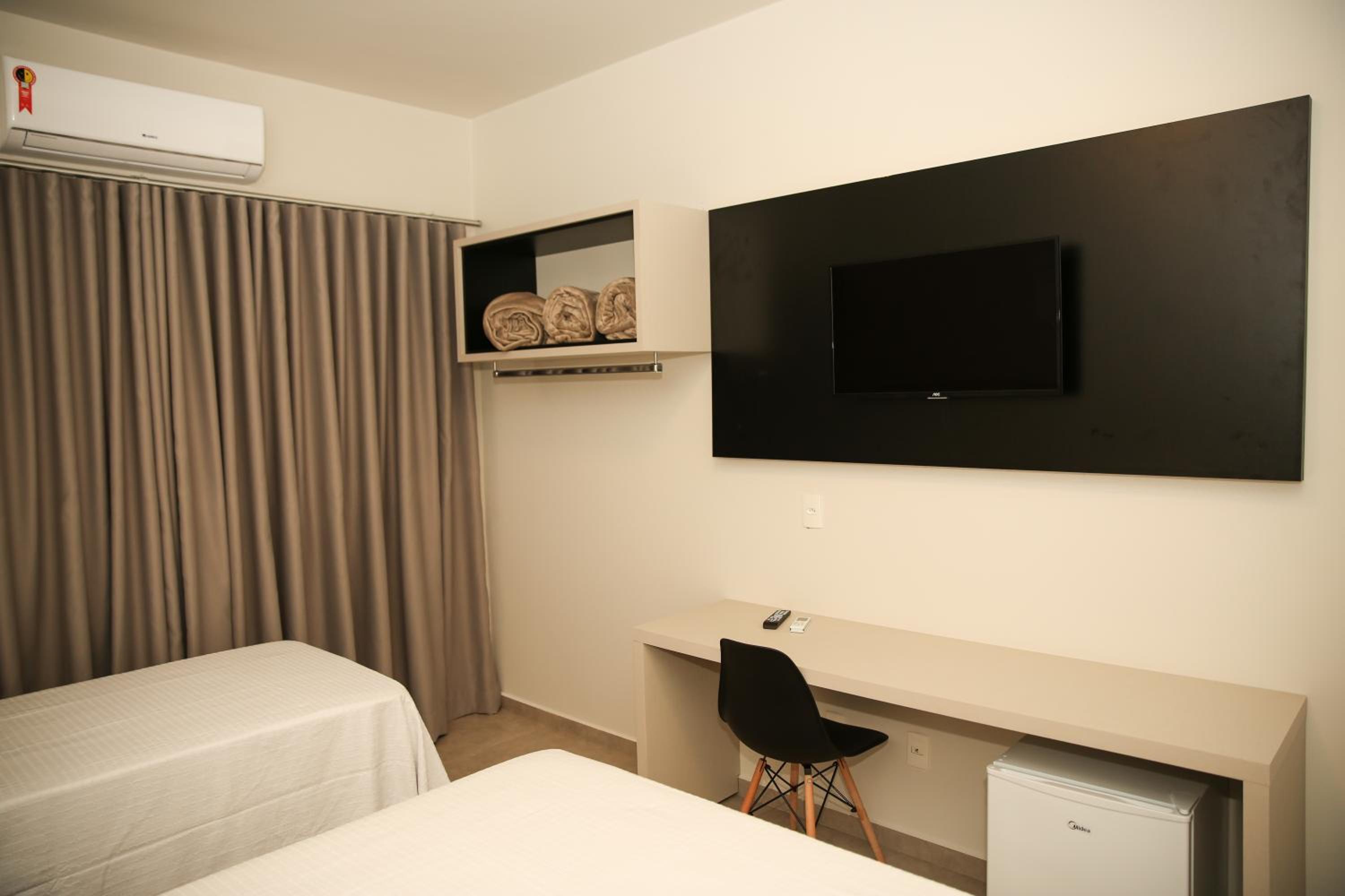 Raf Hotel in Umuarama offers air-conditioned rooms with city views and modern amenities. Each room features a desk, flat-screen TV, and a private bathroom, ensuring a comfortable stay with complimentary WiFi.