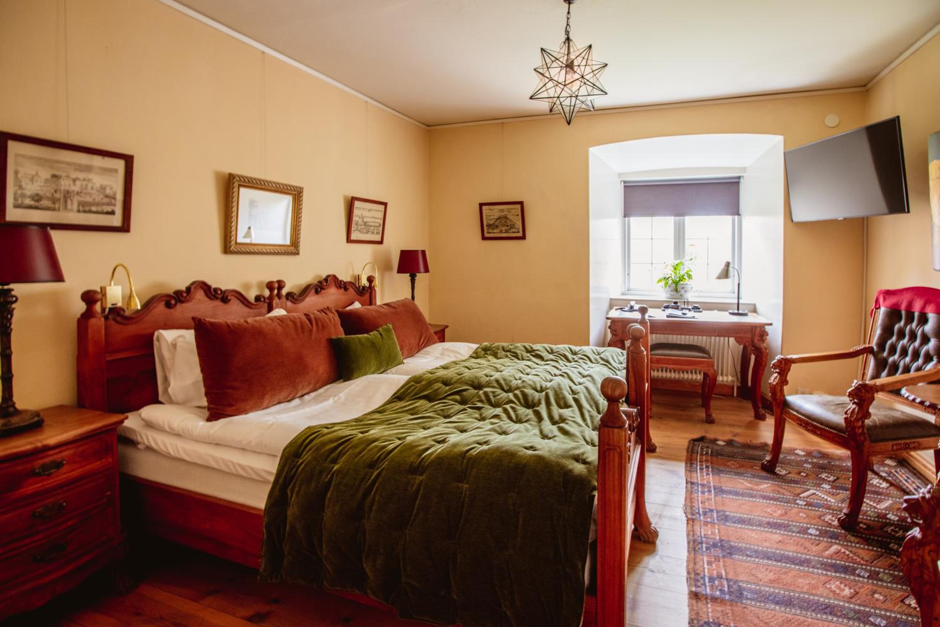 Miljön och personalen. Gillar man historiska miljöer är detta det rätta stället. För den som söker ett riktigt svenskt kulturarv ger hotellet en helhetsupplevelse.