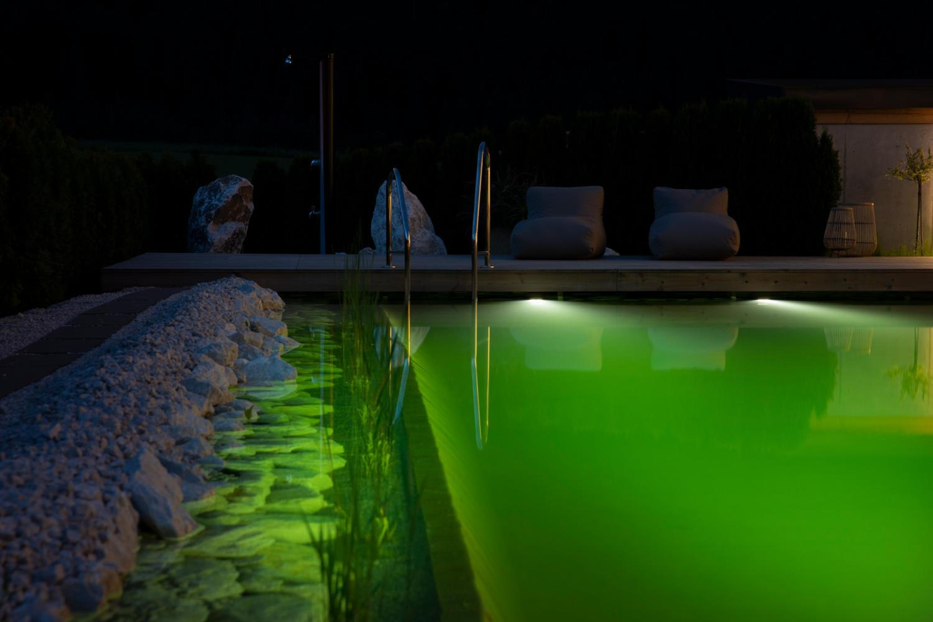 Leckeres Essen, tolle Ausstattung, öffentliche Verkehrsmittel kostenlos, sehr nettes Personal, toller Naturbadeteich.