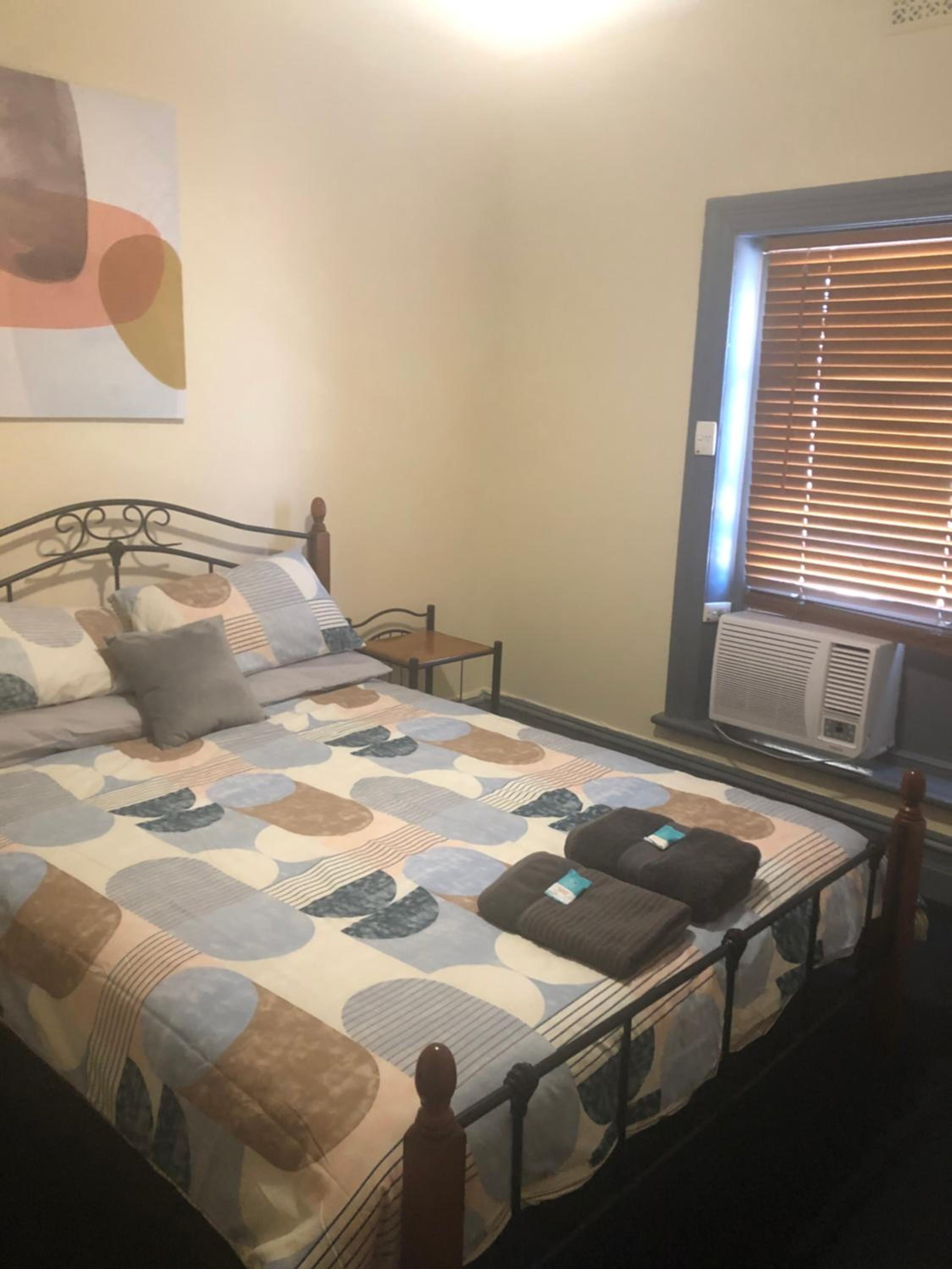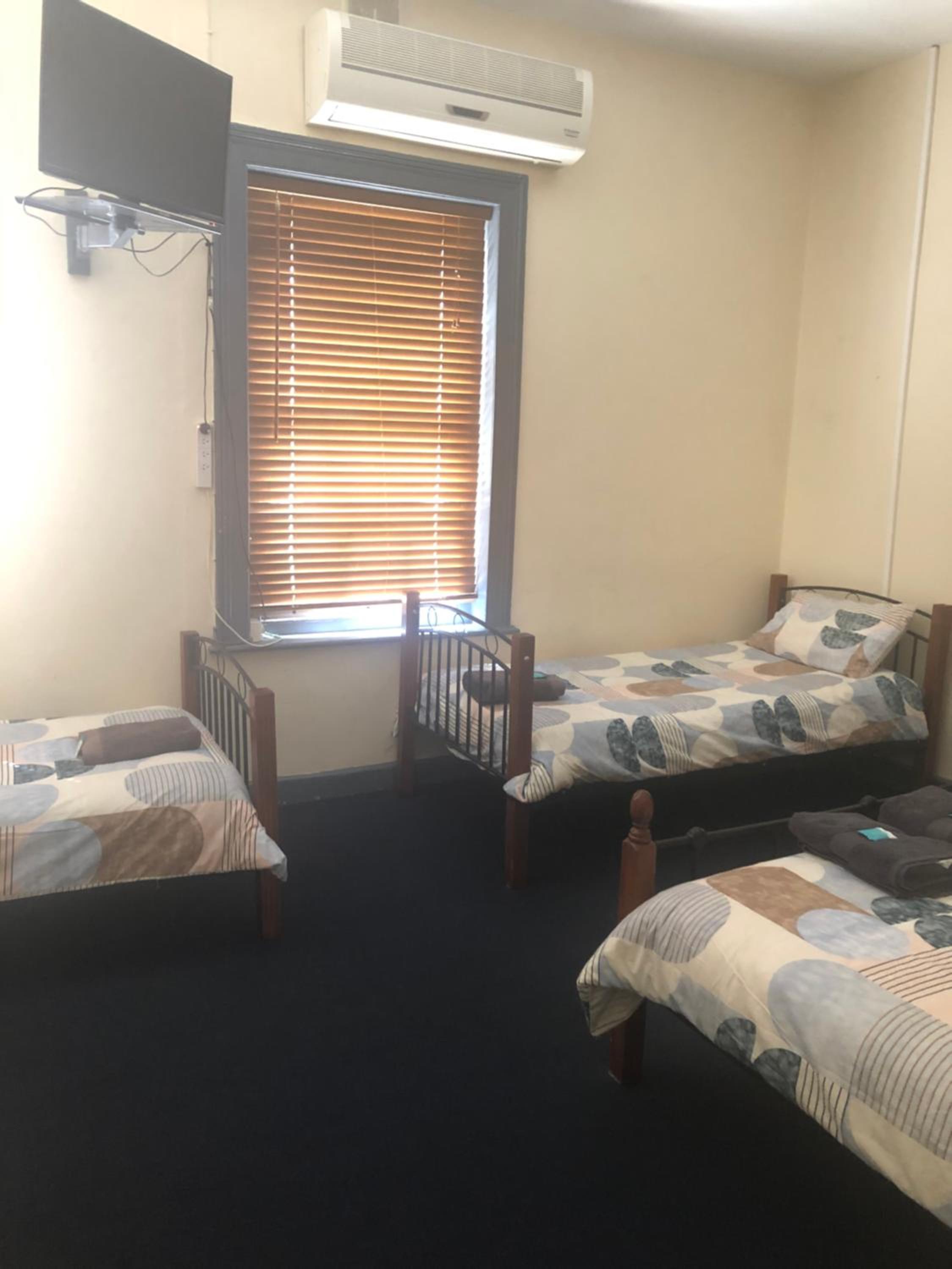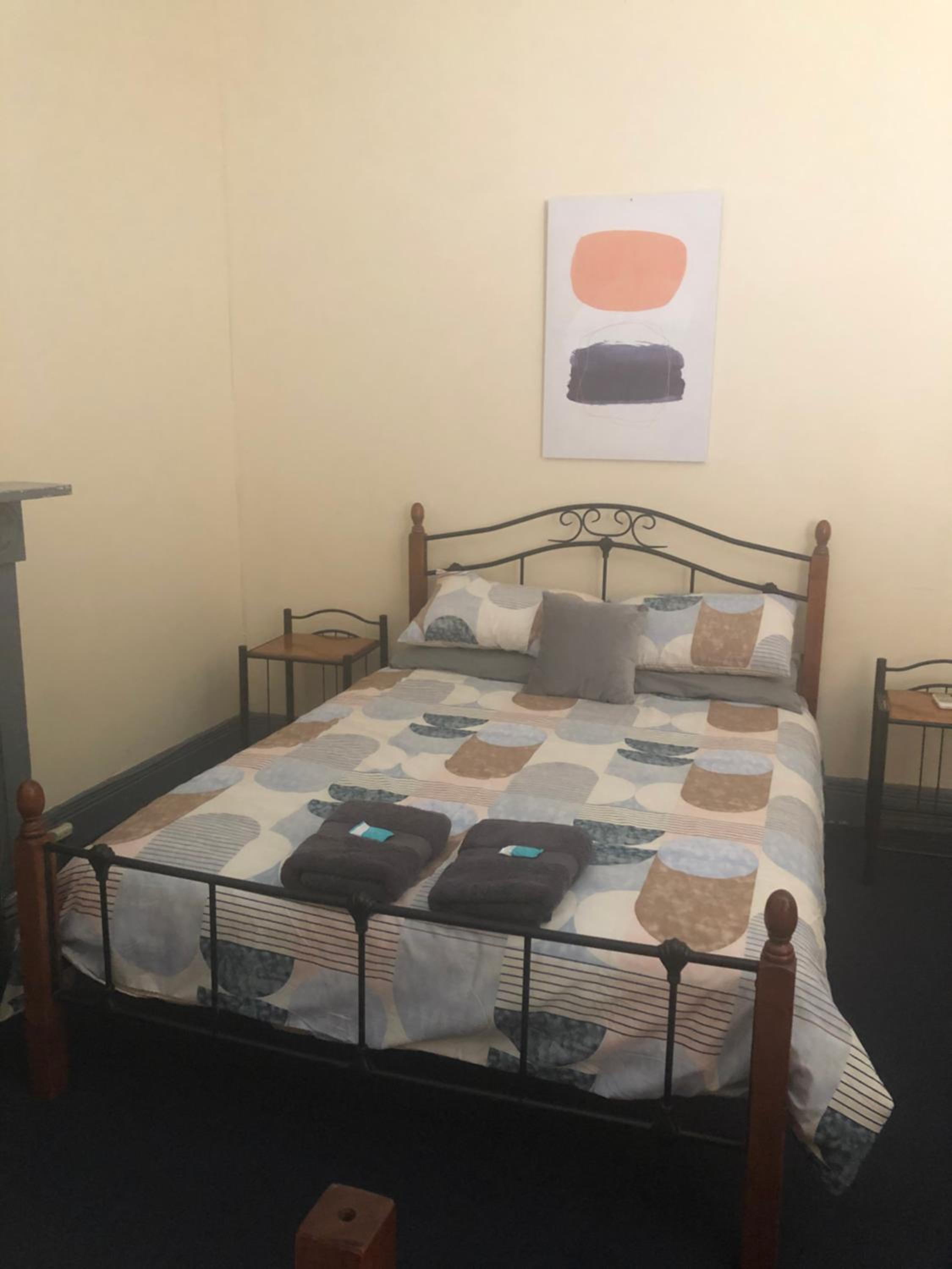 Basic but clean comfortable room, male shared big shower room, shared kitchen with microwave and toaster and kettle tea and coffee, big car park and cheap.