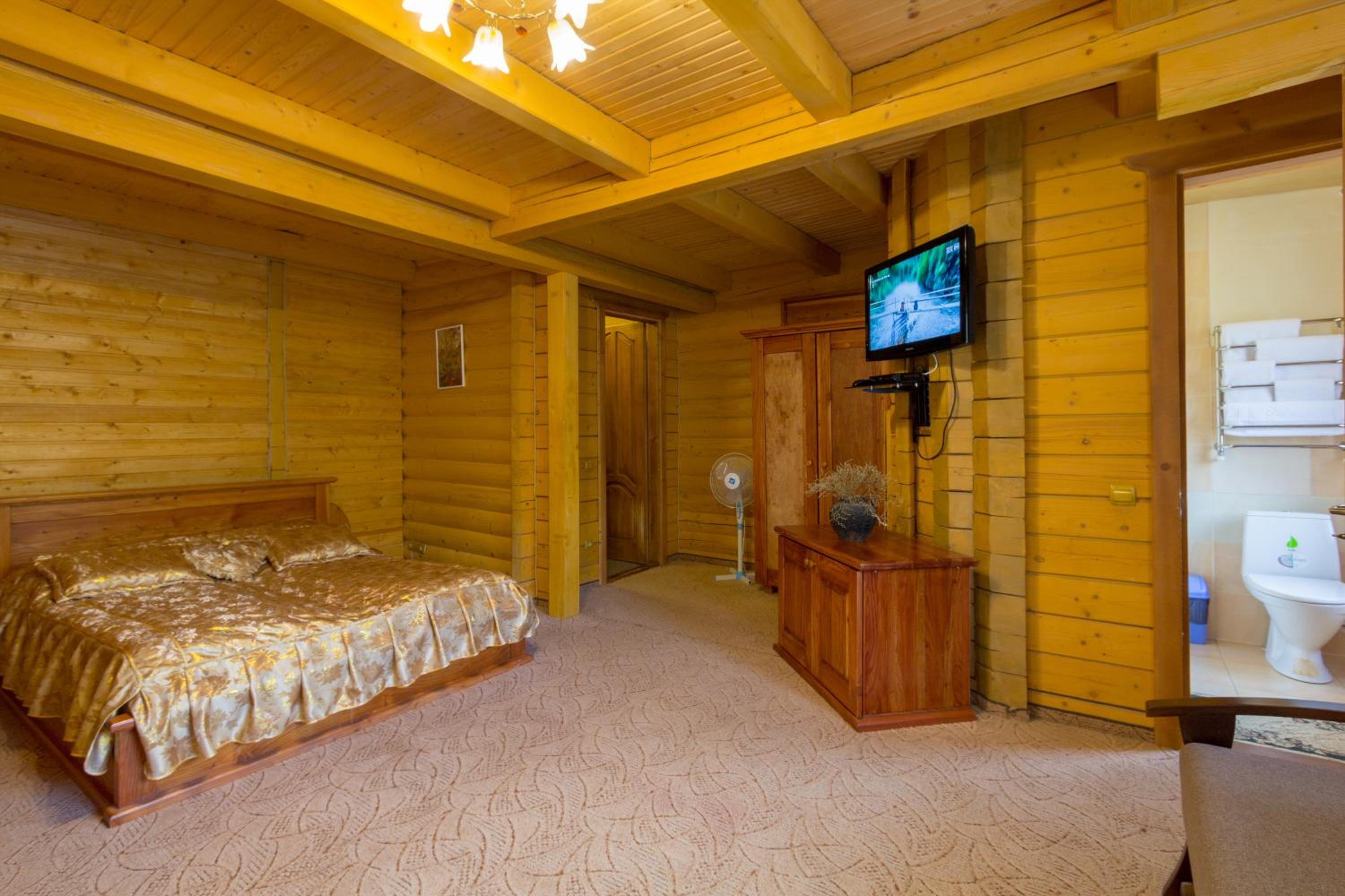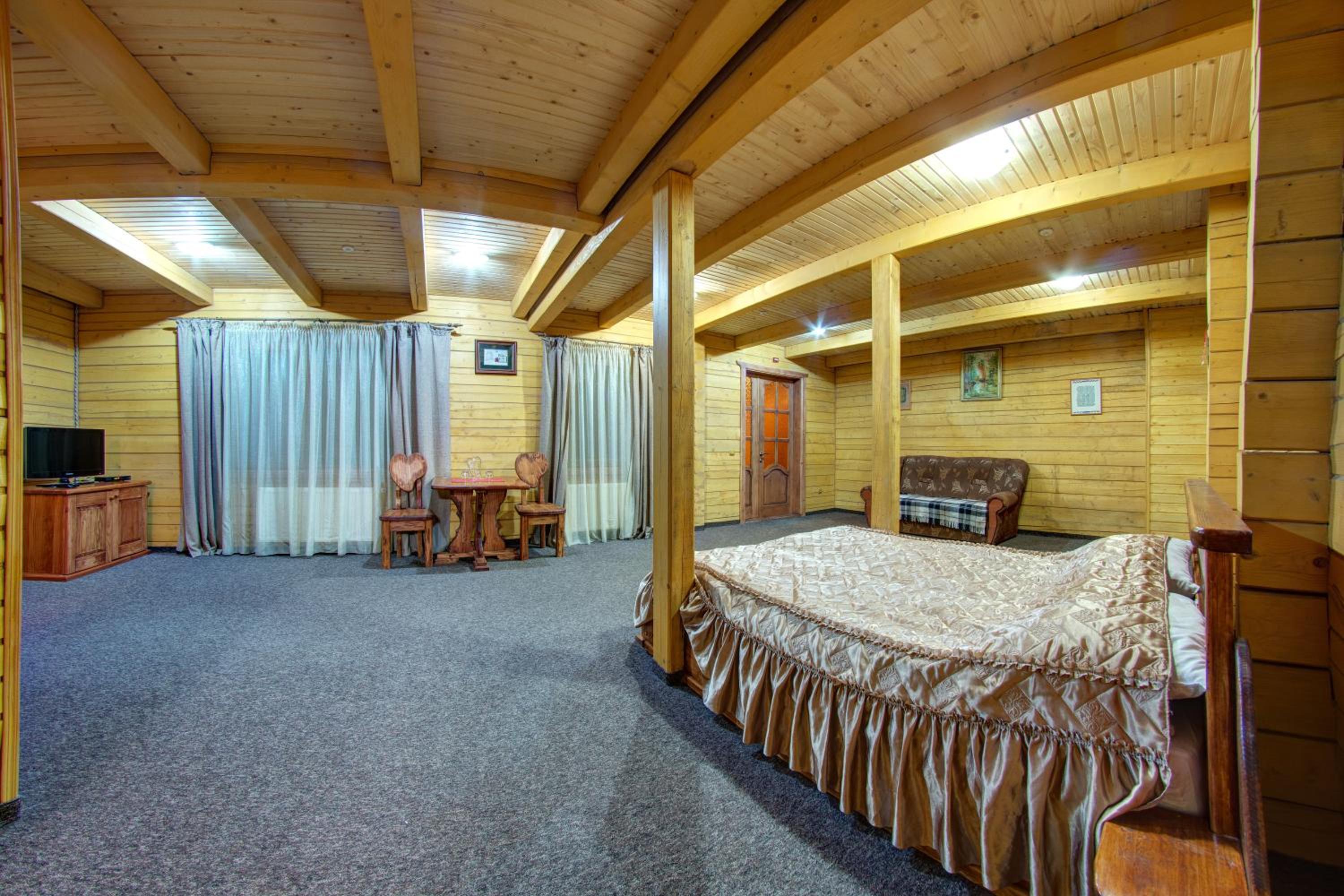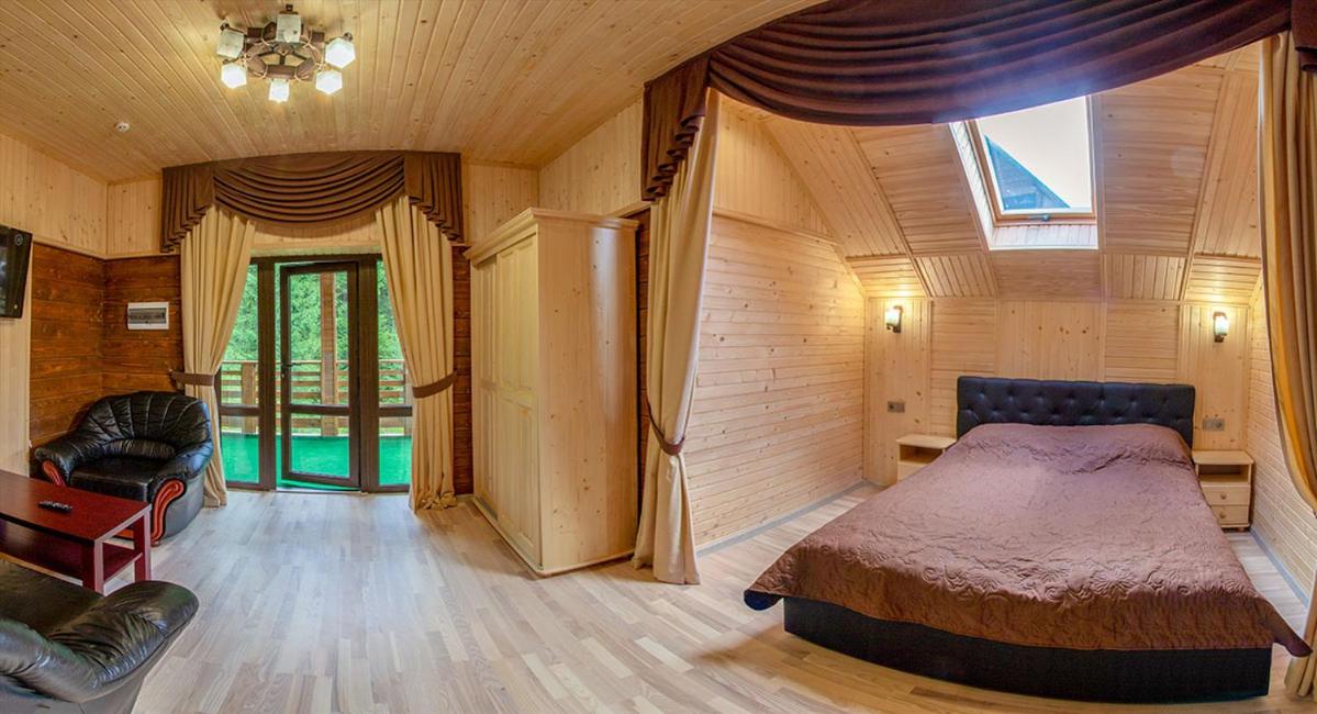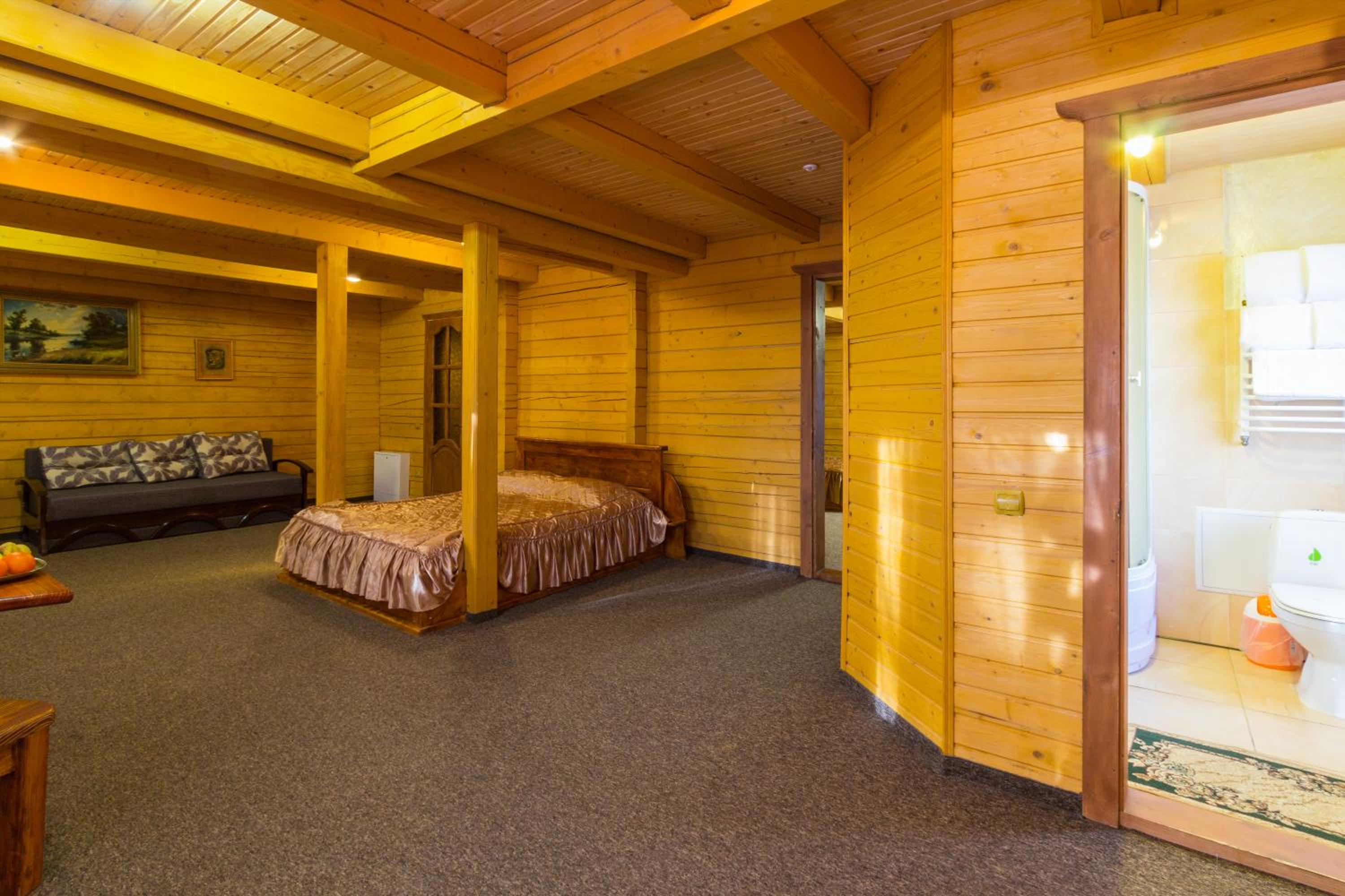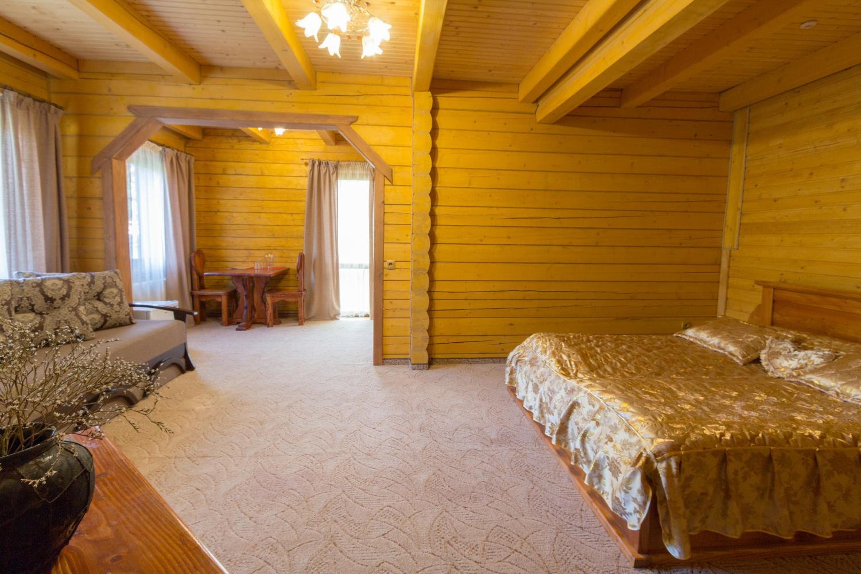 Дуже смачна їжа, великі порції. На території є все необхідне для комфортного відпочинку: басейн, чан, гойдалки, батут, ресторан, альтанки для відпочинку, шикарні краєвиди. Є парковка, котеджі зручні для проживання родиною. Персонал завжди допомагав у вирішенні питань.