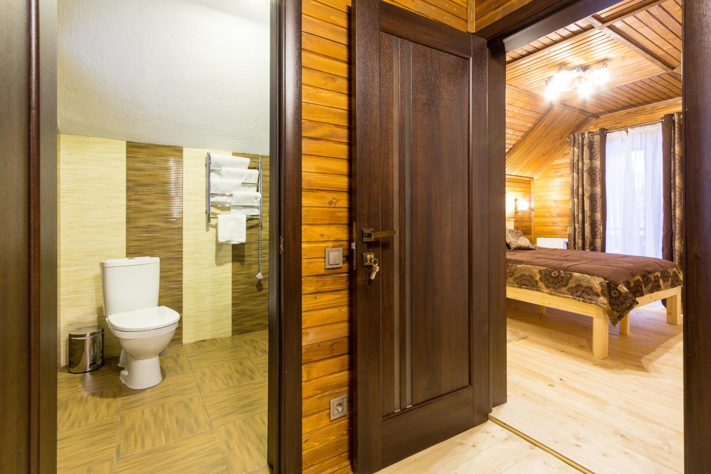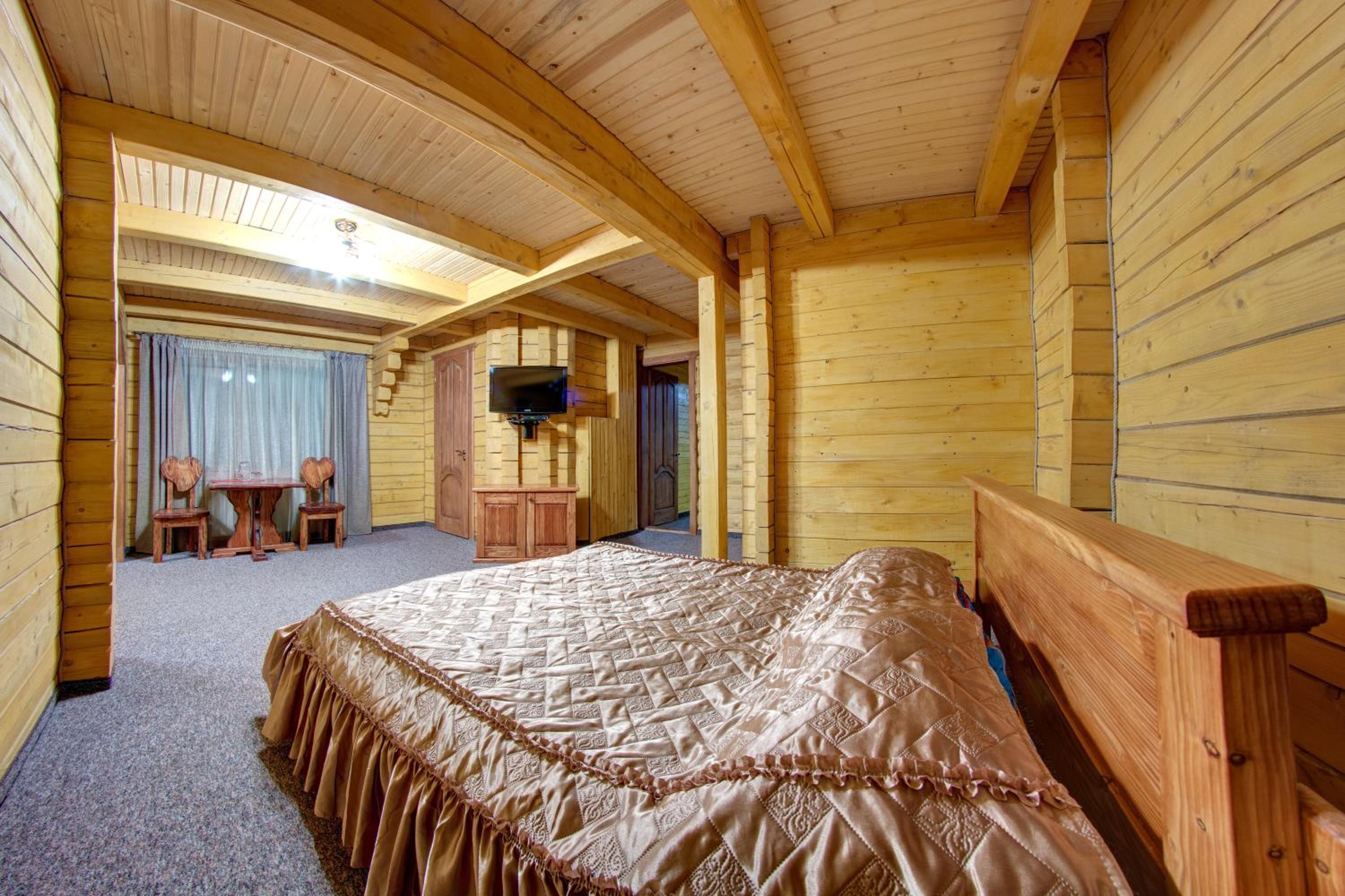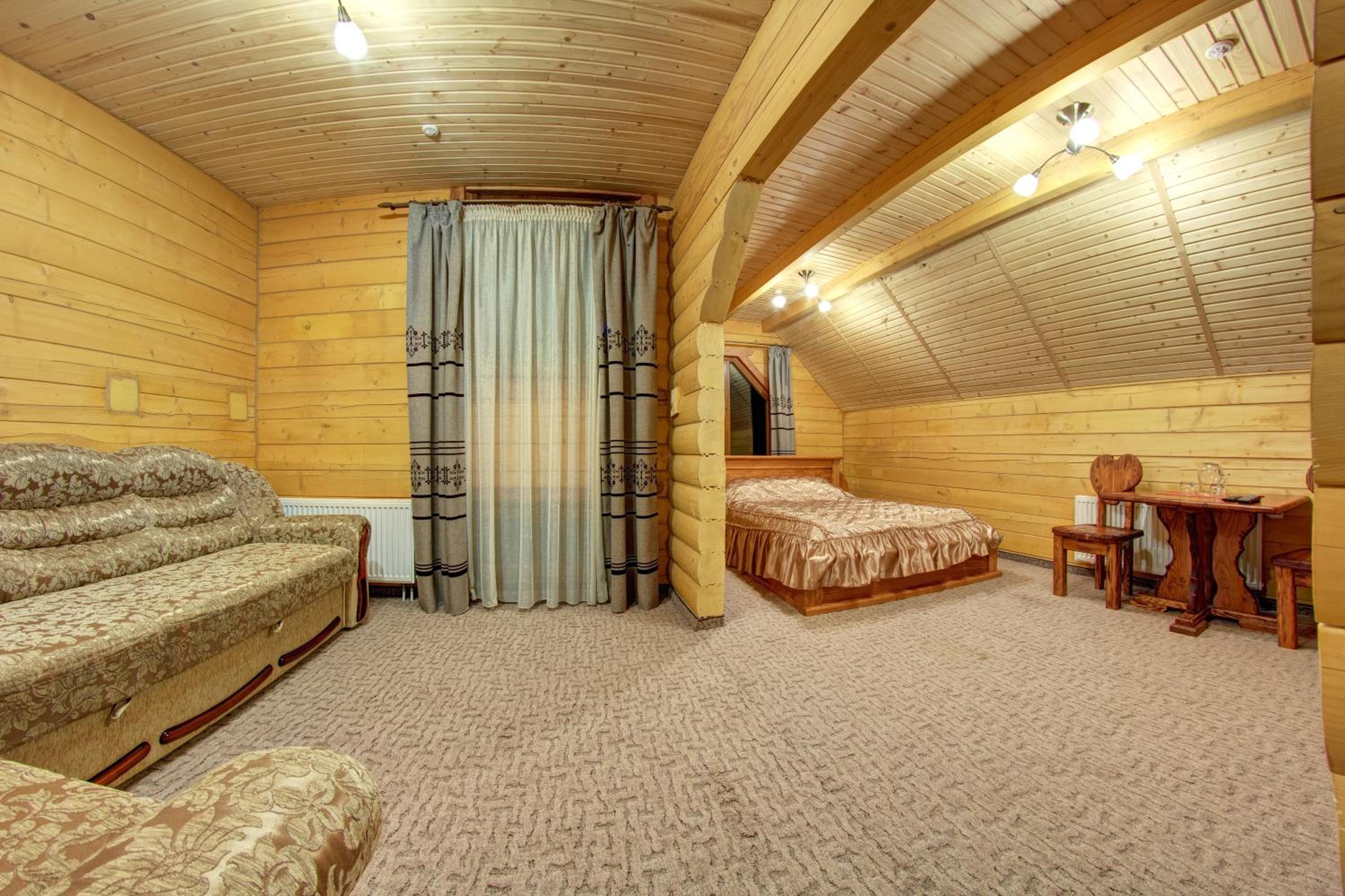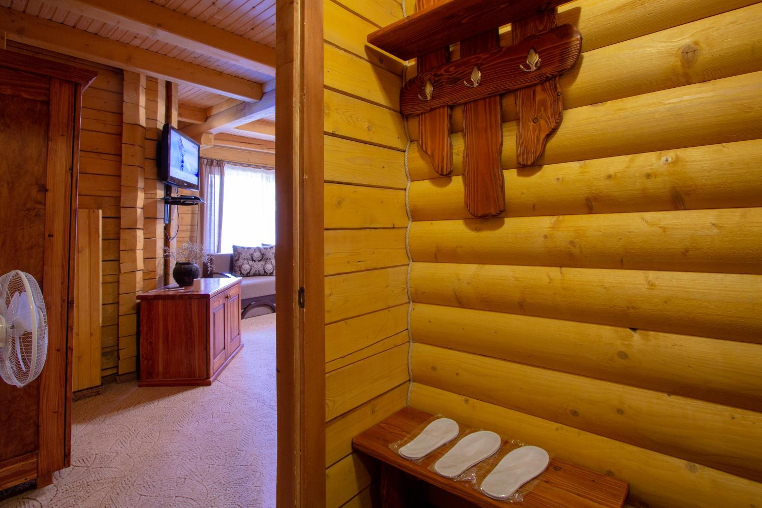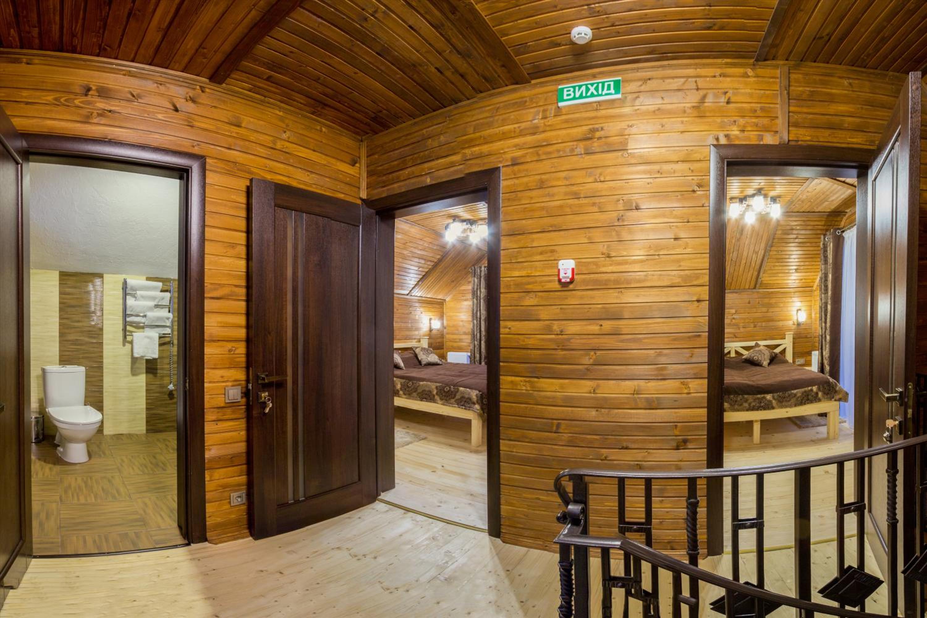 Дуже смачна їжа, великі порції. На території є все необхідне для комфортного відпочинку: басейн, чан, гойдалки, батут, ресторан, альтанки для відпочинку, шикарні краєвиди. Є парковка, котеджі зручні для проживання родиною. Персонал завжди допомагав у вирішенні питань.