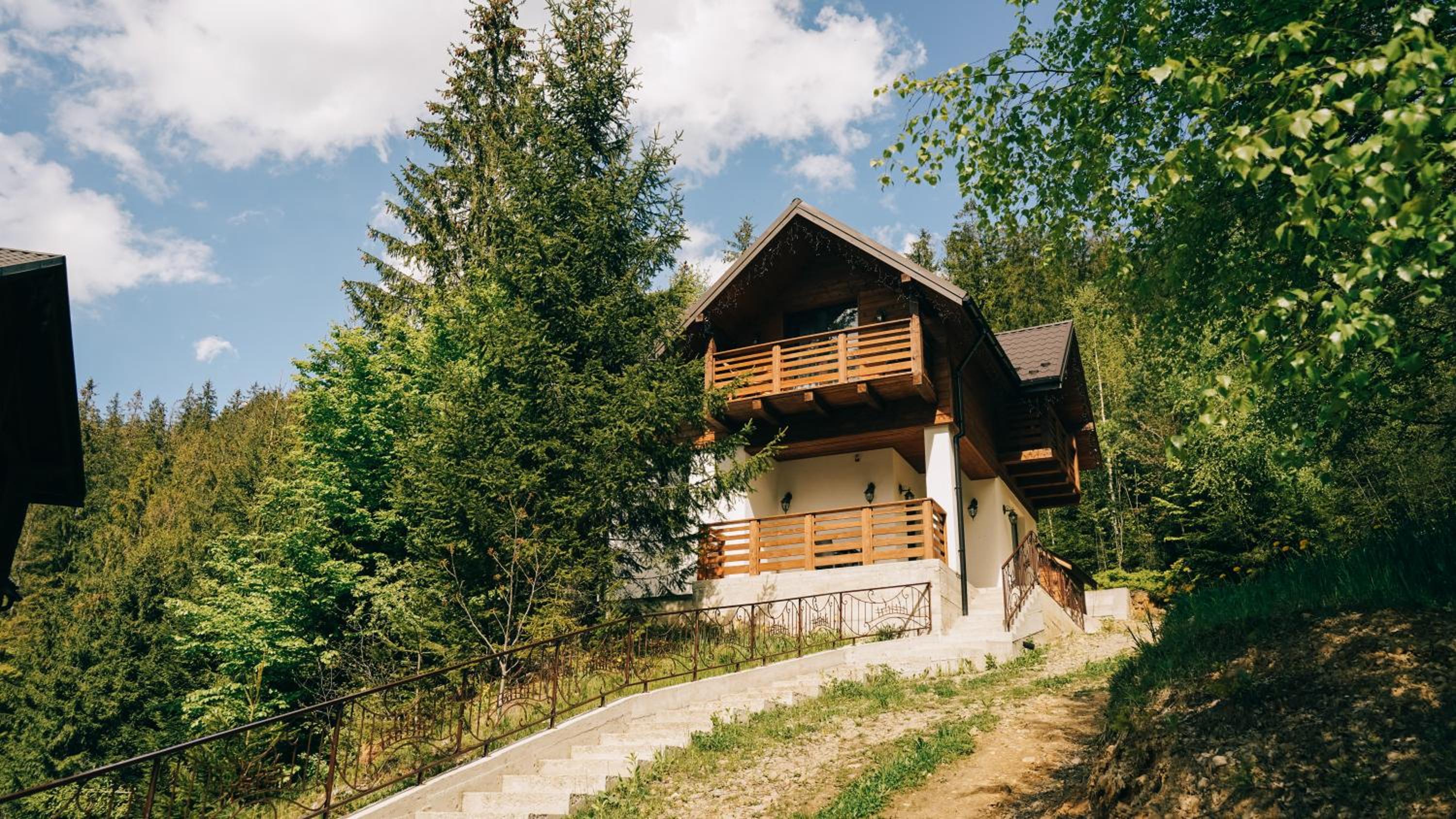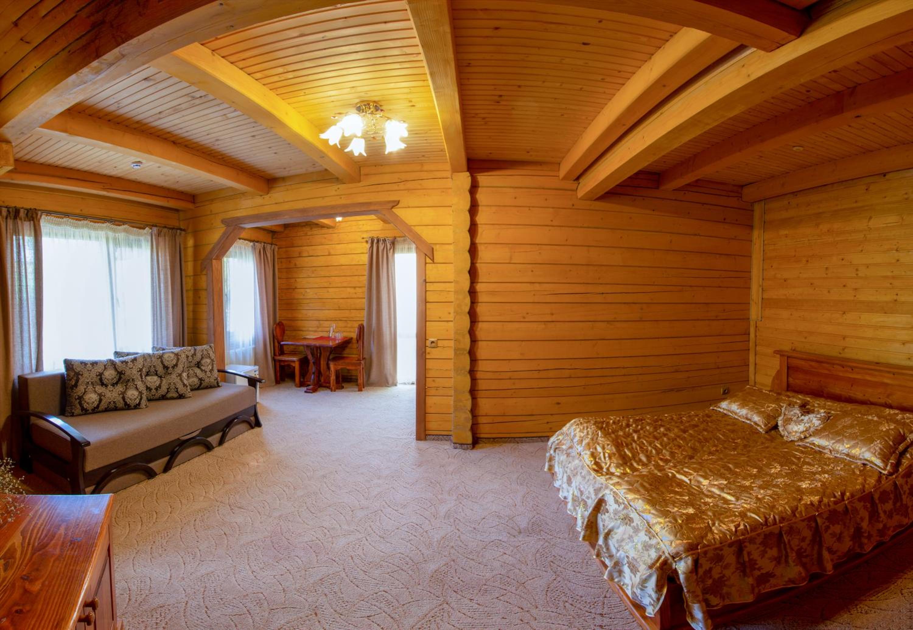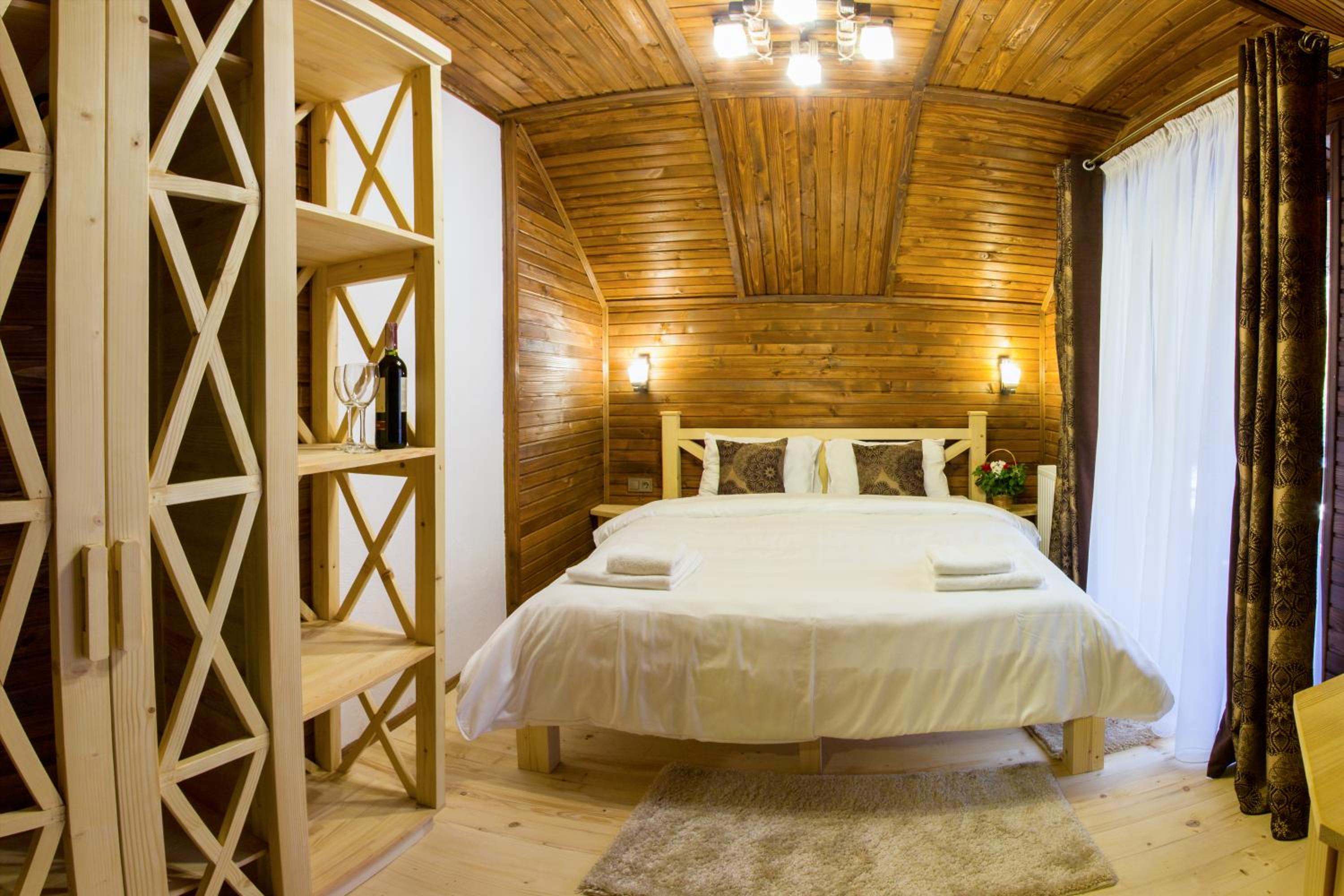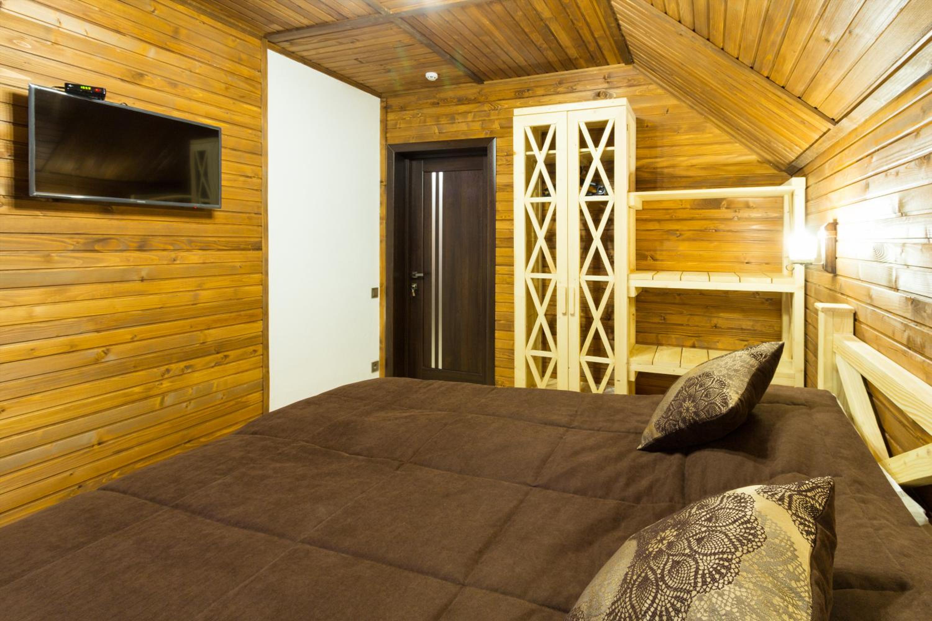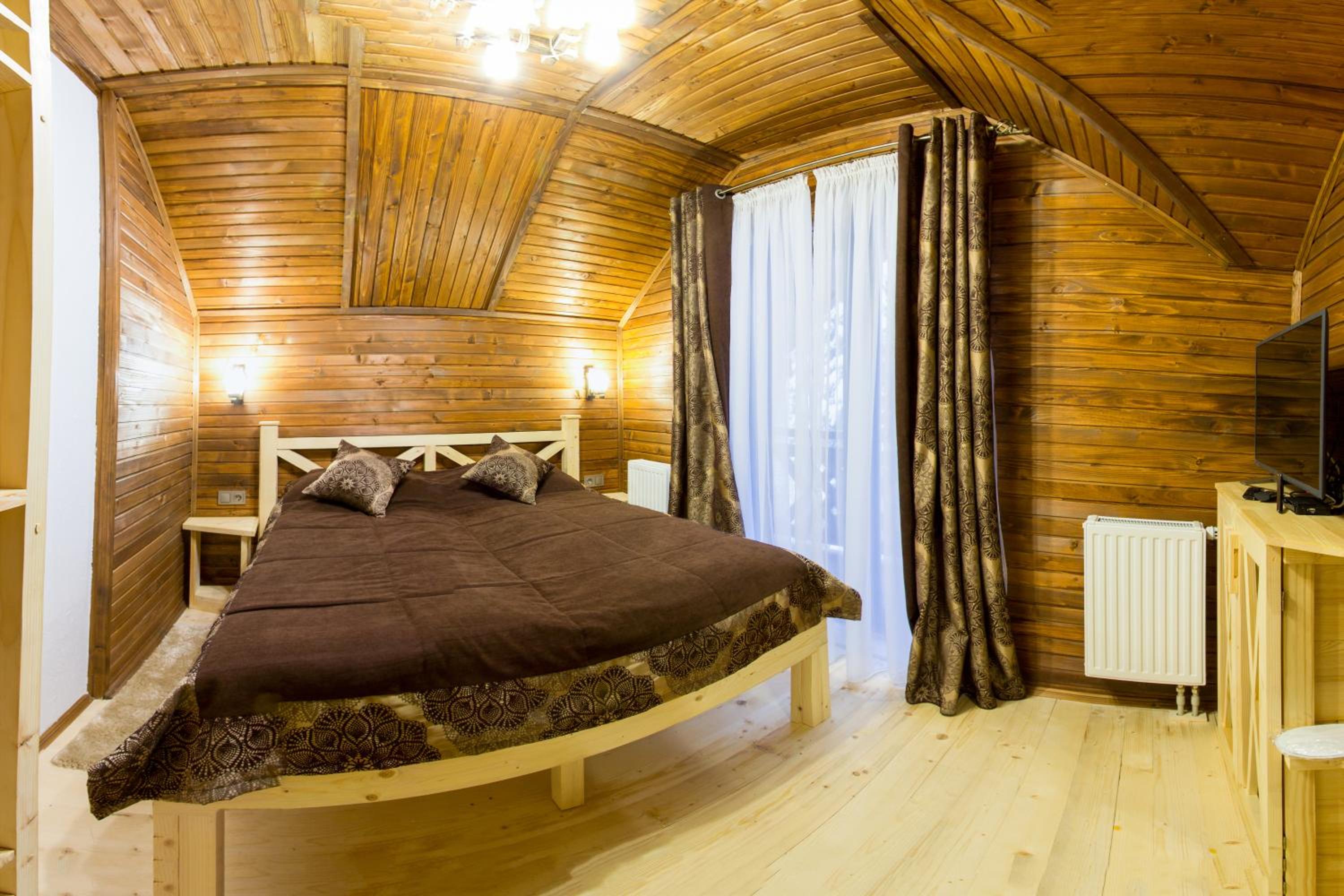 Дуже смачна їжа, великі порції. На території є все необхідне для комфортного відпочинку: басейн, чан, гойдалки, батут, ресторан, альтанки для відпочинку, шикарні краєвиди. Є парковка, котеджі зручні для проживання родиною. Персонал завжди допомагав у вирішенні питань.